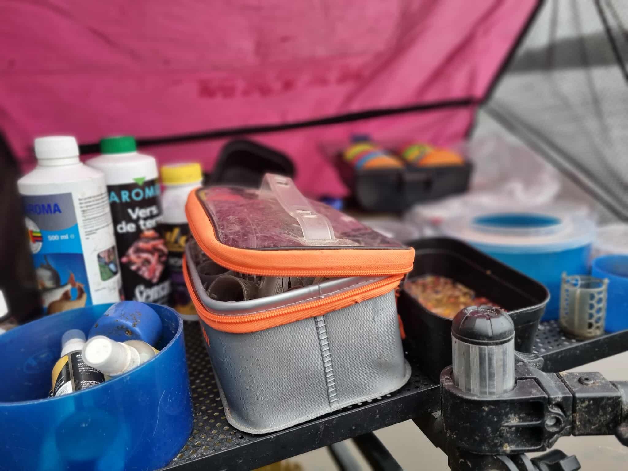 Pusryčius žuviai šįkart ruošiu be kasterio ir kukurūzų. Vieno nebuvo žūklės reikmenų parduotuvėj, o kitus tiesiog pamiršau. O visa kita kaip įprasta – musės lervos, pinkutės, trūkliai ir sliekai. Startui šiek tiek karpytų musės lervų ir trūklių. Visgi nevalia pasiduoti Birštono inercijai ir be saiko krauti gyvuosius masalus į šėryklą. Toks neapdairumas gali kainuoti mariose labai brangiai – tiesiog sėdėsi ir krapštysi nosį valandą ar dvi. Pirmasis metimas su kabliuku kiek po septintos, o tada geros dvidešimt minučių tylos. Tiesa, dienos darbus pradedu nuo tolimosios distancijos. Gal didieji dėdulės būtent ten?