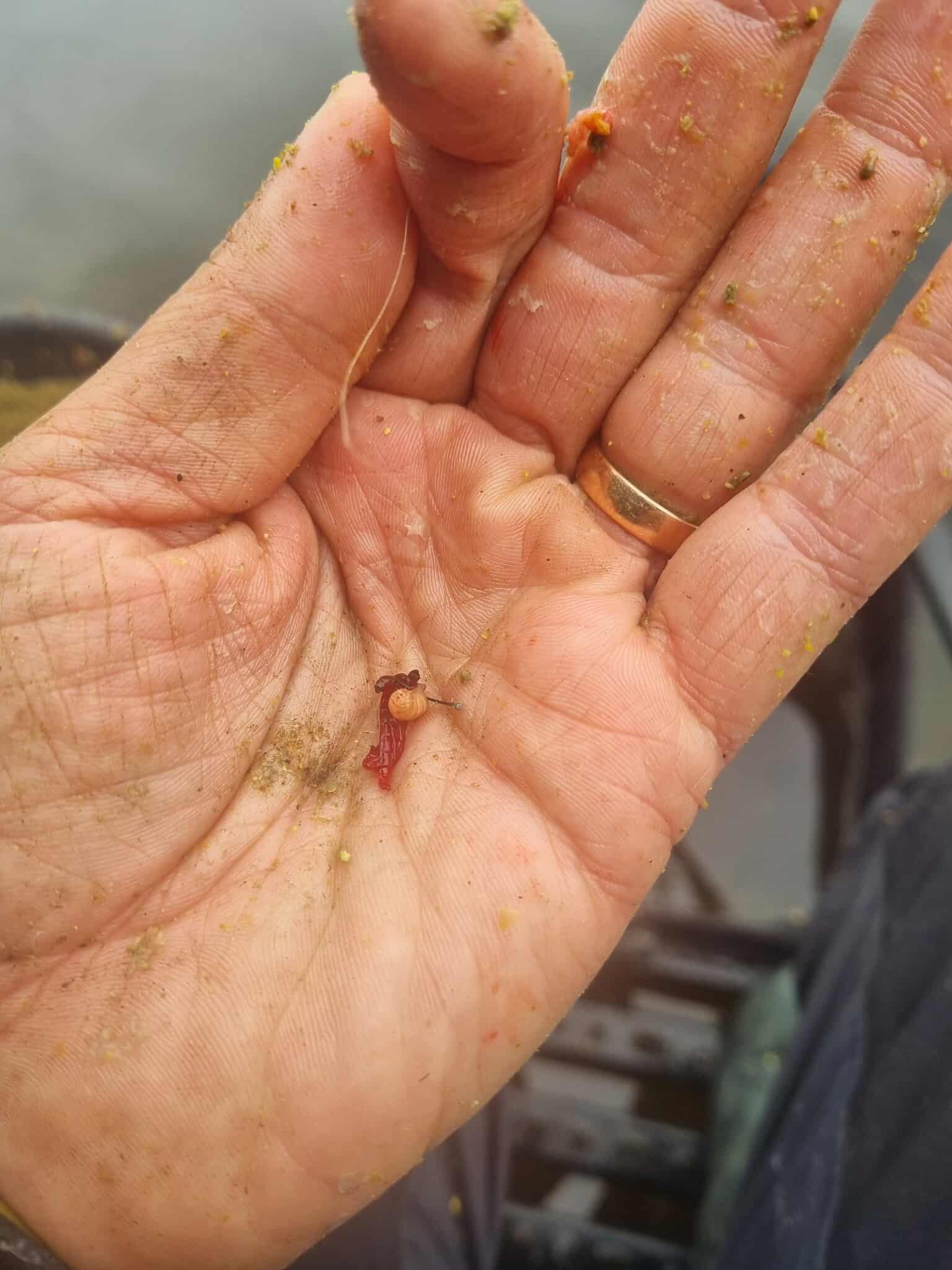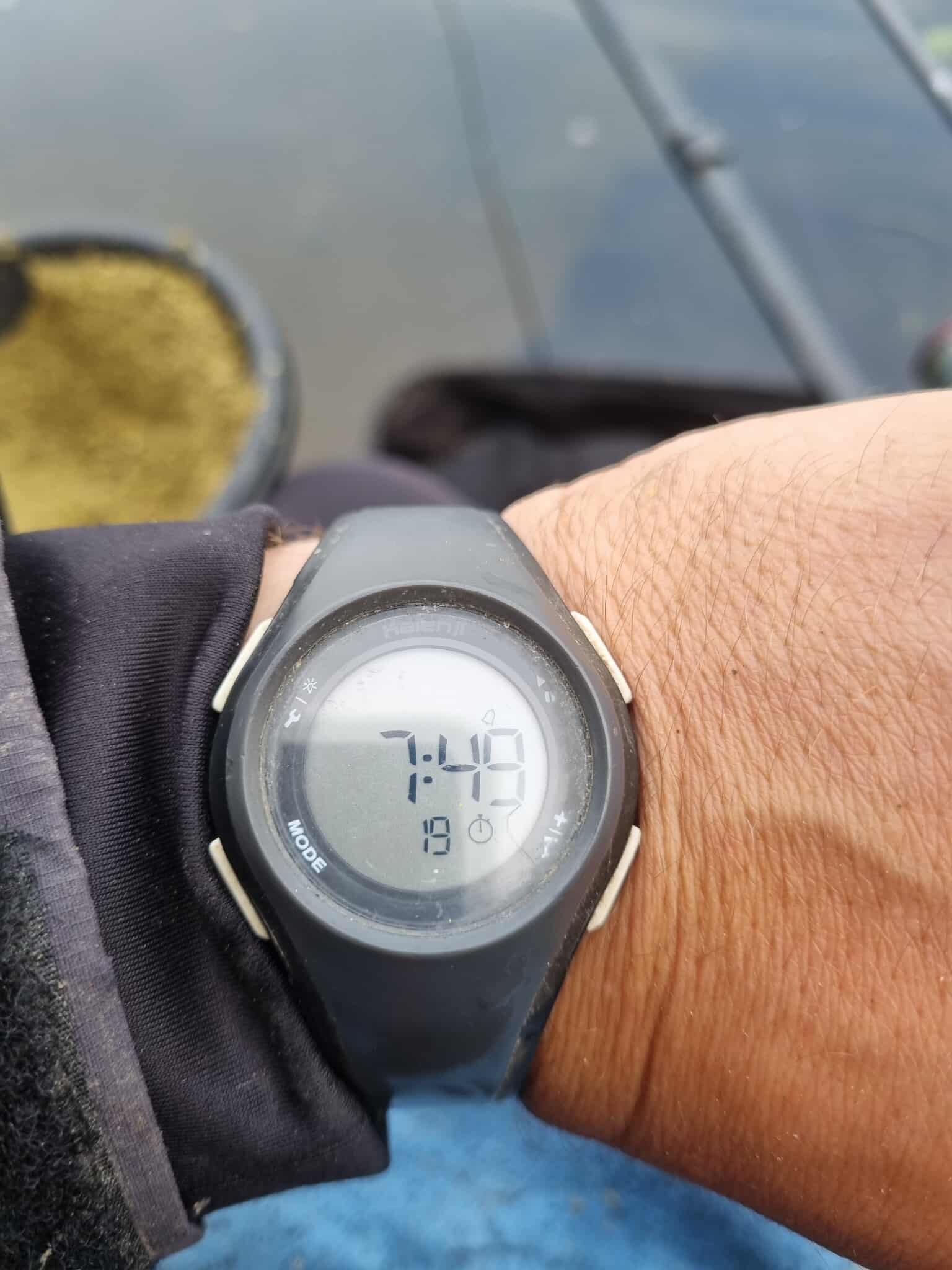 Švysteliu skanavimo šviną į tolį ir pradedu ieškoti kokių nors įdomesnių dugno anomalijų. Gylis solidus – 8-9 metrai. Apčiuopiamesniu atstumu (~40m +) dugnas kiek minkštesnis ir švelnesnis, o arčiau – itin aštri „tarka“. Galiausiai pasirenku du taškus – 40 ir 25 metrų atstumu. Artimasis kiek dešiniau. Pasak britų žvejų, nėra gerai, jei iš tolimosios distancijos traukiama šėrykla kerta artimojo taško zoną, mat taip nereikalingai trikdoma pastarojo ramybė (papildomai baidoma žuvis). Žinoma, svarbiausia, kad tik būtų apskritai ką baidyti, bet papildomos atsargumo priemonės tikrai nepakenks.
