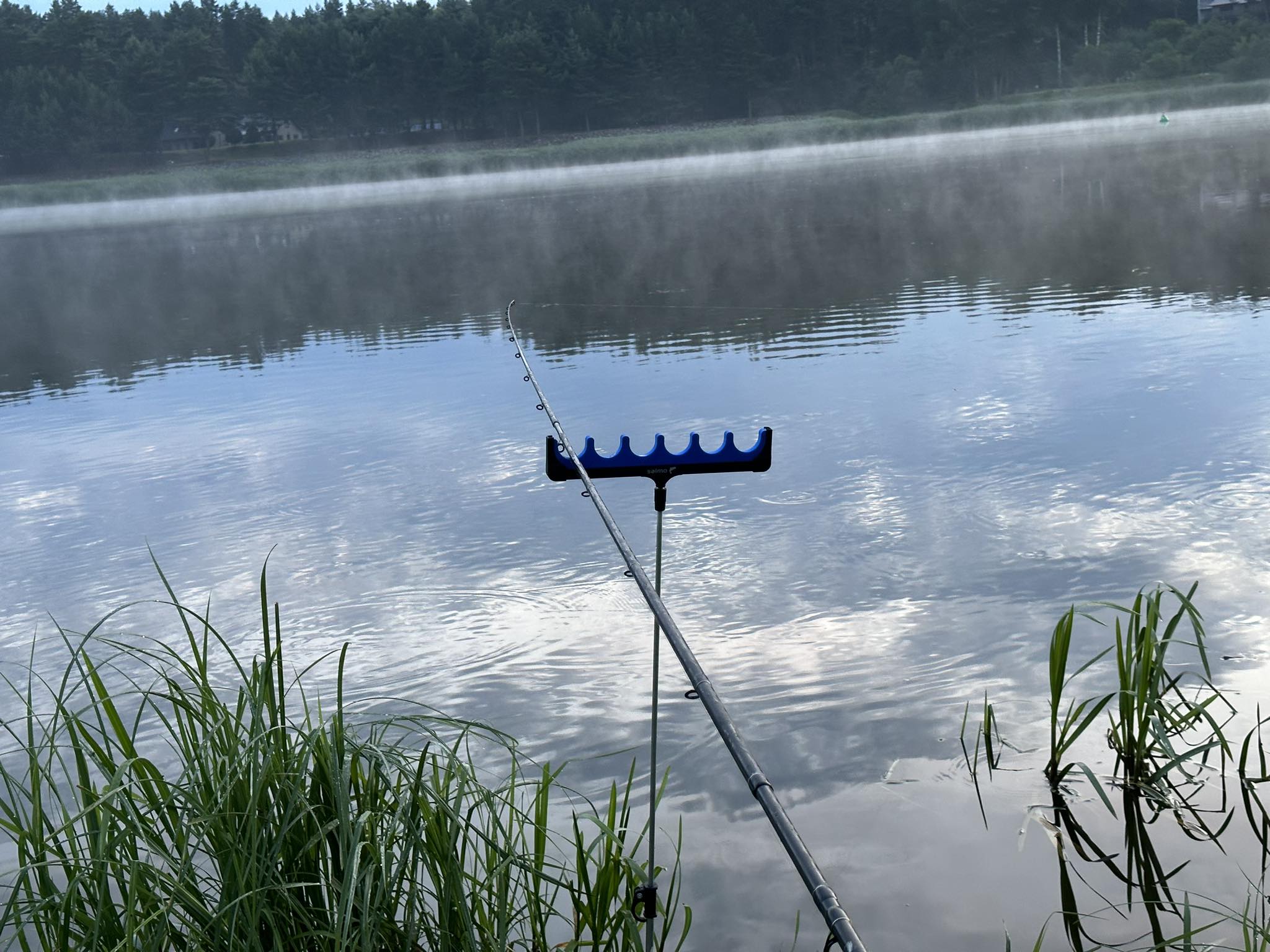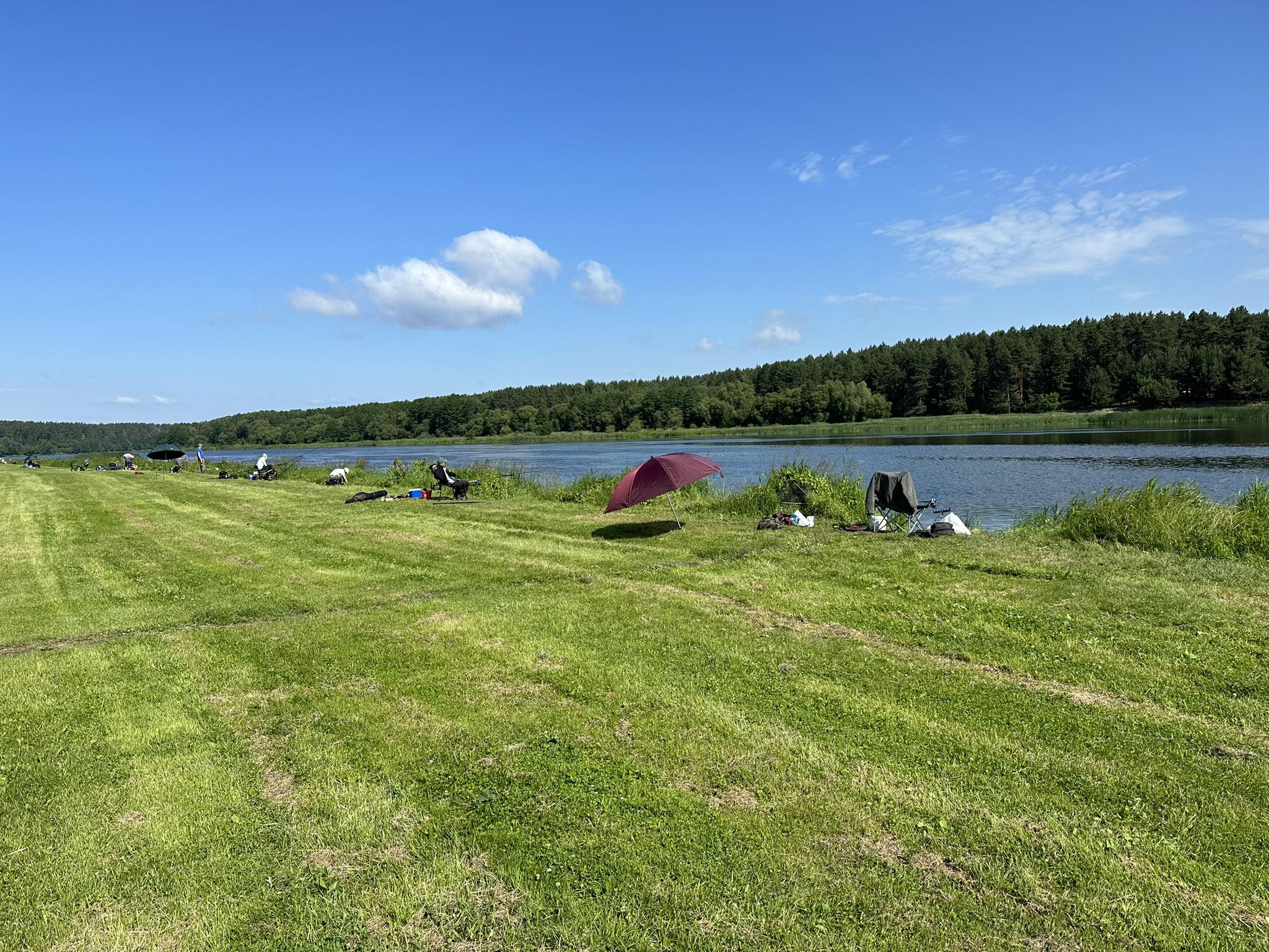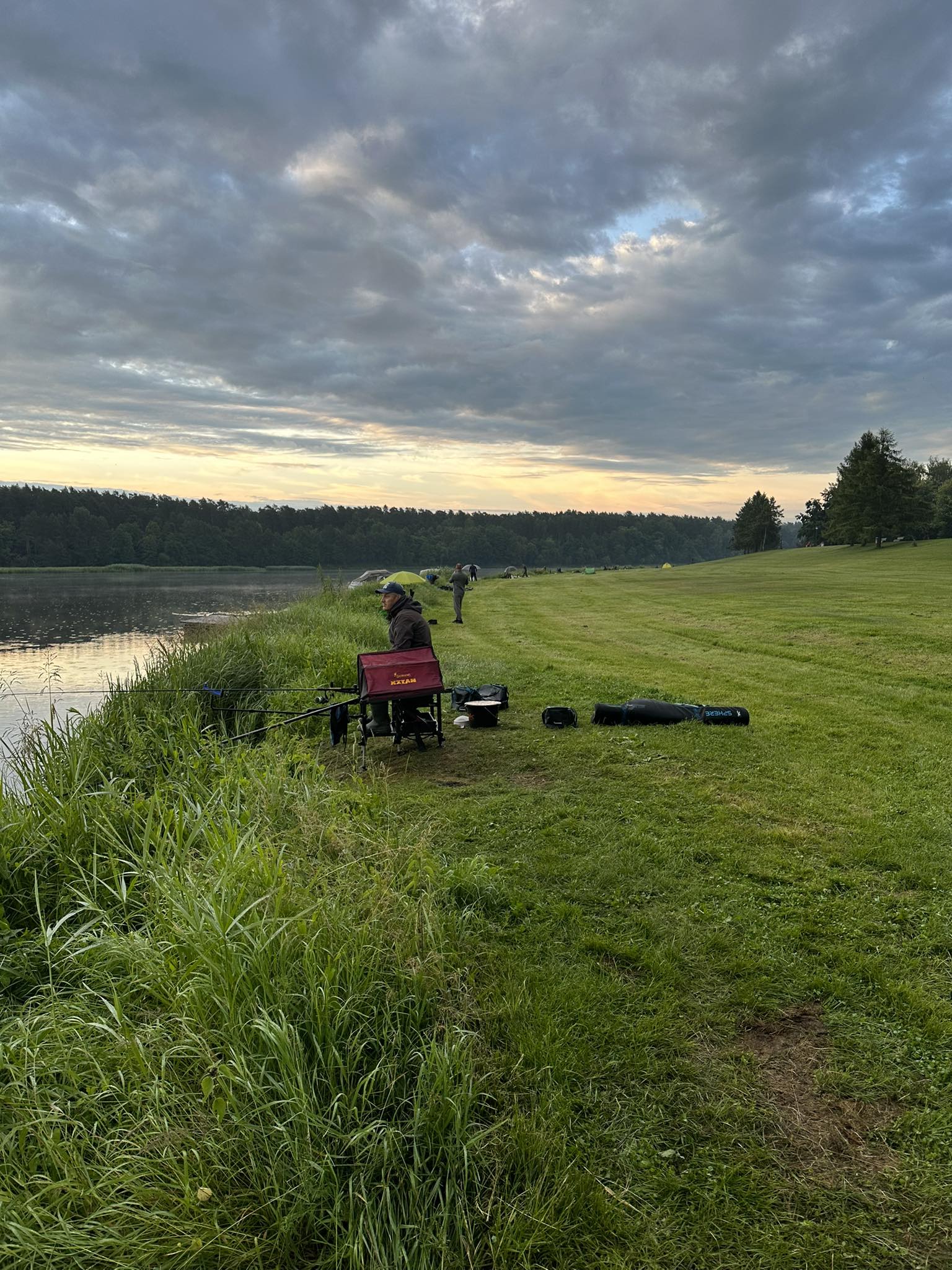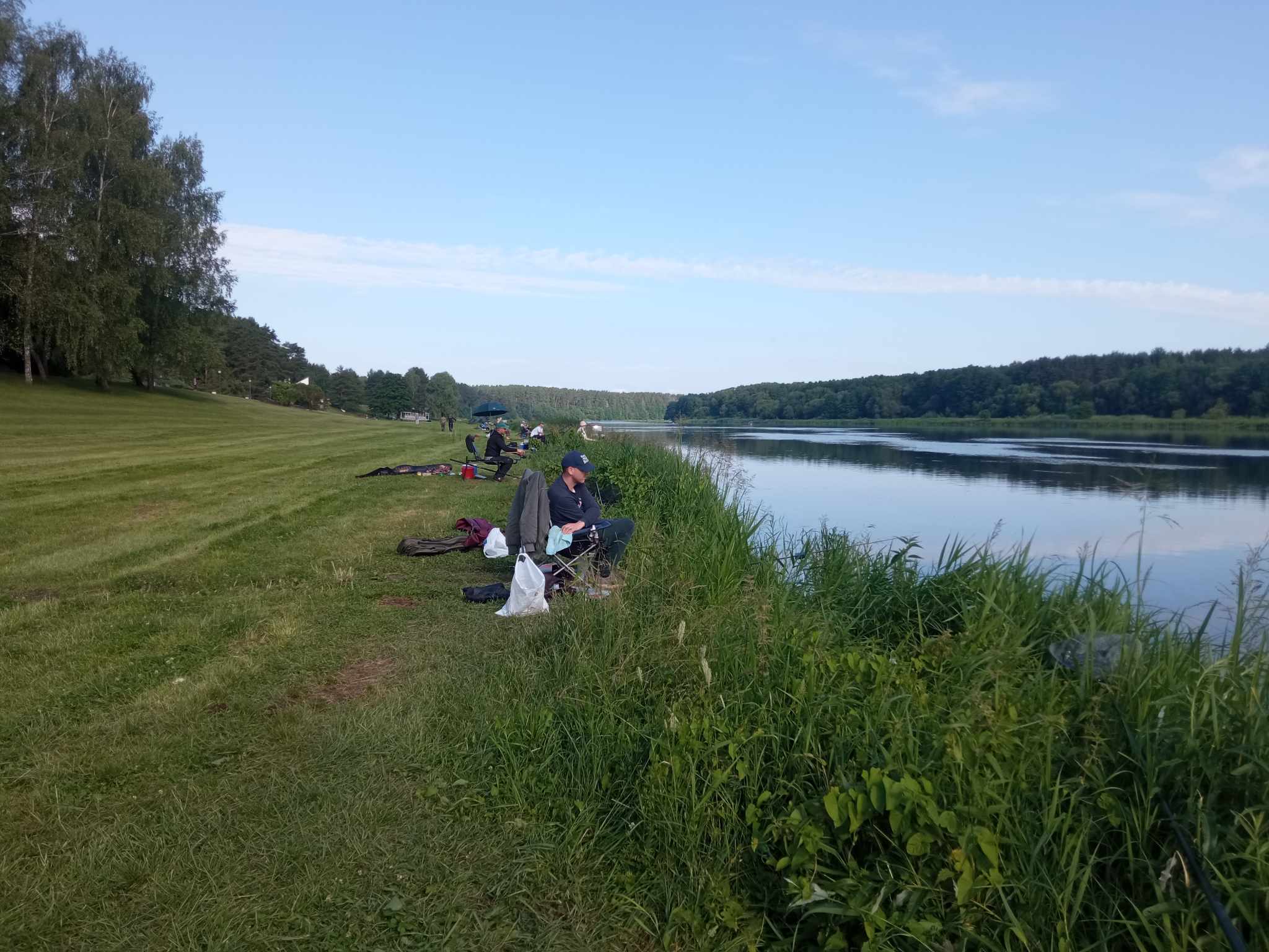 Su Evaldu pasiskaitę, kad šiuo metu geriausiai kimba Birštone, nusprendėme ir mes išbandyti laimę. Kadangi apie Birštoną tomis dienomis buvo kalbama daug, sutarėme važiuoti iš vakaro, kad rastume vietos. Beveik visą kelią pylė kaip iš kibiro ir žaibavo. Tai šiek tiek neramino, nes abu prieš kelionę prognozės taip ir nepasitikrinome, nes nu kam gi… 😀 Bet, laimei, lietus po kurio laiko apstojo. Atvažiavę pamatėme, kad kone visa pakrantė nusėsta žvejų. Šiek tiek paieškojus, radome porą vietų greta viena kitos. Palikę ten mantą, nusprendėme šiek tiek nusnausti ir startuoti dar prieš aušrą. Startavome apie 3 valandą ryto. Pasidarėme taškus, į kuriuos kiekvienas sumetėm po kelias šėryklas jauko. Aš nusprendžiau į šėryklą pridėti trūklio ir musės lervų. Pajaukinę permetinėjome kas 3–5 minutes. Pirmas dvi valandas buvo ramu, gyvybės nesimatė. Jau šiek tiek prašvitus, bam, pirmas kibimas Evaldui, sėdi apie 1 kg. karšis. Abiem pakilo entuziazmas. Dabar tai jau lupsim 😀 Bet nesant kibimų, taip ir netruko jis išblėsti. Po valandėlės kibimas man. Jaučiu, kad sėdi visai neblogas karšis. Likus apie 3 metrus iki kranto, karšis nusprendė sušokti paskutinį šokį ir sugebėjo nusipurtyti nuo kabliuko. Gaila, laukiam toliau. Dar po 30 min. vėl kibimas man. Šį kartą jau pavyko išvilioti plačiašonį į krantą. Po sėkmingo atsidarymo vėl tyla. Pas kaimynus taip pat buvo ramu. Dar po poros valandų vėl kibimas man. Iš meškerės sulinkimo supratau, kad šį kartą rimtesnis eksponatas. Deja, tiek jį ir tepalaikiau – po smūgio, nutrūko pavadėlis. Toliau vėl pauzė, kol galop apie 12 valandą nusprendėme vynioti meškeres. Žvejota buvo Gamakatsu A1 Team Fine feeder 14 nr. kabliukais. Pavadėlio ilgis apie – 1m.