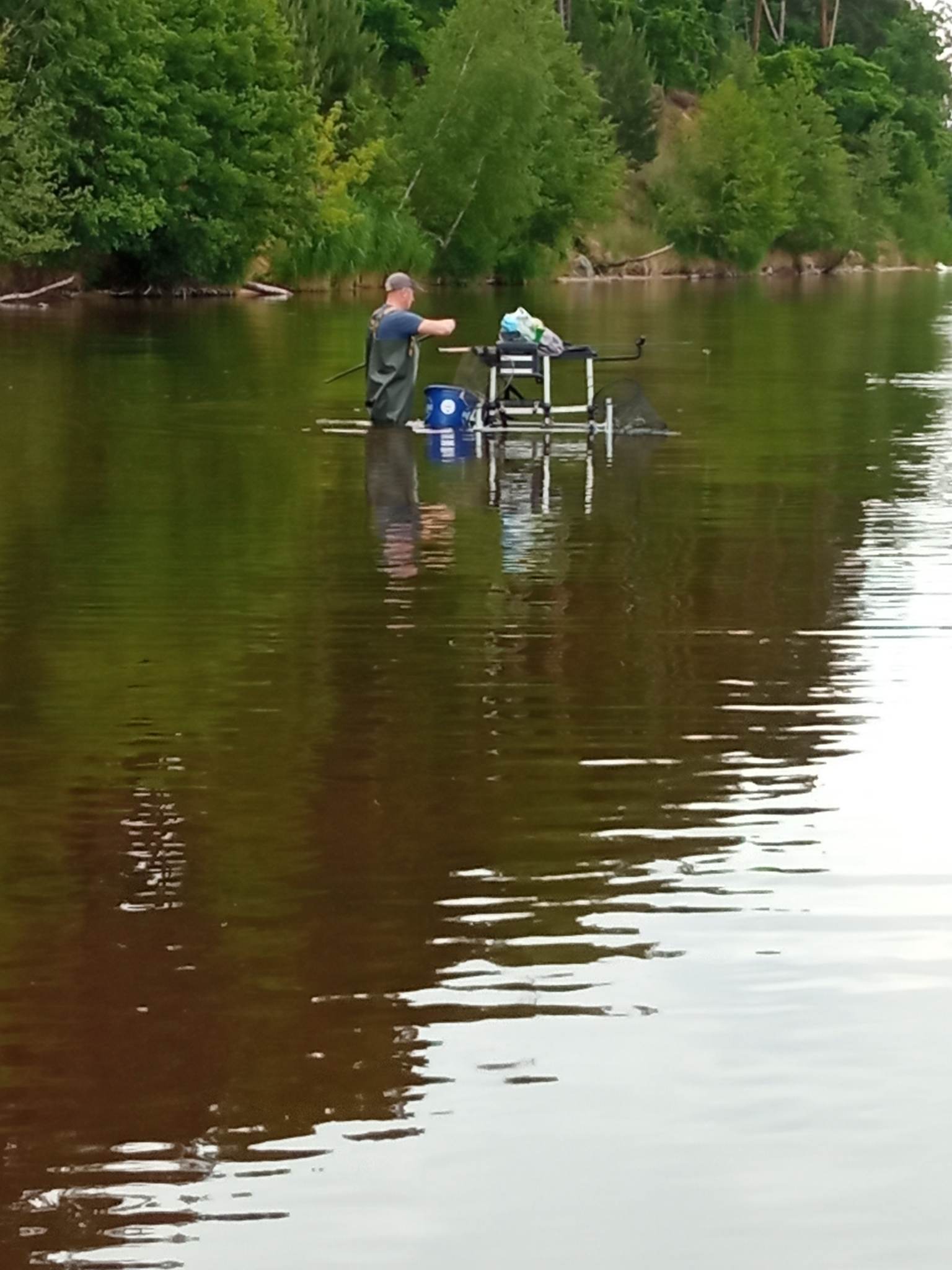 Valandėlė ir aš prie seno gero bajorų Neverovičių vardu praminto ruožo. Pagrindinėje vietoje sutinku senioką, kuris pusiau išprotėjusio žmogaus akimis neskuba pasisveikinti su manimi. Po keleto frazių suprantu viso to priežastis – seniokas sakosi, kad serga ir trečia para negali normaliai užmigti, todėl atvažiuoja prie vandens kad bent pusvalandžiui ar valandai pavyktų numigti. Po tokios kiek siurrealistinės preliudijos suku pedano kojas ir brendu marių tolių link. Nupėdinu beveik iki pat piktosios parandės ir marios iškart mielesnės. O toliau viskas labai tradiciškai – jaukai, masalai, kabliukai… Atstumas super komfortiškas, šėryklos lekia kur kas tiksliau į tašką ir pats jaukinimas kur kas intensyvesnis. Tiesa, po kojomis gal visa infrastruktūra kiek nestabilesnė nei įprasta, bet kentėti tikrai galima (juoba tam įtakos daro mano 100+ kg). Nejaukiausia buvo tik tada, kai lengvą marių bangavimą pakeisdavo stipresnio vėjo gūsiai. Tada instinktyviai ieškai, už ko įsikibti, tik va – kad nelabai yra kur. Kaip ten bebūtų, dvasinis ir fizinis pakylėtumas akivaizdus, todėl belieka sulaukti karšių supratingumo ir malonės. Ir išties – ar tai Nerijaus kaimynystės nebuvimas ir laisvesnės rankos, gal nauji jaukai (nusprendžiau išbandyti Traper GST seriją) ar dar kas, bet šįkart savo dienine (nei rytine, nei vakarine) žvejyba spėriai judėjau savo Kauno marių rekordo link. Prie vandens praleista turbūt septynios su virš valandų ir viso to rezultatas – 21 karšis. Kone visi standartinio dydžio, tik vienas kitas bonusinis (~ 2kg). Masalų kombinacijų kaita šįkart minimali – ant kablio kabinau kuokštelį trūklių, kartais pridėdamas po vieną baltą musės lervą. Jauko frakciją (ypač pradinio šėrimo metu) stambinau su trintuve sutrintais žirniais, aromatizuotas braškiniu „boosteriu“. Laikausi minties, kad valdyti didelę masę karšių galima stambesnės frakcijos jauku. Ir, panašu, ši taktika pasiteisino. Nors gryno žuvies susikoncentravimo taške laikas nebuvo labai ilgas (dažniau po vienos ar dviejų žuvų taškas nurimdavo), tačiau pradinis įdirbis ir logika tikrai nenuėjo perniek. Be to, bandžiau iš pradžių startuoti su 0,12 pavadėliu, tačiau netrukau įsitikinti, kad tamystos karšiai šiandien pageidavo daugiau kultūros, mandagumo ir subtilumo, todėl teko pereiti prie 0,1. Pamažu, mažais žingsneliais ir nukulniavau iki trijų septynetų – 21 galvos siete (skaičių pamečiau kažkur ties 12-13).