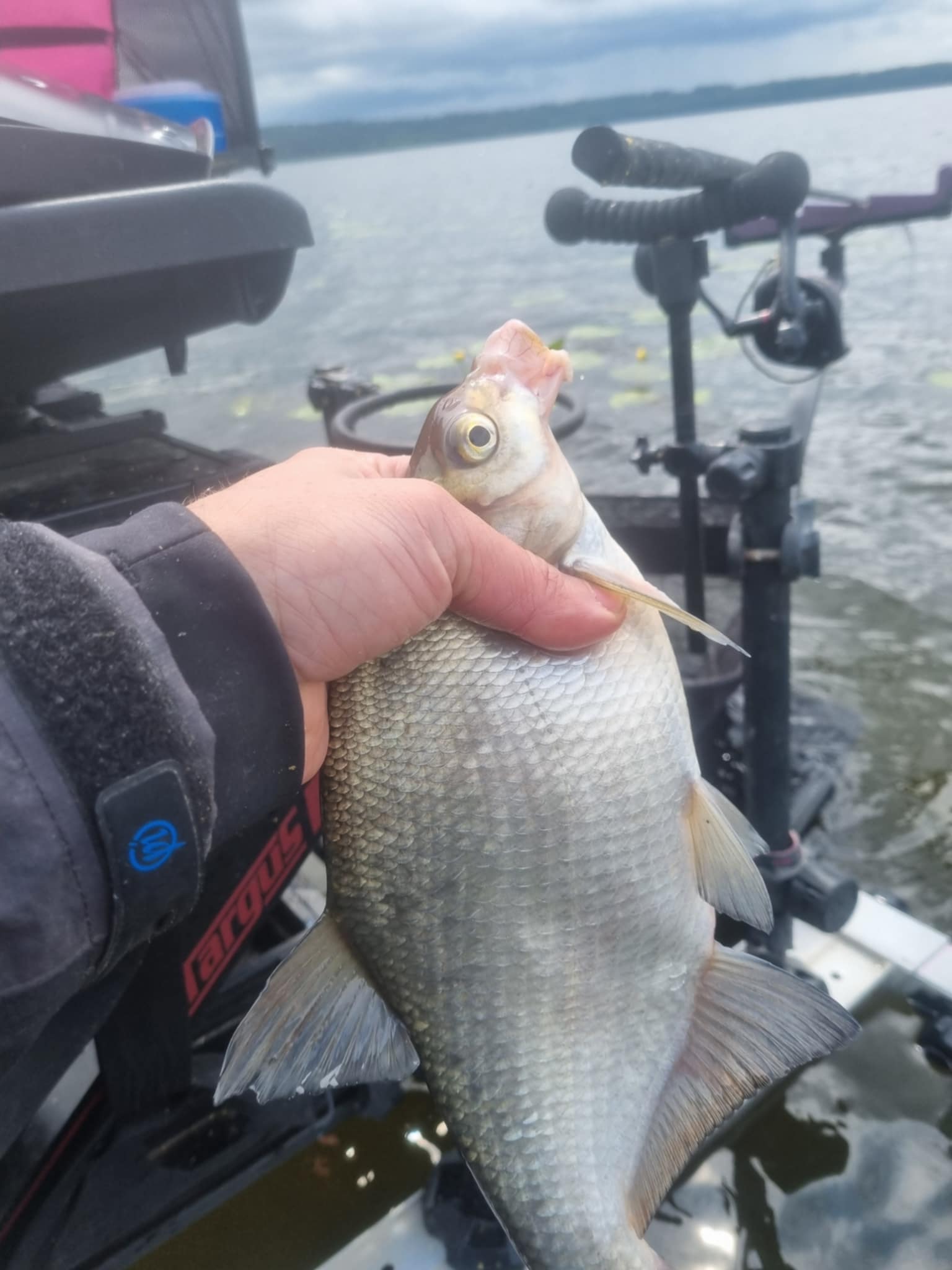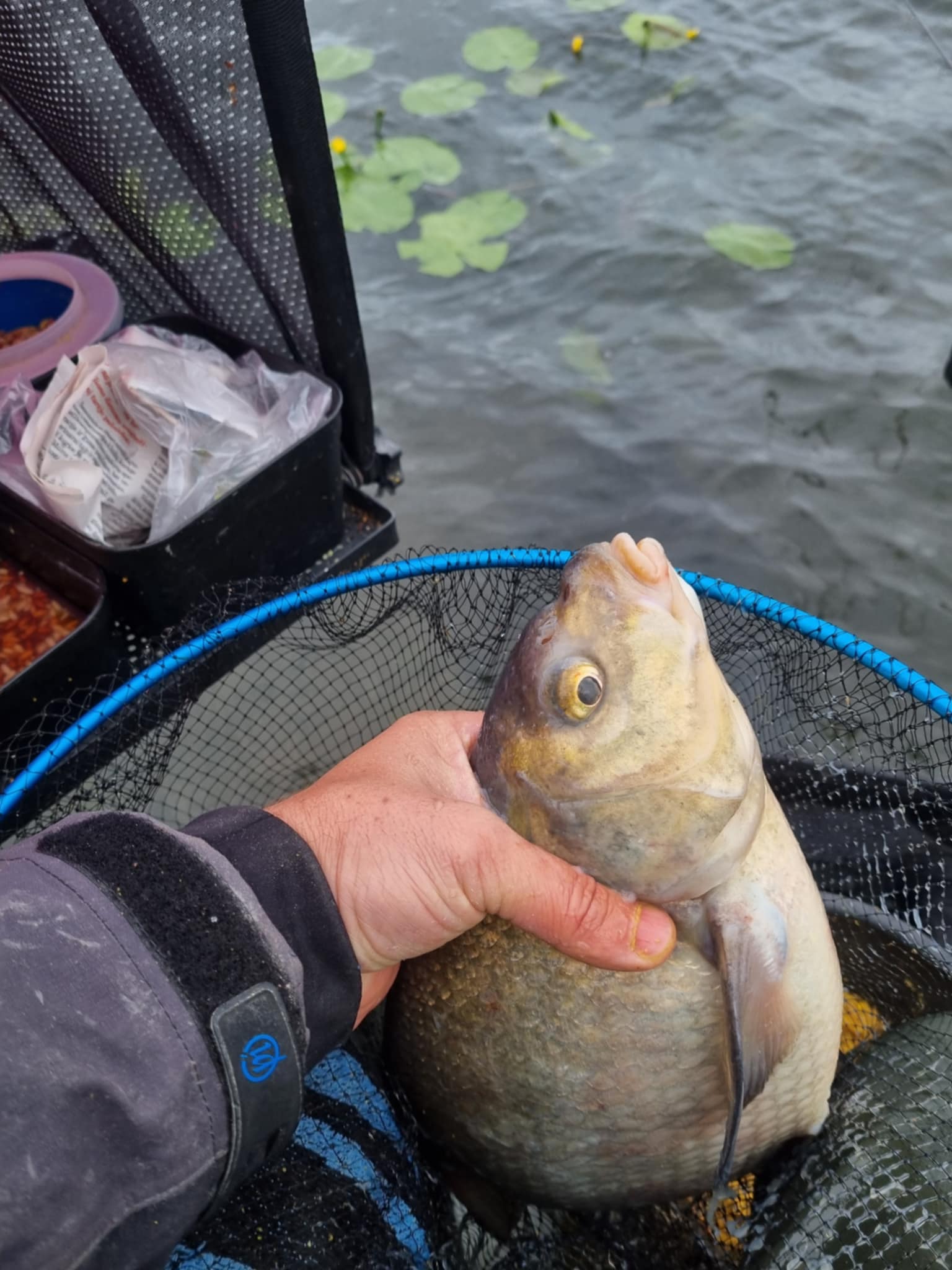 Laimei, atsitiktinumas ar dėsningumas (mano dar iki galo neperprastas) lėmė tai, kad po antro švystelėjimo į naująjį artimąjį tašką (27 m) sulaukiu nevaikiškos atakos. Pakertu – puskaršis (bet jau ne iš vaikų darželio). Kartojam – vėl tas pats! Trečias metimas – BAM, įskaitinis! Taškas kuriasi! Lyg perkūnas iš giedro dangaus! Nei dorai įjaukintas taškas, nei gyvųjų masalų paduota, bet kibimai greiti ir išraiškingi, aiškiai indikuojantys, kad žuvis tikrai sąmoningai pasirinko maitintis šioje lokacijoje. Lyg viso to būtų maža – keletas žvėriškų kibimų (iš serijos – atiduok meškerę!), kurių suvaldyti aš nesugebu, neatlaiko pavadžiai. Galbūt dabar žuvis tiesiog suaktyvėjo, tad, kol baigsis žuvies atitrūkimo virš taško padariniai, lekiu patikrinti tolimosios distancijos – juk ten kalnai gėrybių, žuvis tikrai turėtų sureaguoti…