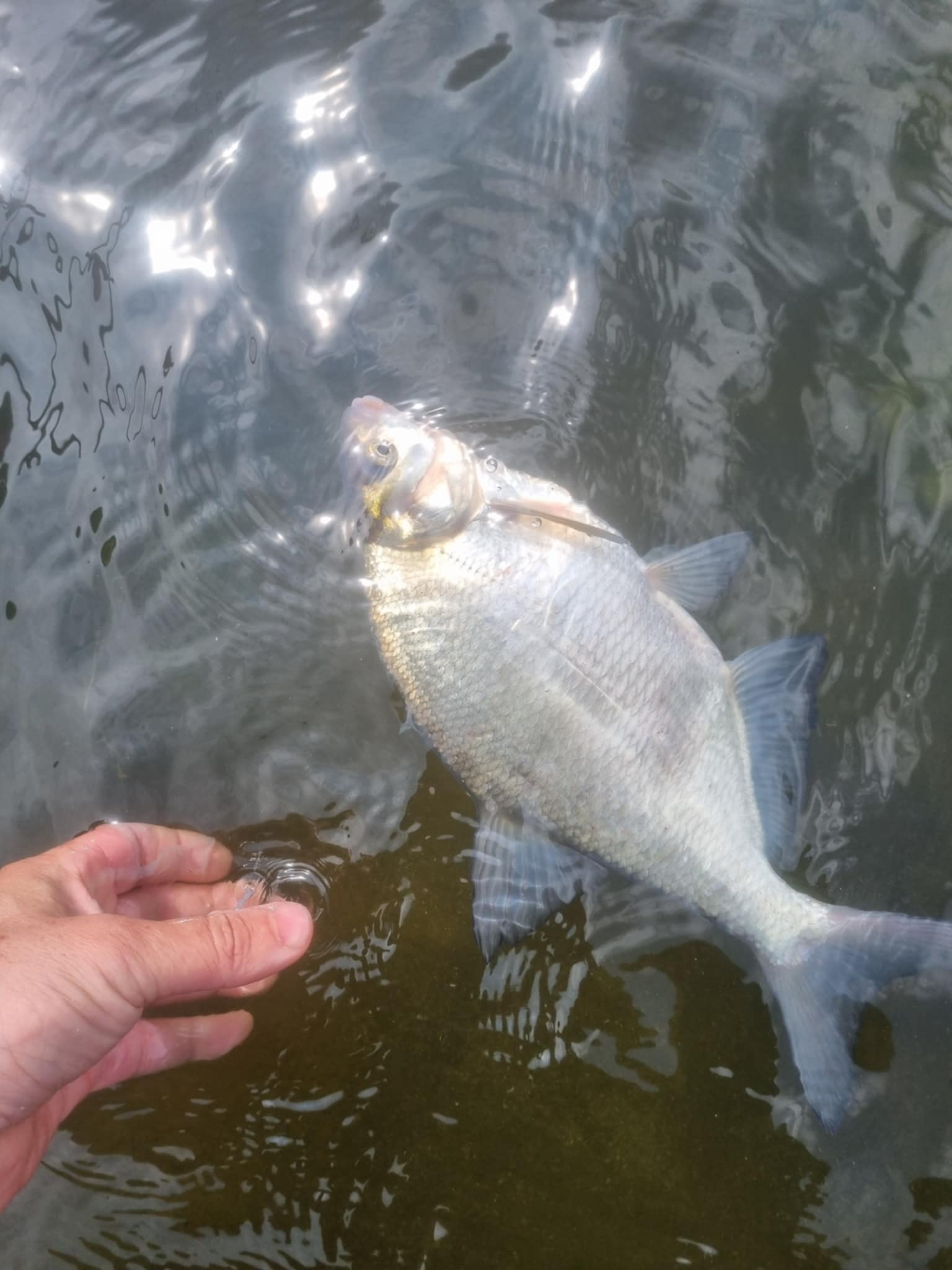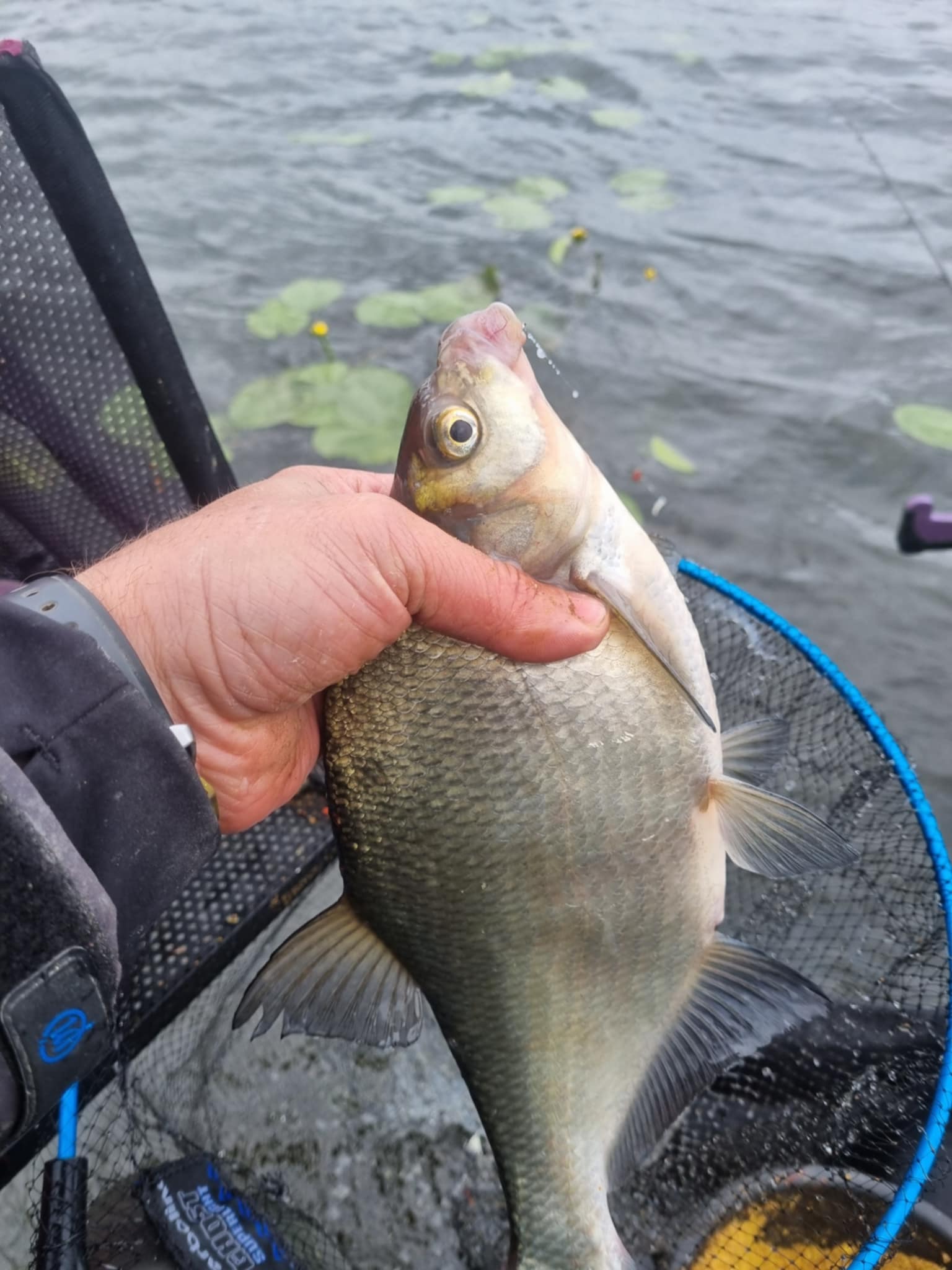 Pirmasis dėdė pasirodė mudviem su Ričardu bepliurpiant. Pakertu ir iškart jaučiu, kad sąlygas diktuoja žuvis, o ne aš. Pavadėlis vos 0,1, tad apie jokį forsavimą negali būti nė kalbos. Svarbiąją naujieną pranešu Ričardui ir iš visų jėgų stengiuosi neapsikvailinti prieš didžiąją klubo galvą. Žuvis kyla sunkiai, pamažu, tačiau procesas kontroliuojamas. Galop pasemiu 2kg+ plačiašonį. Jei taip tęsis ir toliau, pagalvoju, tuoj su Ričardu nebus apie ką kalbėti. Jis dar pabando gelbėti savo vardą ir savivertę niekingais pasiteisinimais, kad žvejojama damba tuščia, o Nemuno vanduo labai sukilęs, neša žoles, bet kam tai rūpi?! Jei nemoki gaudyti, tai…