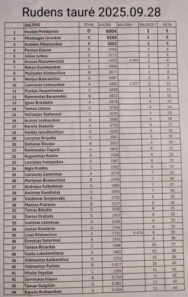 Teko užsirišti mažesnį kabliuką ir trumpesnį pavadėlį. Lengva nebuvo, bet vargais negalais surankioju dar 8–9 karšiukus. Per paskutinę varžybų valandą surankioju dar 10 karšiukų (iš viso skiaurėje – 29 žuvys). Nuskambėjus finaliniam signalui, akimirksniu sugrįžta lengvas nerimas. Reikia sulaukti teisėjų, kad būtų galima sužinoti galutinį mano sugauto laimikio svorį. Po svėrimo paaiškėja, kad mano laimikis sveria 3,571 kg. Šio svorio pakanka antrajai vietai zonoje užimti.