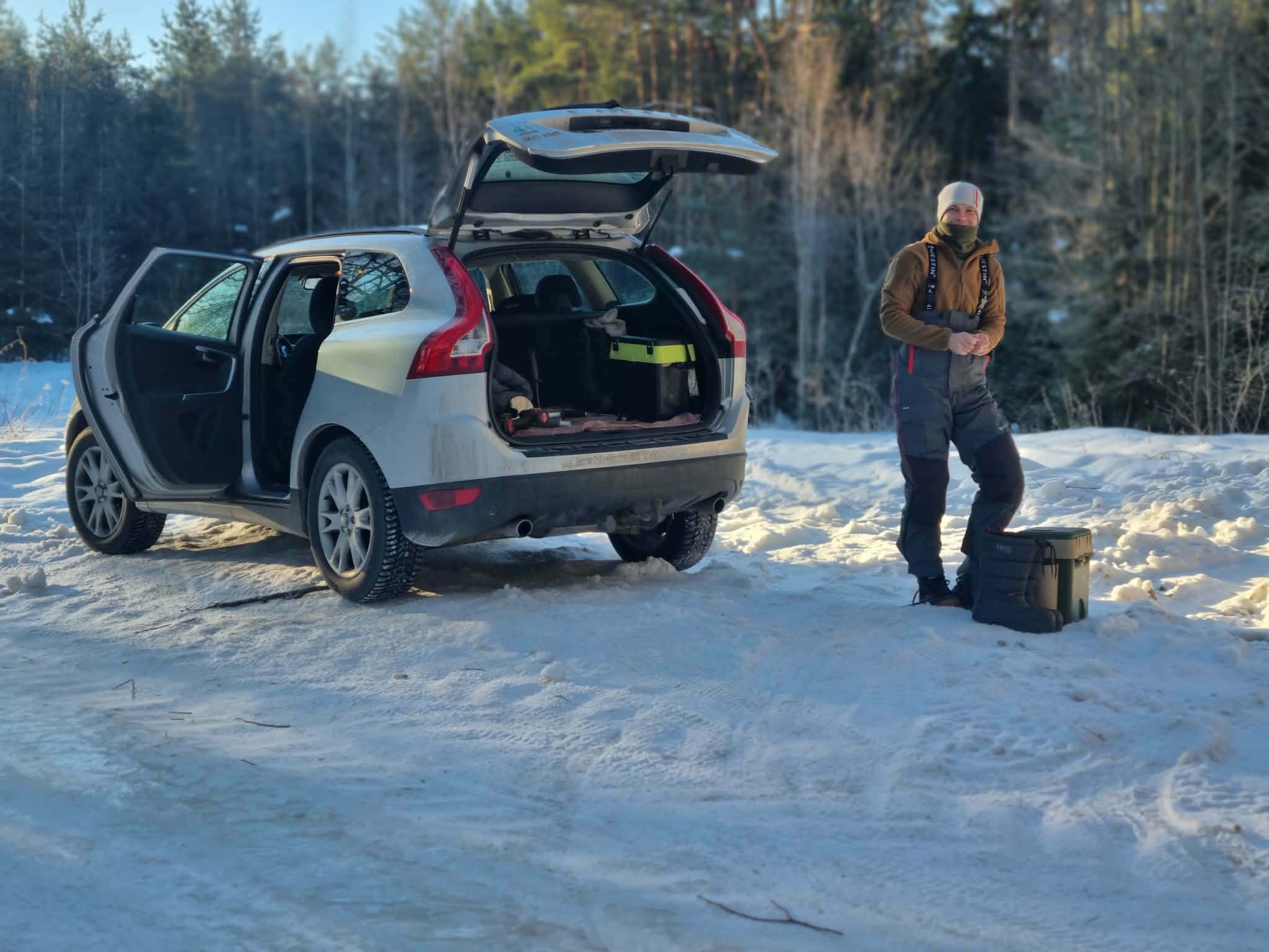 Žvejybinė diena pasitinka mus visai simpatiškomis oro sąlygomis. Kad ir spaudžia šaltukas, tačiau vaiskiai šviečia saulutė ir po apykakle nelandžioja atšiaurus vėjas. Pravažiavę Trakus po valandėlės pasukame kaimo vieškeliu. Kelias kalvotas ir padengtas vientisu it stiklas ledo sluoksniu. Nors važiuojame su maniškiu miesto visureigiu, tačiau jausmelis šiaip sau. Nesinori burbėti kaip kokiam senukui, tačiau visų bendrojo gėrio ir saugumo vardan tokius kaimo keliukus būtų galima pabarstyti smėliu. Ne visi turi automobilius keturiais varomais ratais ir ne visi yra patyrę vairuotojai, todėl net ir menka klaidelė tokiomis sąlygomis gali kainuoti brangiai. Žodžiu…