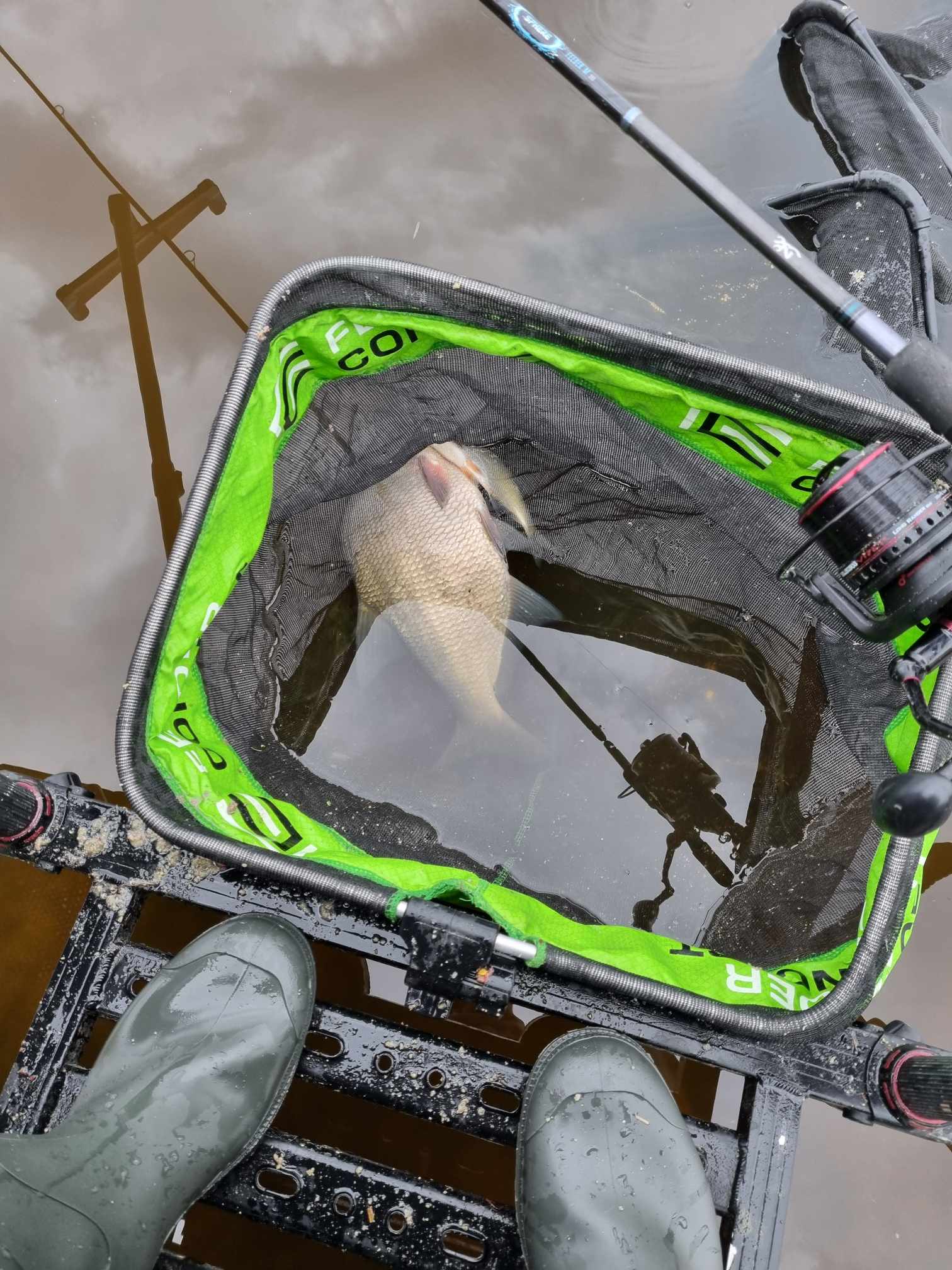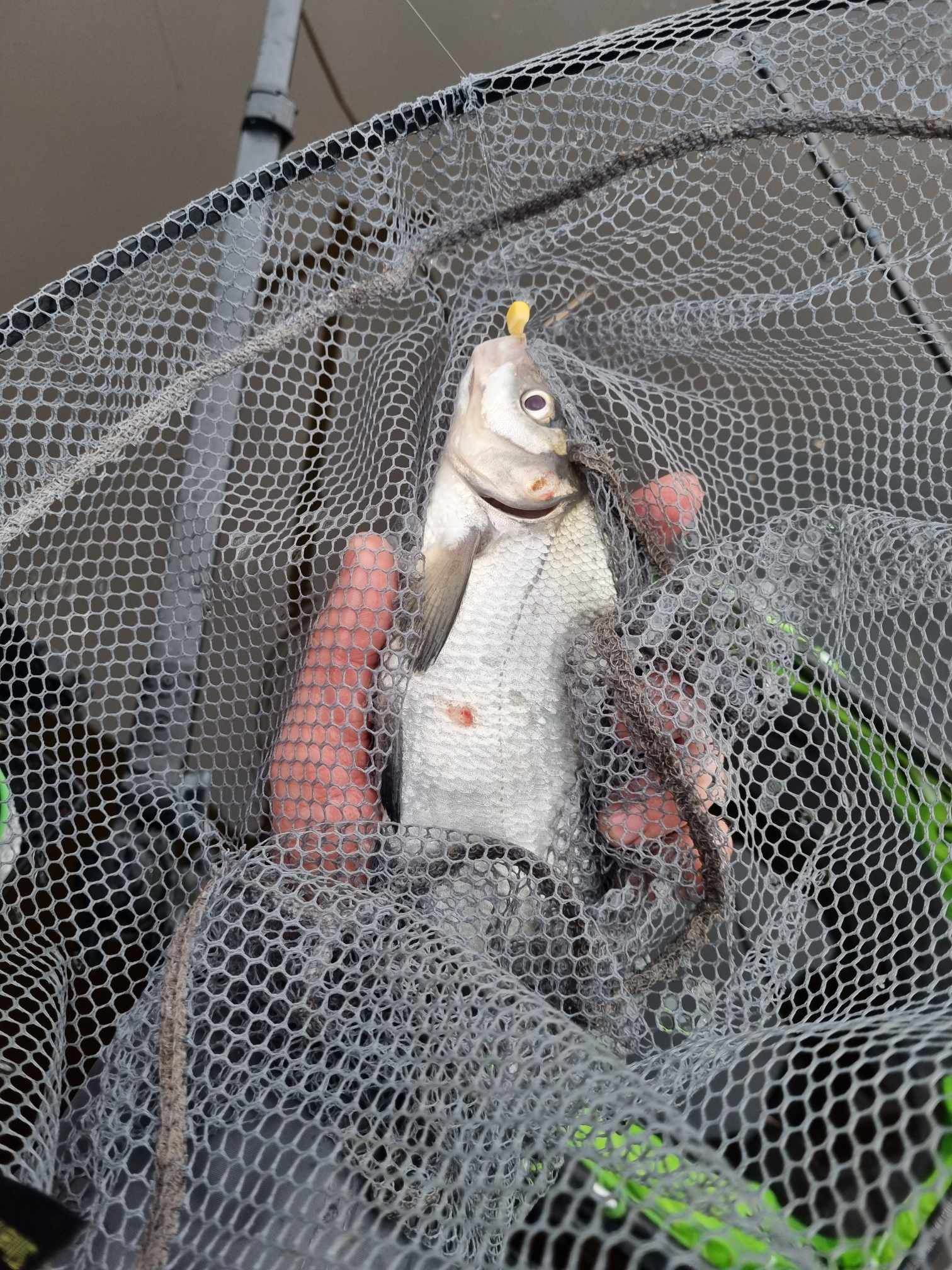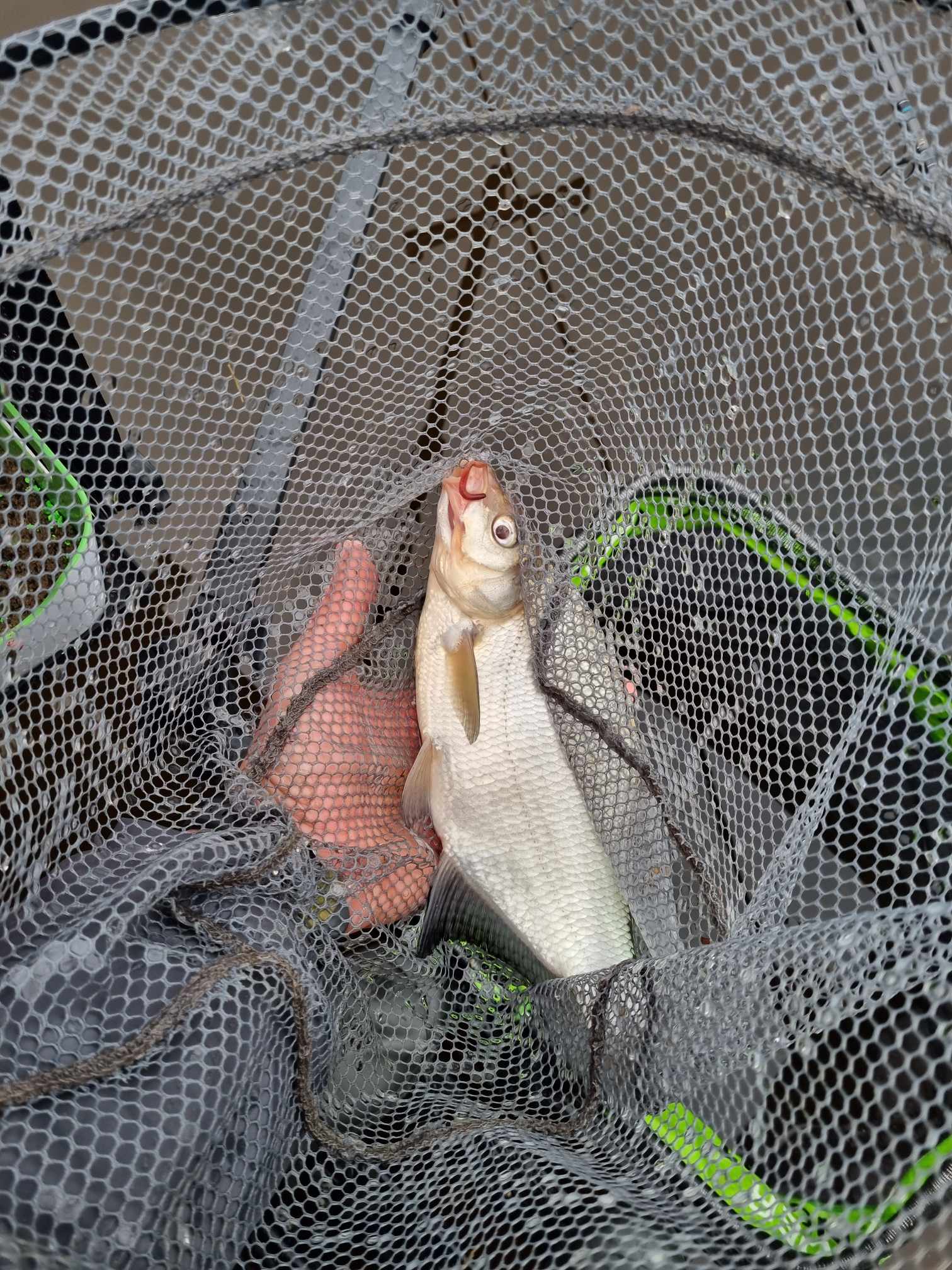 Pirmas metimas irrrrrr iškart pirmas kibimas! Ir džiugu, ir nelabai. Balsu nesakysim, ką reiškia pirmu metimu pagauti žuvį. Bet ir antru metimu tas pats – delninis plakis netrunka prilipti prie kabliuko ir išverstomis akimis aiškinti, kad jis tik plaukė pro šalį ir nieko blogo nenorėjo. Kadangi diena pusiau su džiazu, prie kelių musės lervų ant kablio kabinu riebų kukurūzą (žinia, šiose vietose karosai dažni svečiai, tad gal…). Iškart išraiškingas „bam“ ir jau nebe plakio vaikaitis prie telefono. Nors ne įskaitinis, bet krantan su visais įkalčiais varosi karšiokas. Dar vienas kukurūzas su musės lervų kompanija ir rezultatas vėl toks pat. Kad toks gyvenimas nepabostų, prie musės lervų prikabinam pusbrolį slieką – dar išraiškingesnis „linkt“ ir dabar jau jaučiu, kad kažkas rimčiau (įskaitinis karšis!!!!). Po pusvalandžio – dar vienas (tikrai virš kilogramo)!!! Jau geriau nebegali būti?!