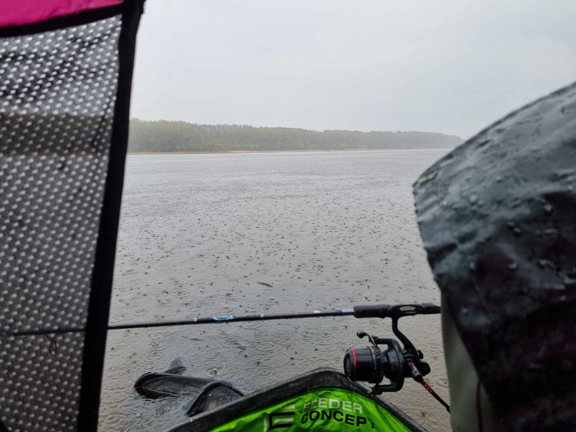 Gali! Lietus, stiprus lietus!!! Slepiuosi po lietpalčiu ir galvoju, kad prasidėjusi pasaka tuoj baigsis (visgi orų permaina). Taip pat manė tik karšiai, o ne plakiai, jiems viskas nė motais. Laikrodį buvau nustatęs keturioms minutėms ir, patikėsite ar ne, praktiškai nesyk visų tų minučių neišlaukiau (tiesa, kibimai dažniausia ties trečia minute). Plakis po plakio, po plakio. Iš gero gyvenimo sugalvojau patikrinti pačią upės vagą (gal ten karšiai nuo lietaus pasislėpė), tačiau gana greit man buvo paaiškinta, kad kelią dėl takelio meta tik nevispročiai. Grįžtu atgal, o iš paskos ir senosios realijos. Prisipažinsiu, kad po labai jau pusėtino starto varžybose, tokia sportiška žvejyba pati tikriausia nervų reabilitacija. Kone vienas visam krante, žuvis aktyvi, pasigauna viena kita įskaitinė žuvis (tik karosai nepasirodė), nieko daugiau juk nebereikia. Žodžiu, mūsų dienos kaip šventė!