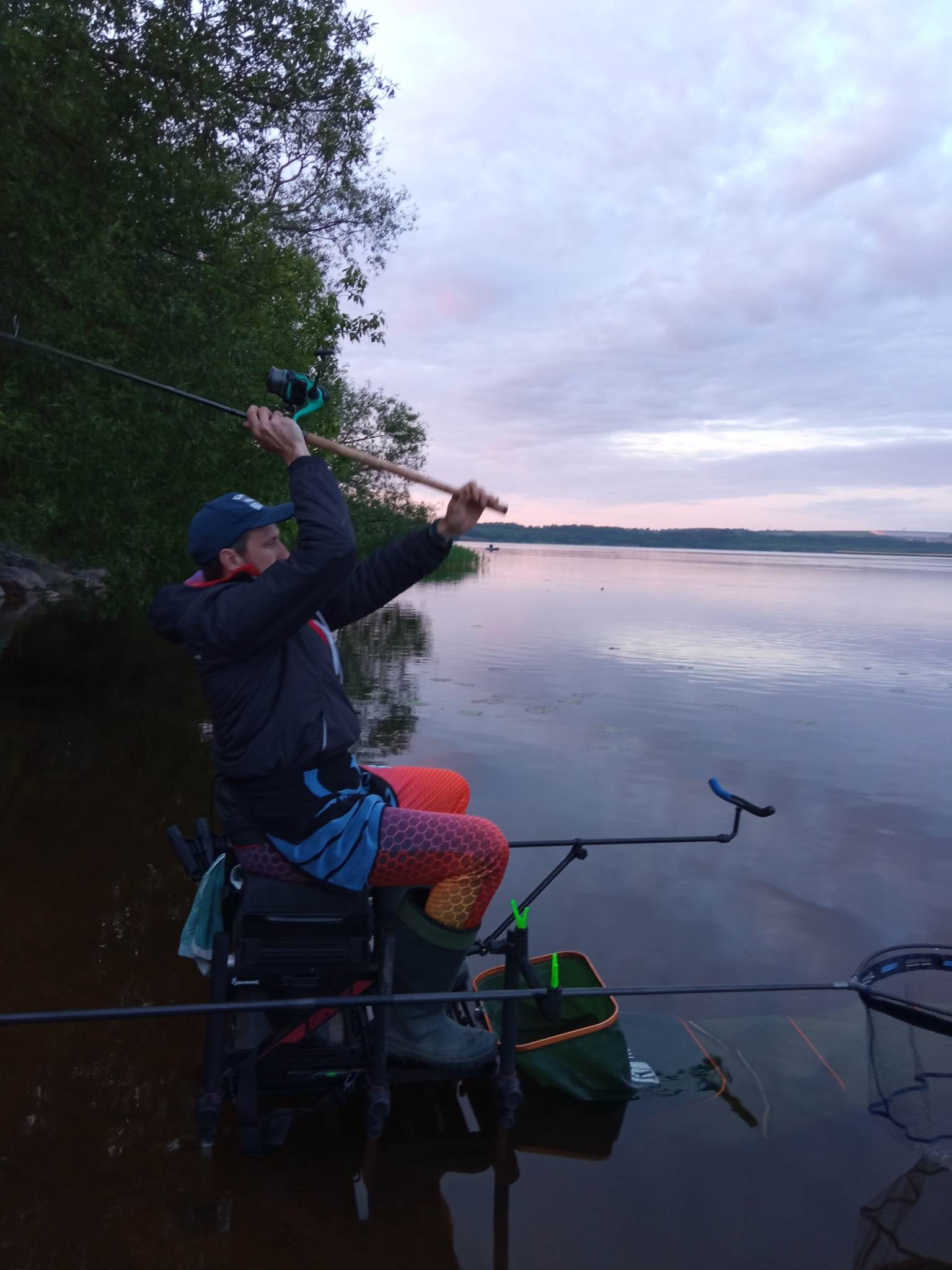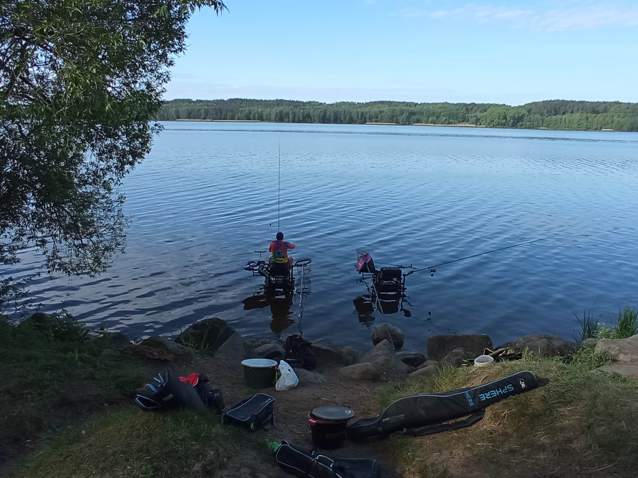 Švystelim pirmiausia į vandenį echoloto akį – piktų parandžių nėr, gylis laipsniškai didėjantis iki echolotu pasiekiamų 7 metrų ir pavieniai tiek didesnių, tiek mažesnių žuvų simboliai. Praskutam švineliu dugną – jokių pasaulio stebuklų. Kuo toliau, tuo minkštesnis dugnas. Šiek tiek švinas kliūva visai pakojui (apie 20 metrų), kur gylis nebesiekia ir 3 metrų. Tiesa, aplink dominuoja Kauno marių klasika – signalizatoriais ir varpeliais ginkluotų meškerių armija. Mudu su Ričardu iš šio konteksto aiškiai išsiskiriame bent jau vizualiomis savo apeliacijomis į žvejus sportininkus. Visgi mums po užpakaliais platformos! Ričardas šyptelėjo, kad galbūt dėl to niekas neskubėjo su mumis pasilabinti ir aptarti žvejybinių ryto realijų. Na ir galiausiai – žvejybos taktika bei rezultatai. Susėdom petys į petį, kadangi manevro laisvę mažino ne tik glaudi žvejų kaimynystė, bet ir vis gausiau žaliuojančios priekrantės žolės. Ričardo arsenale – žalsvas mišrios prigimties jaukas, akcentuotas marcipaninės aromatikos, na o mano – akcijinis norfinis VDE. Nežinau, ar už šį savo skūpumą / taupumą galiausiai sumokėsiu dvigubai, bet šįkart likau už Ričardo nugaros. Jei dar pirmosiomis ryto valandomis laikėmės apylygiai, tai įdienojus likau daugiau stebėtojo vaidmeny. Nors pliku užpakaliu tikrai nelikau (norma sugaudyta), bet akivaizdu, kad Ričardo taškas dirbo geriau. Ar tai masalų keitimo dinamika, ar jaukas, ar taško distancija (Ričardas gaudė ~ 10 m. toliau), ar dar kas, bet jo sąskaitoje ne tik big fish‘as, bet ir +7 kg galutinio laimikio. Tikrai šauniai (dėl šitų Ričardo ekscesų turėtų sunerimti Nerijus)! Man pačiam paguoda tik ta, kad kaimynų tradiciniai būdai efektyvumu atsiliko dar didesniu atstumu nuo manęs, nei aš nuo Ričardo. Išties akivaizdu, – žvejojama kone tuose pačiuose ruožuose, bet rezultatyvumo skirtumas didžiulis. Kiek teko matyt, kaimynai sugaudė tik pavienes žuvis. Akcentuotas taško pasirinkimas, intensyvus jaukinimas, keičiamos masalų kombinacijos, žvejyba 3-4m2 plote (jei pavyksta, žinoma, jei leidžia oro sąlygos ir ne pernelyg didelis atstumas) – visa tai yra esminės prielaidos geresniam rezultatui pasiekti. Tiesa, kadangi mano pasirinktam taške santykiniu požiūriu būta daugiau kriauklių (gal tai lėmė ir mažesnį mano lūkesčių ir galutinio rezultato santykį), gausesnės šįkart buvo ir mano aukos dievams. Iš viso be kabliukų parsitempiau daugiau kaip dešimt pavadėlių (juokinga buvo iki pirmų penkių kažkur). Na ir summa summarum – totalaus miego stygiaus iškreiptų veidų su savo laimikiais nuotraukos. Šiaip jau, nepaisant visko, karšių žvejyba buvo puiki, sugautas žuvų kiekis tikrai ne prastas (per abu ~17 kg), tik, matyt, viso ryto nuotykių visumos iki galo dar neleido suprasti klajojimo patirtis ir nuovargis. Kaip ten bebūtų, visa tai virs dar vienu atsiminimu, kurį bus galima ir anūkams, ir proanūkiams papasakoti (jei tokio amžiaus sulauksim).