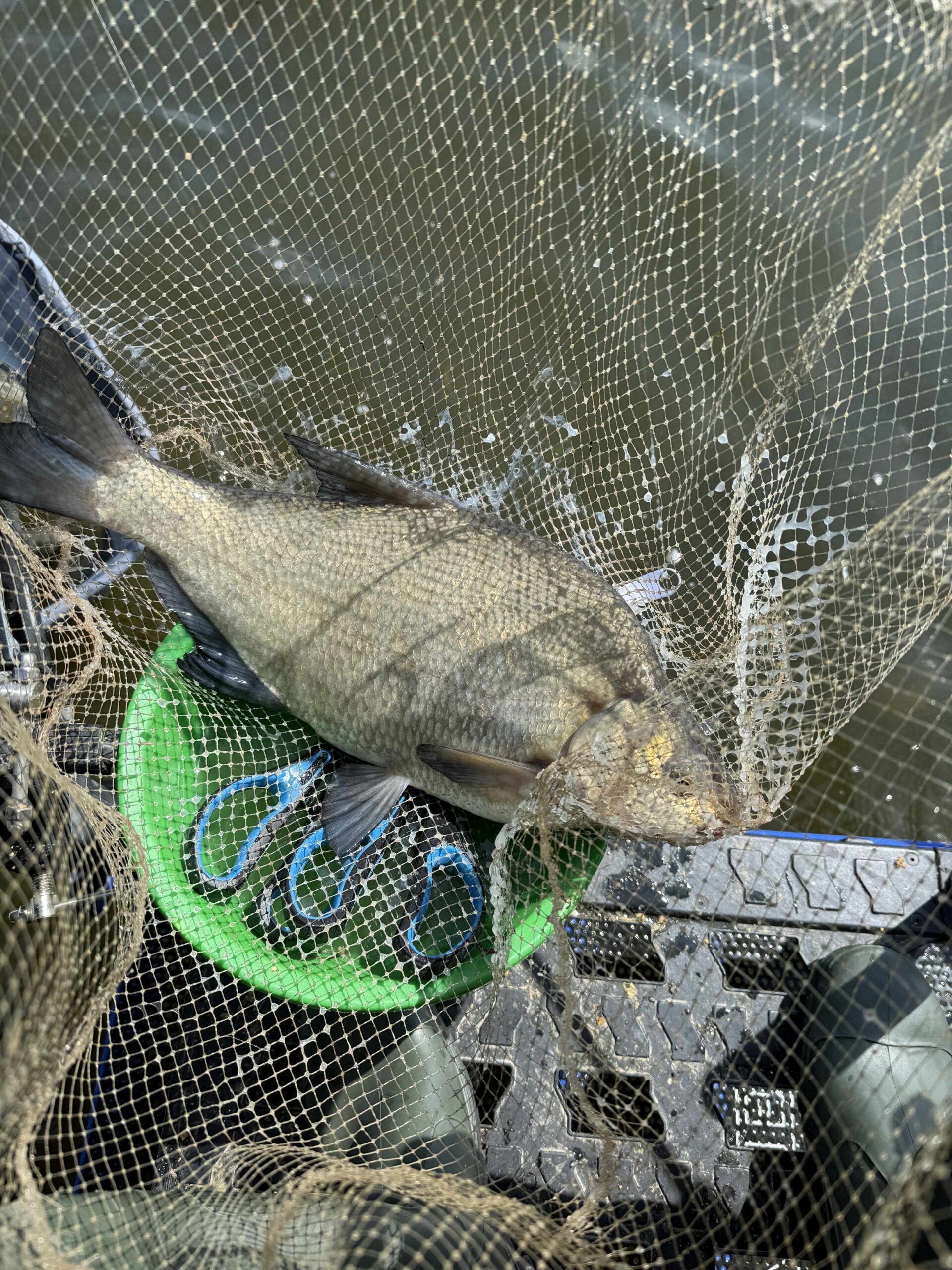 Atsakymo ilgai laukti nereikėjo. Kitu metimu ir vėl į krantą važiuoja plačiašonis! Kaip sakoma, misija įvykdyta ir karšis pasistatytas. Kibimai tikrai įspūdingi. Atrodo, kad meškerę įtrauks į vandenį. Net ritės stabdis trašką juos bekertant. Labai buvau išsiilgęs tokių kovų su plačiašoniais karšiais. Tiesa, šį kartą mano pagalbininkas buvo naujasis Atoros graibšto kotas! Labai patiko – lengvas, plonas ir maloniai limpantis prie rankos! Na ir kaip be „big‘o“. Jūsų teismui – oficialus mano šių metų monstrelis – 2,4kg karšis. Kaip visada, greita nuotrauka su žuvimis, viena jų namo, o visos kitos atgal į marias.