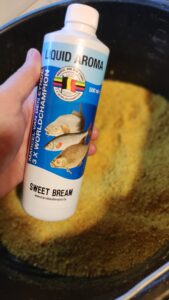 Jeigu pamenate, trečiadienio žvejybai buvau pasirinkęs sūrų jauką. Šiuo kartu, nors ir vanduo gerokai atvėsęs, grįžau prie gana stipriai pasaldinto varianto. Ilgai dvejojau, tamsinti šiek tiek jį ar ne. Vis tik paskutinį kartą padrėkindamas ant kranto jauką iki man norimos konsistencijos, šiek tiek nugesinau jo spalvą nuo geltonos iki žalsvos.