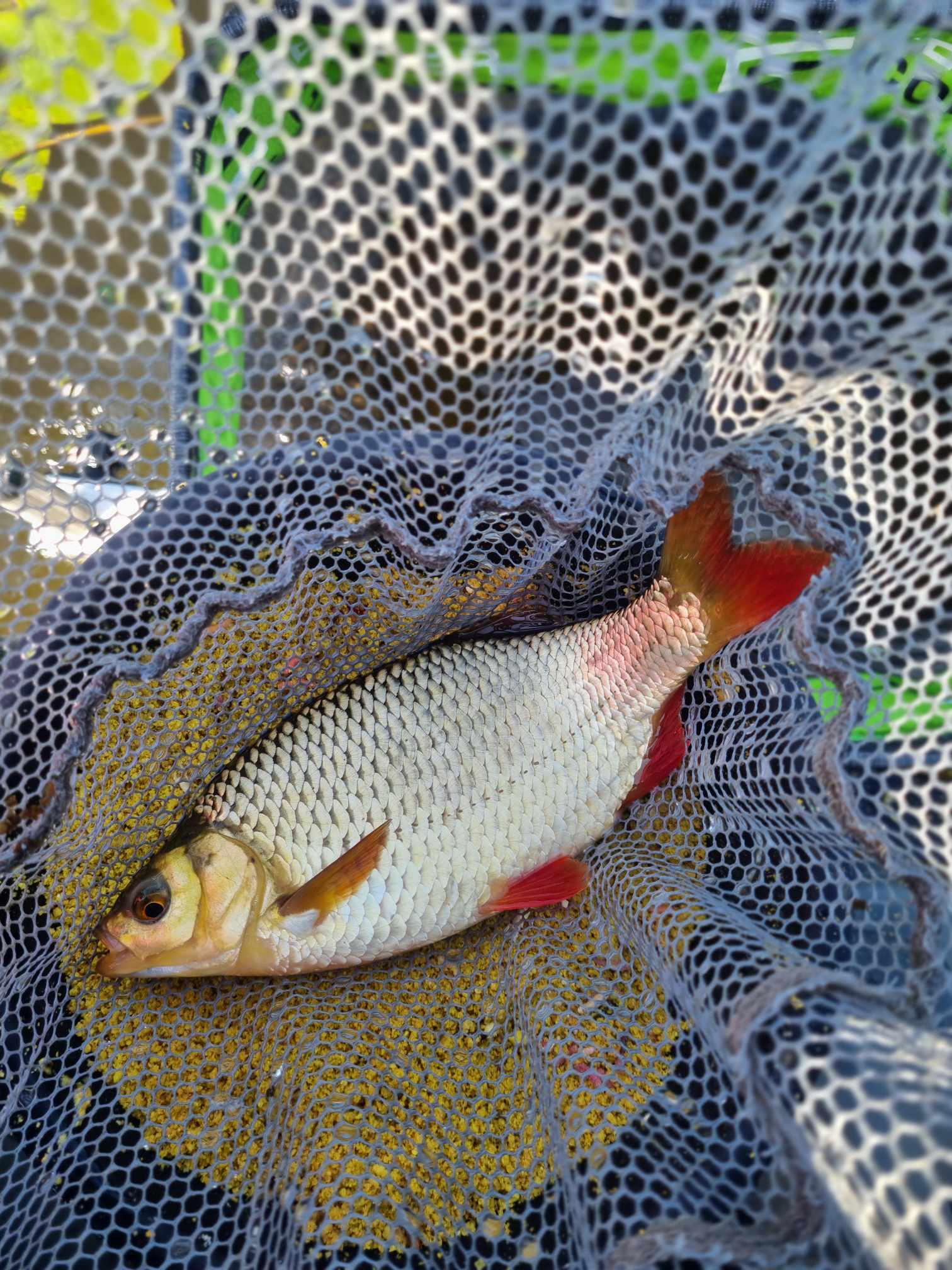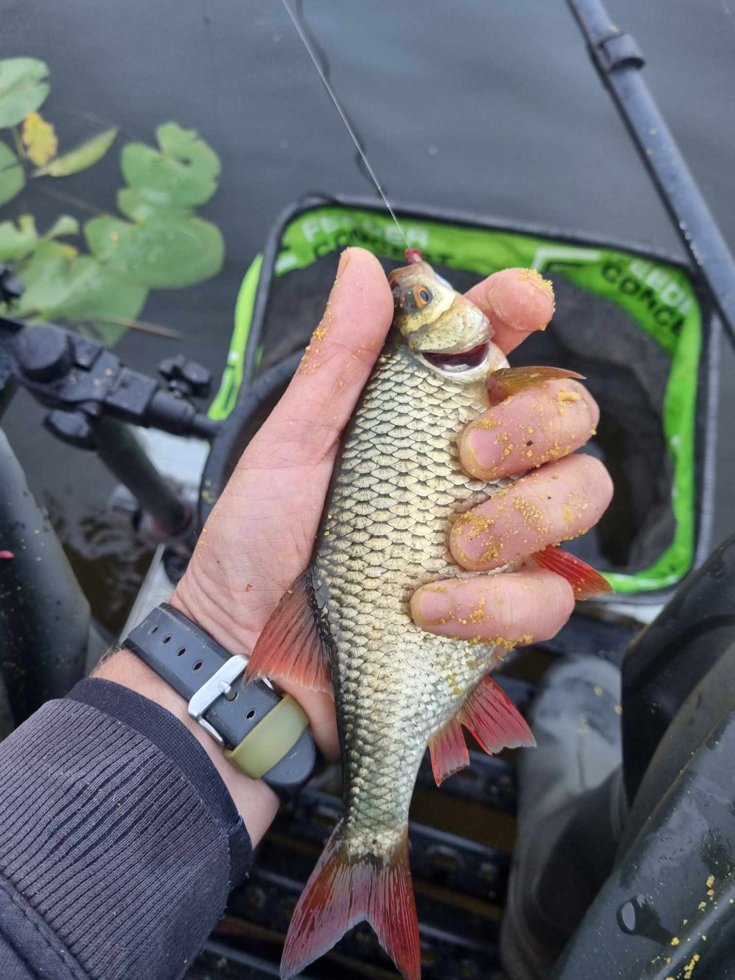 Po ketvirto karpiuko iš eilės (per geras penkiolika minučių), pradedu galvoti, kad galbūt per arti pasirinkau tašką. Nors klipsas prieš pat parandę ir gylis visai normalus (~6 m), bet gal pataikiau į priekrantės vaikų darželį? Na bet dumti iš taško, kuriame pragyvenai vos pusvalandį, irgi ne pati geriausia mintis. Bandau nuvaikyti abejones priklydėles ir darbuotis toliau. Bandau… Švysteliu dar kartą ir sulaukiu antrosios šios dienos staigmenos – kažkas agresyviai čiumpa dar besileidžiantį masalą. Negi karpiokai visai išprotėjo? Nieko panašaus, pasirodo dėmesio sau nusprendė išreikalauti visai padori raudė. Nieko nebesuprantu – jaukas tikrai ne per sausas (ne dulkė). Gal dėl to, kad į šėryklą įdėdavau po saujelę skandintų pinkučių? Ta proga nusprendžiu stipriau sutrombuoti jauką šėrykloje ir kol kas atsisakyti gyvųjų masalų paslaugų. Bet tai nieko nekeičia – metimas ir dar viena raudė atkeliauja krantan.