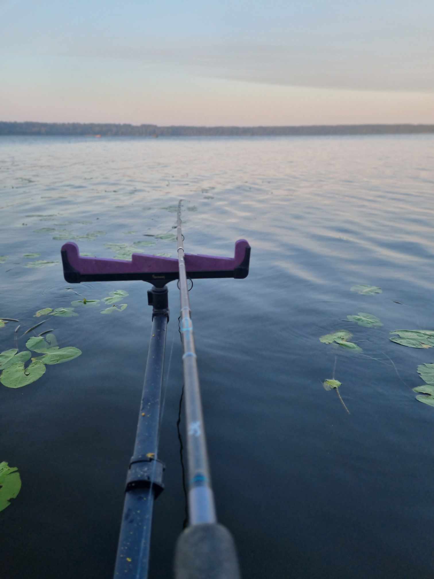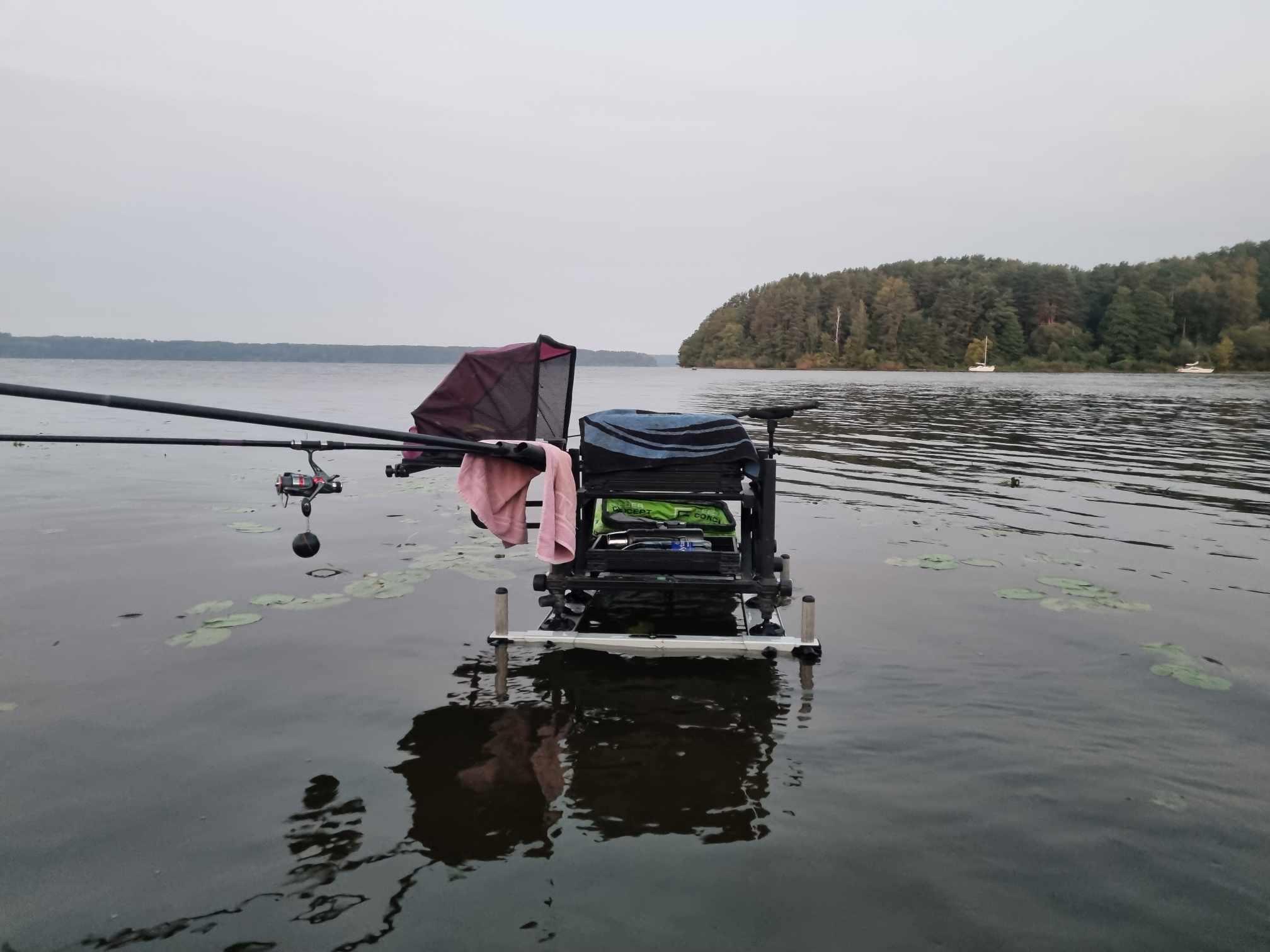 Kiek po pusės šešių atsiduriu prie senųjų gerųjų Rumšiškių. Nurioglinu žemyn su manta apkrautu savo karučiu ir skubu viską greičiau susiruošti iki pasirodančių pirmųjų saulės spindulių. Ačiū Dievui, vidutiniokas vėjas visą žalumą nudanginęs kažkur nežinoma kryptimi, todėl belieka rūpintis tik žvejybiniais reikalais. Jauko receptūra šįkart ir vėl į Nobelio premiją nepretenduoju – saldus, šviesus Champion Feed‘as. Kur kas didesnis akcentas gyviesiems masalams. Nusprendžiu startinio jaukinimo pagrindu pasirinkti kasterį. Vanduo mariose kiek nukritęs, tad pirmas klipsas itin patogiu atstumus (~30 metrų). Su jaukinimui skirta (mano patobulinta) Preston šėrykla skraidinu lengvai nuo kasterio perdrėkusio jauko porcijas į tašką. Jaukinu nesikuklindamas – vienu ypu sumetu pusę pakelio musės lervų kokonų. Žvejybos startui – atvira šėrykla, lengvai suspaustas jaukas su trupučiu skandintų pinkučių. Ant kablio kelios musės lervos su trūkliais.