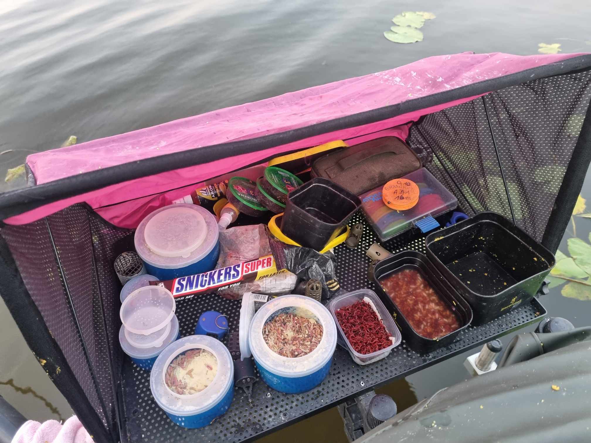 Tai buvo paskutinis lašas, įtikinęs mane, kad pasirinktas taškas per artimas, todėl susidūriau su priekrantės žolynų gyventojais. Perkeliu klipsą gerus 10 metrų (radau šiokį tokį dugno perkritimą) ir kasterologijos seansą pakartoju su beveik dviem dėžutėmis sukarpytų sliekų. Kadangi šiandien nusiteikęs rimtai pakaršiauti, juokams ne vieta ir ne laikas. Bet čia tik aš taip galvojau. Pirmas metimas į naują tašką ir vėl tas pats smūgis. Ir vėl karpiokas! O po to dar vienas, ir dar vienas, tada vėl raudė, pačiumpanti besileidžiantį masalą. Toks jausmas, kad taške visas kalnas tokių keistų žuvų. Nusprendžiu eiti va bank ir į tašką dar gausiau paduoti gyvų masalų (dabar jau nebesirenkant), bet… Kad ir ką bedaryčiau, rezultatas toks pat… Karpiokas, raudė, karpiokas, raudė… Pajutęs, kad ši diena gali taip ir baigtis, pradedu po truputį raudes mesti sietan, kad būtų bent ką jums parodyti. Ant kablio, akivaizdu, geriausiai darbuojasi kelios musės lervos. Reikalo negadina ir trūkliai, ir pinkutės, ir sliekai. Ką dėsi, viskas tiks…
