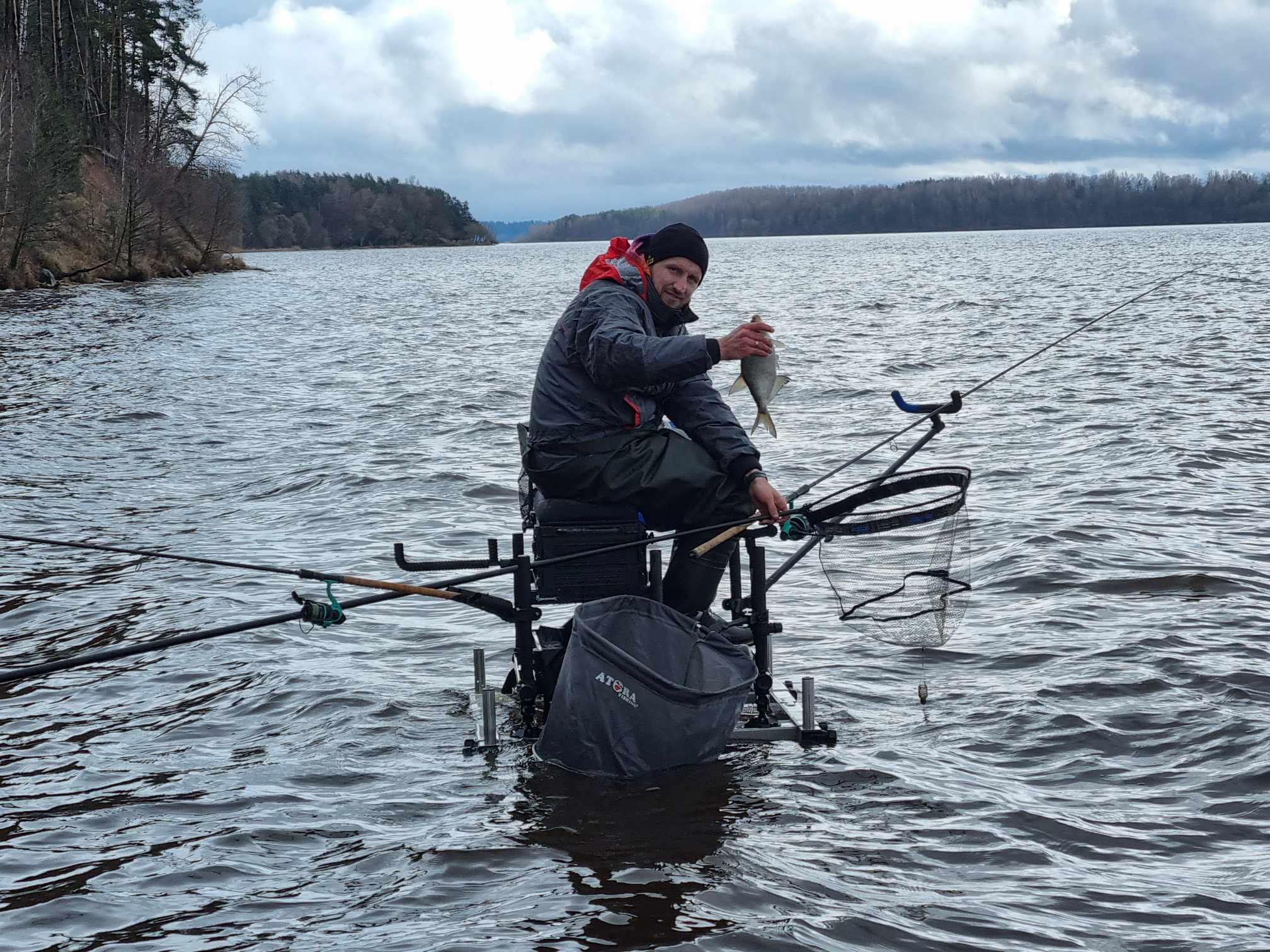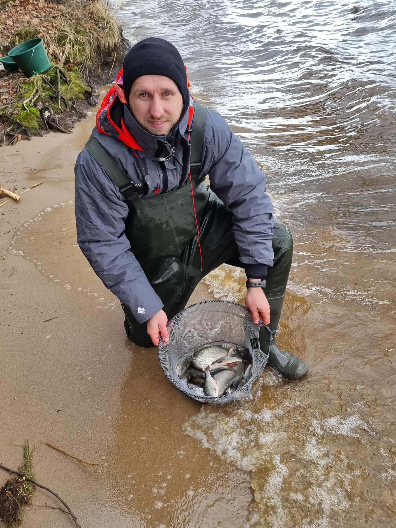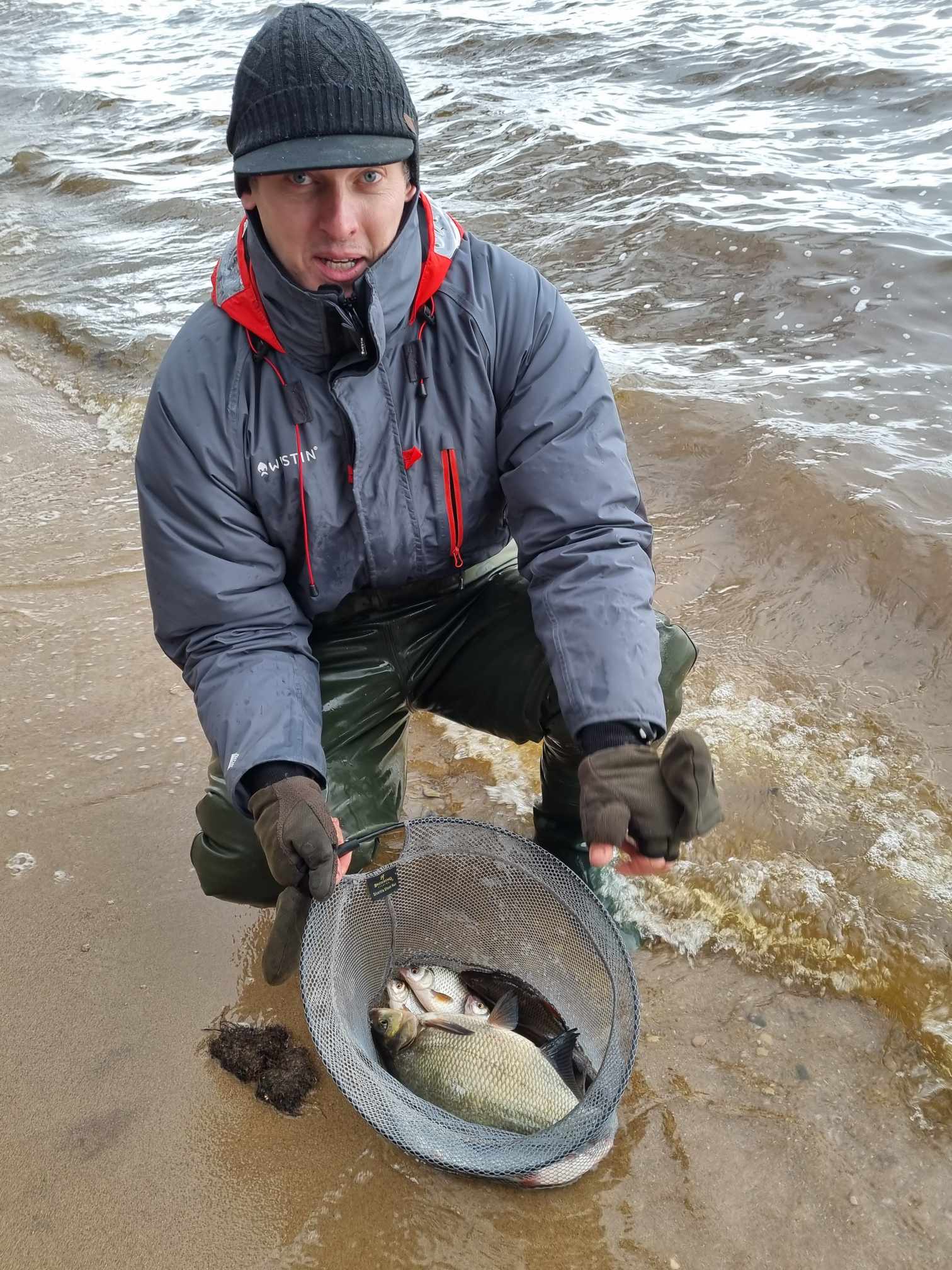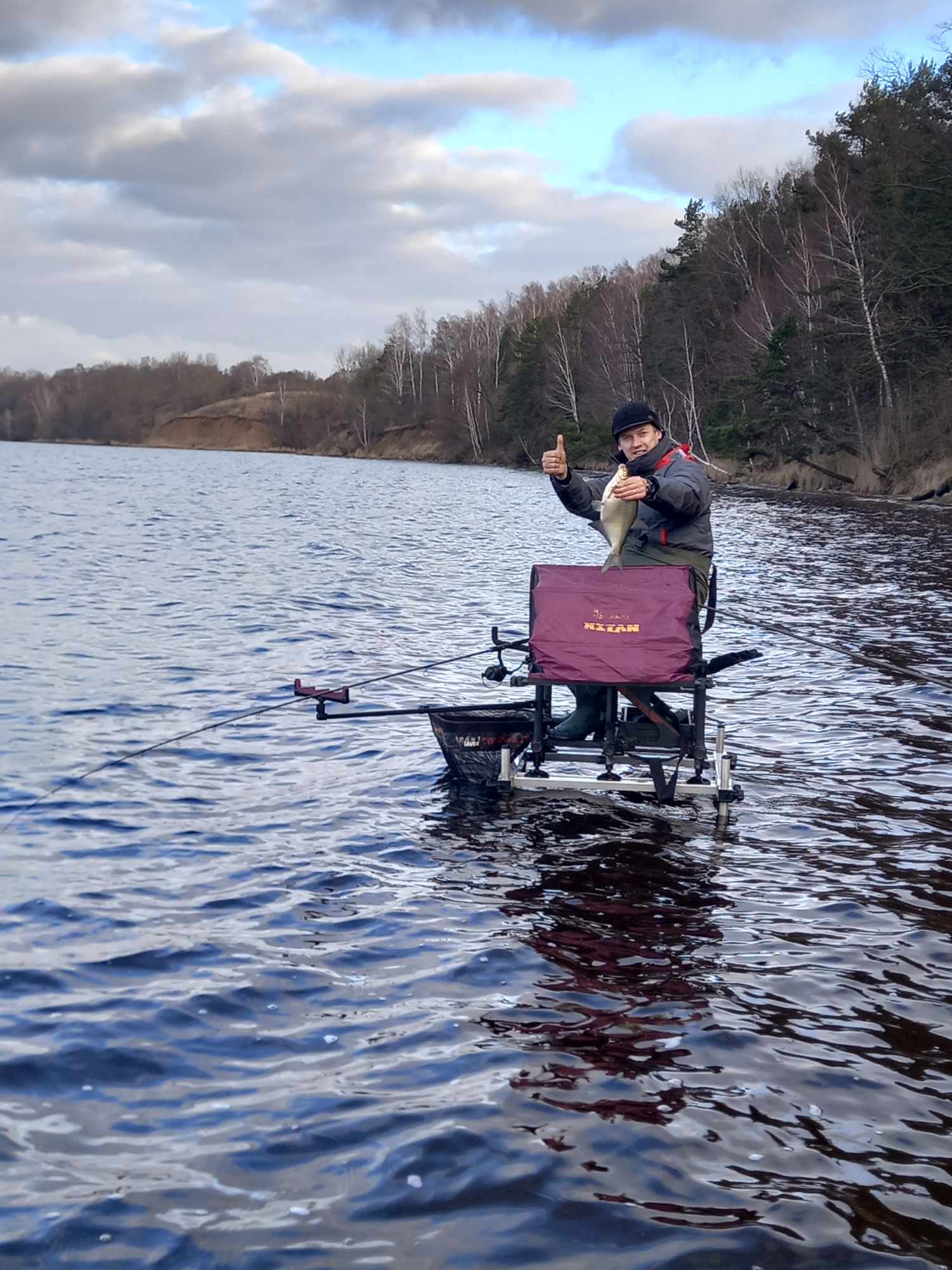 „Tuoj dar mus ir iškruš“, – sąmojinga ir lakia fraze banditišką mūsų šiandienos žvejybą apibūdino vienas didžiausių banditų Giedrius. Tiesa, jo turėta omeny prasidėjusi kruša, kuri surinko paskutinius šilumos trupinius, likusius po kovos su lietingu ir vėjuotu kovo rytu. Nesumeluosiu pasakęs, kad kur kas šviesesnės ir šiltesnės nuotaikos bei lūkesčiai buvo žvejybos pradžioj. Šįkart mūsų buvo visas ketvertas: tiesiai iš laidos filmavimo (rekomenduojame visiems ta proga pasižiūrėti naujausią „Šiandien kimba“ laidą) atskuodęs Giedrius, du brolių Švagerių (Aivaras ir aš) bei dzūkų dzūkas Ričardas. Kažkur už nugaros palikę Neveronis, trejetas mūsų lengvasvorių automobilių su visa žvejybine manta (prašalaičiui veikiausiai atrodytume kaip į Gariūnus išsiruošę prekeiviai) sugarmėjo prie svajingųjų Kauno marių tolių. Buvome lygiai šeštą, jau kiek prašvitus. Juokeliai šposeliai ir mes jau prie vandens. Šalta, vėjas „tiesiai į mordą“ (vėl to paties Giedriaus žodžiais tariant). Į mordą tai mordą, išgyvensim, kad tik žuvys kibtų. Jaukų ir masalų pasiūla klasikinė – tamsus apyskurdis jaukas, muslervės, pinkutės ir trūkliai. Pastarųjų galėjome nė nepirkti, mat, jų pridėtinė vertė šiandien buvo niekinė. Nemanykit, kad visa šia minorine preliudija ruošiu dirvą eiliniams pasiteisinimams. Nieko panašaus! Pirmi metimai ir iškart pirmi kibimai! Pačiam per nugarą perbėgo šiurpas (ne nuo šalčio), kai pirmu užmetimu sulaukiau išreikšto viršūnėlės linktelėjimo. Ne man jums pasakoti, kokiomis nuojautomis ima gyventi širdis, kai žvejys pirmu švystelėjimu parsitraukia nelaimėlę delninę kuoją. Dėkui Diev, šįkart nuo šio prakeiksmo visi sėkmingai išsisukom, bet viltys, didžiosios viltys ėmė augti geometrine progresija. Maža to, po lengvo užsižiopsojimo į kaimyną pamatęs vagiamą savo viršūnėlę ir suskubęs gaudyti nenaudėlį, pajuntu, kad anam gale dėdulė standartinis marių karšis (apie 1 kg.). Ir visai tai ketvirtu ar penktu metimu!!! Ričardas šventę mano kieme iškart palydi aštriu juokeliu ir grįžtam prie darbų. Laimei ar nelaimei, pagauti akimirkos žavesio paspartinam žirklučių darbą ir pagausinam gyvų masalų karpiniais šėryklų turinį (juk karšiai besočiai mėsėdžiai!). Gal tai būta lemtingos klaidos, o gal tiesiog besikeičiančio paros ciklo, bet pirmojo karšio pasekėjų reikėjo laukti ilgai ir visai kitu atstumu. Neatmestina, kad rytą ties priekrantės šlaitu besisukioję pavieniai karšiai tiesiog atsitraukė toliau. Apie tai detaliau galėtų papasakoti Ričardas, mat, jis smarkiai pasitolinęs distanciją artėjant popietei dar sugebėjo prikalbinti keletą puskaršių. Tuo tarpu likusi mūsų trijulė mažiau ar daugiau gyveno kuojų mums skiriamu dėmesiu. Grumdamiesi su visa šia nežinia ir „mordiniu“ vėju, galiausiai nugyvenome iki popietės. Reziumė ir galutinis rezultatas – krūvelė kuojų pramaišiui su keletu karšiokų. Beliktų pridėti, kad Dievo į medį nenuvarėm, džiaugiamės tuo, kad pavyko visai smagiai pažuvaut tokiu oru, per kurį dažnas laukan nosies išvis nekištų! Mes vis dėlto nugalėjome save, blogą orą ir dar šiek tiek įnoringai kimbančių žuvų! Be to, juk banditai niekada normalioj dienos šviesoj nesirodo!