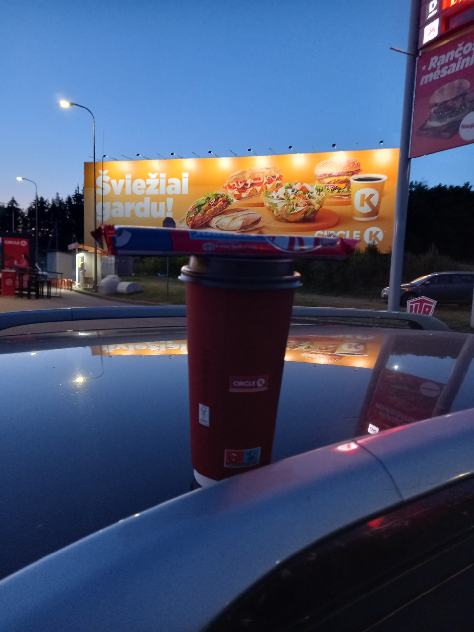 Kaip visada, pirmas sustojimas Grigiškių Circle K degalinėje pasikrauti jėgų kelionei – kavos puodelis ir truputis nuodėmingo saldaus šokolado. Nežinau kaip jūs, bet atėjo toks metas, kai žvejybos metu nebesinori net valgyti. Atrodo išbūni 8-10 valandų, bet puikiai pasikrauni energijos iš aplinkos ir maistas nėra būtinas. Mintis, gal čia gali būti dietos planas? 🙂