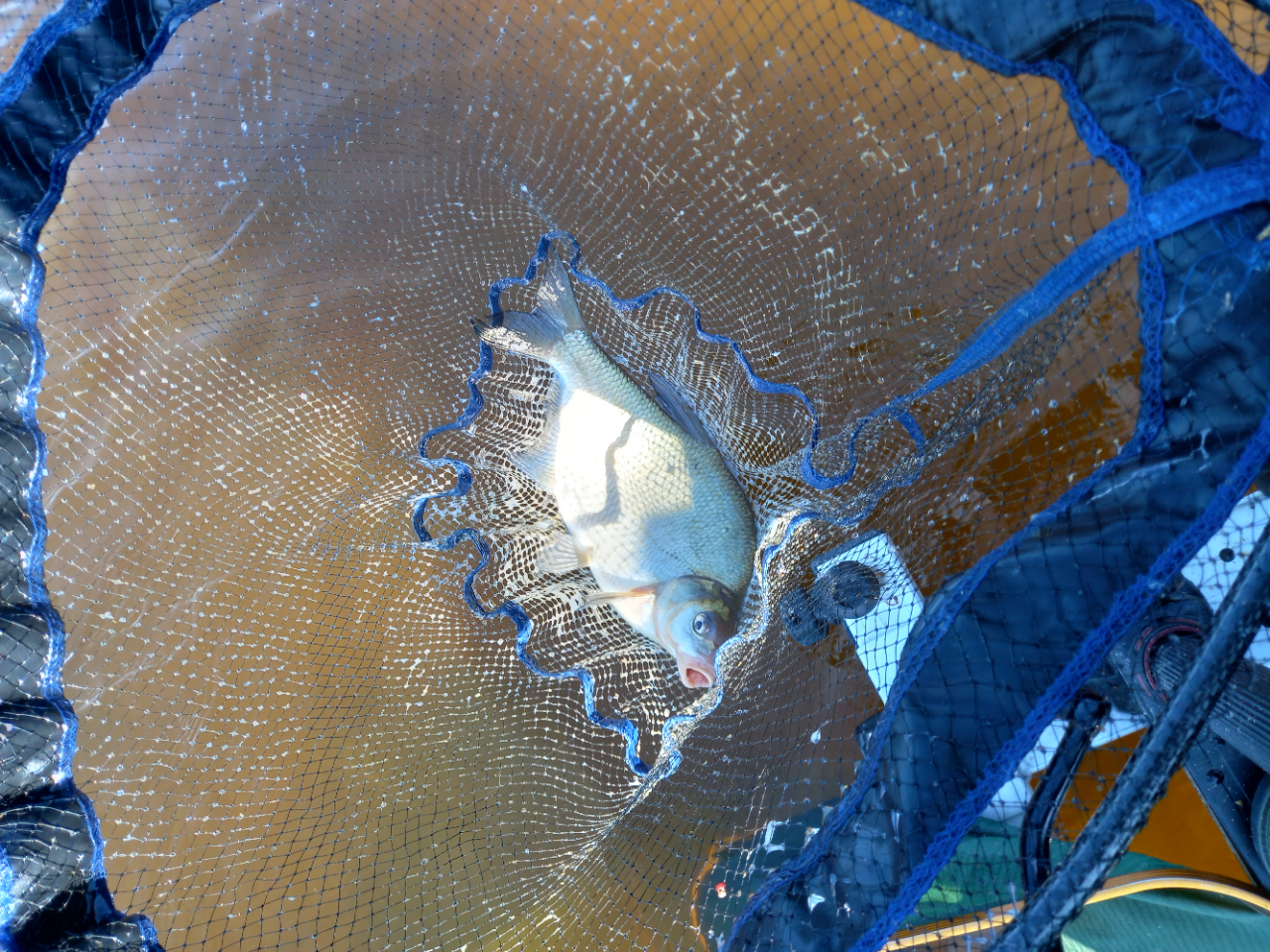 Pedanas puikiai gelbėja, kai aštri „brovkė” yra pasiekiama pasistant jį praktiškai ant jos krašto. Tai padeda sutaupyti laiko permetimams, žvejybinis atstumas sumažėja, todėl padidėja tempas ir tikslumas. Atlikus startinį užšėrimą, po 15-20 minučių pradedu su bonusiniu 2 kg karšiu. Veiksmas vyko visą dieną, žvejojau nuo 06:00 iki 12:30 val. Žuvis sukinėjosi aplink, bet reikėjo surasti raktą, kaip ją suaktyvinti – pagauni 2-3 karšiukus ir ramuma arba superatsargūs kibimai. Tada pradedi eksperimentus: pavadžių storis ir ilgis, kablių dydis, kas ant kablio, šeryklų dydis, kas padedama į tašką ir t.t. Suma sumarum nuostabi. Žūklė su puikiu laimikiu! Kadangi buvau vienas, nuotraukos išėjo tobulos 🙂