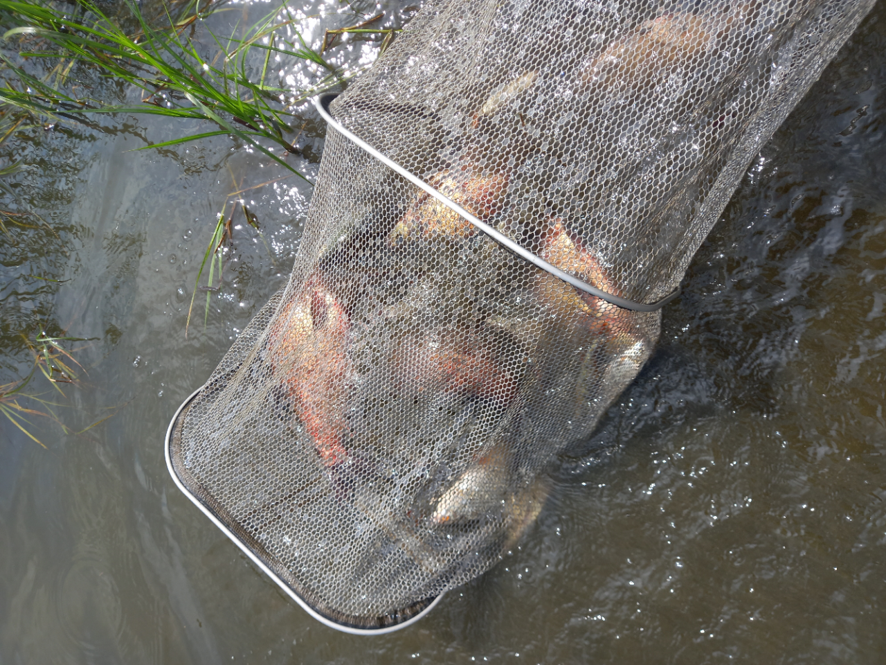 Pradėti nusprendžiau antrame taške, nes prieš kelias savaites panašiu atstumu pavyko surasti gan gražių žiobrių ir sulaukti bonusinio karšiuko. Vertėtų paminėti, kad visos distancijos buvo pasirinktos ant kriauklių. Nemeluosiu, man tai gan nauja patirtis. Dar prieš kelis mėnesius šventai tikėjau, kad reikia ieškoti perėjimo iš smėlio į kriaukles, bet treniruotės parodė, kad karšis maitinasi būtent kriauklėmis nukloto dugno ruože. Kriauklės ir ploni pavadėliai – rezultatas turbūt nesunkiai nuspėjamas, varžybose šios problemos pavyko išvengti. Gaudžiau su 0,117 storio valu, kuris beveik tobulai atliko savo darbą. Gaudant ties 25 metrais, sėkmingai užteko 60 gr. šėryklos su ragais, o atitinkamai ties 31 metru – 80 gr. Buvau nusprendęs pirmam taškui skirti 1,5 valandos (tokios taktikos ir laikausi). Per pirmą valandą ten pavyko pagauti tik 4 žuvis, tačiau antros valandos pradžioje pasirodė ir pirmasis karšiukas, todėl nusprendžiau pirmame taške luktelti papildomą pusvalandį.