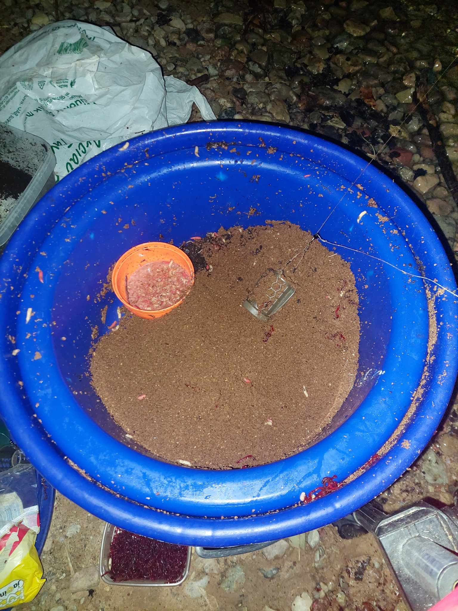 Šįkart bandžiau Flagman Grand jaukus. Asmeniškai nebuvau jų bandęs, vieną iš kombinacijų pasiūlė kolegos Maišiau Grand sport ir Grand bream chocolate. Smulki frakcija, ruda spalva ir šokolado kvapas, manau, visai tinkamas derinys šiam laikui. Kas bent kiek yra girdėjęs apie Flagman jaukus, tas žino, kad šio gamintojo jaukai išsiskiria itin intensyviu jauku. Kiek kebliau buvo parinkti vandens proporcijas, tinkamai jauką sudrėkinti. Pildami iškart dideles dozes, galite ne juokais prisižaisti ir perdrėkinti jauką. Aš pats kitą kartą stengčiausi pasiruošti jauką iš anksto, išlaikydamas ilgesnes pauzes tarp drėkinimų. Bet painiavos painiavomis, o žuvis vis tik kibo. Žvejota ~5 metrų gylyje. Karpytos muslervės ir sliekai. Ant kabliuko geriausiai jautėsi musės lervos su trūkliais.