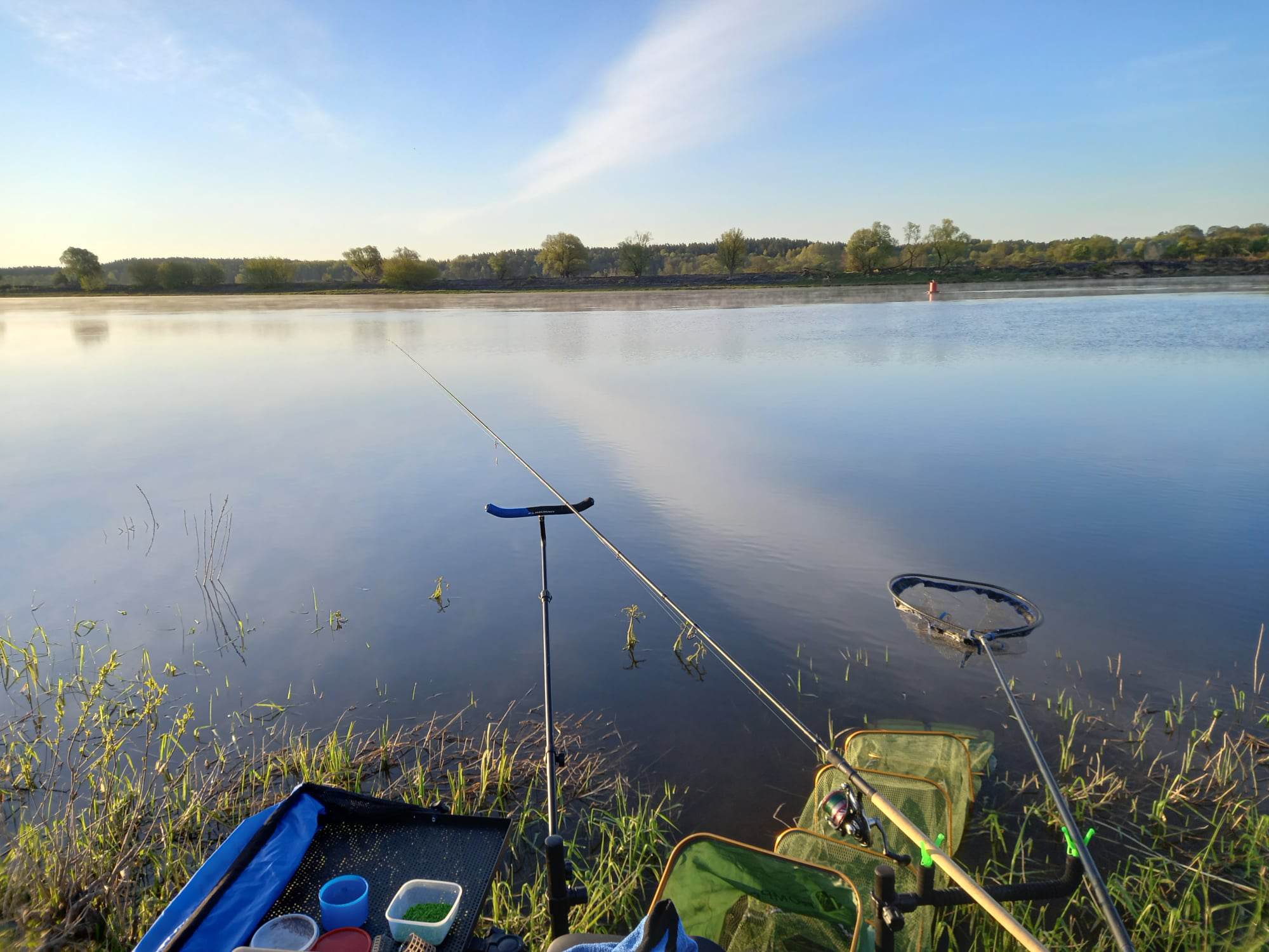 Šį kartą vedinas vietinio patyrusio žvejo nukeliavau išbandyti gerai žinomos vietos, kurioje, anot jo, puikiai pavasarį kimba karšiai. Vieta yra žemiau Jurbarko, pasienio ruože. Atvykome apie 06:30, žvejų vienas kitas, bet mūsų vieta laisva. Prasiskenavęs dugną, randu įdomų tašką už 55 m tarp dviejų parandžių ir pradedu jaukinimą. Po penkių pašarinių keliauja ir pirmoji šėrykla su paruoštu skanėstu – dzykeliais ir matyliukais. Po gerų 15 minučių į mano pastangas sureaguoja pirmoji aukšlė. Jos nesiliauja mane atakuoti. Maža to, vėliau prie jų prisijungia ir pūgžliai. Supratęs, kad nieko doro nebus, pereinu į tolimą distanciją už pagrindinės parandės (atstumas apie 67 m). Po keleto minučių pagaunu pirmą mekšriuką. Na, pagalvojau, dabar tai jau prasidės, bet neprasidėjo 🙂 Visa žvejyba buvo kova su pūgžliais ir aukšlėmis. Išbandytos įvairiausios kombinacijos ant kablio, įvairūs pavadėliai, jaukas skanintas gyvais, karpytais ir t.t., bet summa summarum – nieko rimto pagauti nepavyko. Svarbu, kad pavyko praplėsti žinias apie Nemuno vietas. Na ir laikas praleistas smagiai, nors rytinis vėjas ir rytinis šaltukas buvo pikti, bet, pasirinkus tinkamą aprangą, tai nebuvo problema. Nė žvyno, ir kaip sakoma, kas mūsų nenugali, padaro mus stipresnius. Yra ką pasidėti į savo žvejo bagažą.
