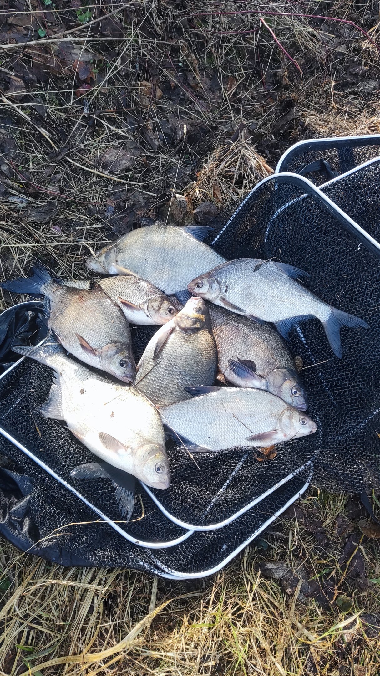 Na o dabar šiek tiek taktinių niuansų. Atrastos dvi kombinacijos. Pirmoji iš jų artimai distancijai ant grįžtamos srovės – pusiau pergnybtas antro numerio sliekas, uždarytas 1/2 baltomis musės lervomis. Šitą kombinaciją ne visi, bet rijo godžiai, keli, kaip sakoma, iki „šiknos“. Vienam teko nutraukti pavadėlį, nes nepavyko kabliuko pasiekti net su atkabekliu. Savo ruožtu tolimoj distancijoj, beveik prie pat pagrindinės srovės veikė kita kombinacija – 5 trūkliai, saugomi 1/2 baltų musės lervų. Šėryklas šįkart pasirinkau su ragais ir sveriančias 90–100 gramų. Kodėl su ragais? Reikalas tas, kad būta įdomaus fenomeno, kas 15–30min srovė gana stipriai pagreitėdavo. Prabėga 5 minutės ir vėl ramu. Dėl šios priežasties norėjau stabilumo, kurį tokiomis sąlygomis galėjo užtikrinti sunkesnės šėryklos su ragais. Į jauką kartas nuo karto karpiau trūklių, musės lervų ir pinkučių. Mano nuostabai, abi distancijos veikė neblogai. Kiek geriau, 60/40 santykiu, sakyčiau, veikė artimas taškas. Gaudžiau 0,14 storio ir 1 m (ir iš akies kiek daugiau) Replo AccuPower pavadėliais. Tądien nepastebėjau jokios didesnės pavadėlio storio įtakos kibimui. Kabliukai – vienas itin mažas, kitas normalaus, vasarinio dydžio 🙂