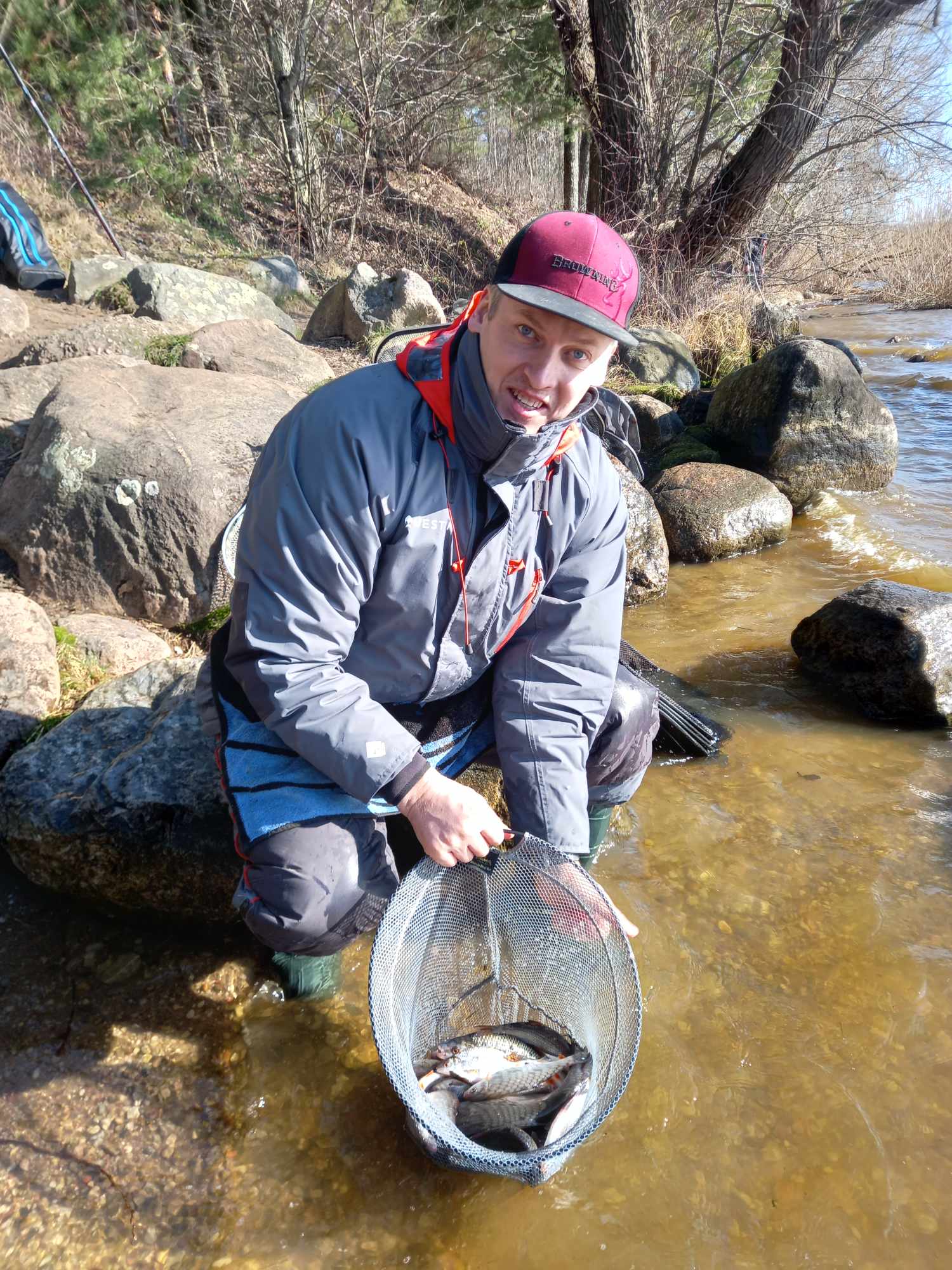Neįmanoma turbūt rasti tinkamesnio žodžio, kuris geriau perteiktų pirmosios pavasarinės atviro vandens sezono žūklės emocijas. Nors gyvenimas kai kam jau priskaičiavo beveik keturiasdešimt metų, tačiau kiekviena tokia žūklė po ilgesnio laiko tarpo (šiuo atveju po žiemos) kaskart užburia neapsakomu jausmu, tarsi žvejotum pirmą kartą apskritai. Vos tik darbų savaitė į pabaigą, iškart užgula mintys apie savaitgalio žygį prie vandens. Šiuosyk marias sutarėme šturmuoti dviese su Ričardu. Iš vakaro garbės ratas iki žūklės parduotuvės masalų, jaukų ir dar šio bei to, visos žvejybinės mantos suvertimas prie laukujų durų ir pernelyg dažnas dirsčiojimas į rytojaus sinoptikų prognozes. Ričardo Toyota į vieną Pavilnio kiemų įsuka lygiai pusę penkių. Valiūkiški pasisveikinimai/ pašūkaliojimai ir pirmyn. Mintis pabandyti laimę ties Kapitoniškėmis, todėl privalu pasiskubinti, kad pasisektų gauti bent vieną laisvesnį ruoželį prie vandens. Didelių vilčių nepuoselėjam, visgi dar ankstyvas pavasaris, tad būtų smagu, kad bent keletas paradinių žuveliokų teiktųsi pasisveikinti su mumis. Masalų arsenale šįsyk dominuoja musės lervos, dar šiek tiek pinkučių ir trūklių. Jaukai, bent jau mano, tai pats tikriausias likučių kratinys – šiek tiek akcijinio aktyvaus VDE, žiūpsnis geltono Champion Feed ir dar truputis Copros melasos. Ričardas savo ruožtu būsimus restorano klientus buvo pasiruošęs pavaišinti kur kas subtiliau. Pakeliui aptarę galimas ir negalimas šios dienos žūklės strategijas, galiausiai įsukam į visiems gerai žinomą keliuką ties Kapitoniškėms. Nors žvejų mašinų aikštelėje ne viena ir ne dvi, tačiau liekame maloniai nustebinti radę net dvi laisvas kranto proskynas. Suverčiam greitomis į vieną iš jų savo mantą, kad kam nors nekiltų pagundą užimtą ją anksčiau mūsų. Atvažiavome, galima sakyti, pačiu laiku, nes netrukus ėmė rinktis daugiau vietos ieškančių žvejų. Tad, jei būtume čia pasirodę pusvalandžiu vėliau, vietos būtų tekę ieškoti mums patiems. Pro didžiulius priekrantės akmenis sutįsę ir surentę savo pastolius galiausiai švystelime svarelius tolyn į marias ieškoti dugno anomalijų. Ričardas nusprendžia pasirinkti kone 80 metrų distanciją, na o aš, radęs kietesnio ir minkštesnio dugno sandūrą, su savo rite priskaičiuoju kiek virš šešiasdešimtis metrų. Nors abu susėdome petys petin, tačiau bene 20 metrų atstumas tarp taškų turėtų padėti išvengti nereikalingos konkurencijos. Pirminis pajaukinimas, pirmosios musės lervos ant kabliuko ir pirmyn į šviesią ateitį. Pirmasis pusvalandis, kaip ir buvo galima nuspėti, prabėgo ramiai belūkuriuojant. Didelės gyvybės nebuvo matyti ir aplink, vos vienas kitas žvejas staigesniu meškerės mostu signalizuodavo apie žuvų pasiteiravimus. Galiausiai pirmieji atsargūs linktelėjimai ir krantan su Ričardu pradedame parkuoti delninius karšiukus, plakius ir kuojas. Veiksni tik musės lerva. Be to, realizacijai pagerinti kiek pasitrumpiname pavadžius, mat, dėl žuvų atsargumo ir nejuokingos žvejybinės distancijos kibimo beveik nematyti. Tokios taktinės rokiruotės netrunka duoti rezultatų. Prabėgus pirmai valandai pajuntame, kad musės lervų akcijos baigėsi ir atėjo laikas trūkliams. Kabini ant kablio tik lervas – tyla, kabini trūklius – viršūnėlė atgyja. Kaitaliodami masalus prišnekinam ir po vieną įskaitinį karšioką (nors, tiesą sakant, ta įskaita labai ir labai ribinė). Prabėga dar viena valanda ir savo vertės nebetenka trūkliai, laikas grįžti prie musės lervų. Įsidienojus ir pakilus vėjui (kuris nemaloniai landžiojo po apykakles), bent jau mano taške ėmė dominuoti kuojos. Šiek tiek sausesnio jauko į šėryklą, dvi baltos lervos, metimas į tašką, trys minutės, kibimas ir delninė kuoja keliauja krantan. Priešingai nei Ričardas, aš šįkart vengiau masyvaus gyvų masalų padavimo į tašką (o Ričardas nuolat darbavosi žirklutėmis). Be to, bijodamas ankstyvo pavasario realijų, nepersistengiau naudodamas jauką apskritai. Kitaip sakant, gaudyta laikantis kiek skirtingos taktikos. Ar šiuos skirtumus atspindėjo galutinis rezultatas? Galima sakyti, kad taip. Ričardo darbo mėsininkystės sektoriuje patirtis išvirto papildomu penketu karšiukų / plakių siete (o pas mane daugiau kuojų). Būta momento, kai Ričardas triskart paeiliui buvo beprišnekinąs kažką rimtesnio, bet dievai šįkart buvo pernelyg rūstūs ir griežtai uždraudė šioms žuvims pasirodyti krante. Spėjome, kad tai galėjo būti kiek rimtesni dėdulės karšiai. Kažkokį kelmo brolį buvau pakabinęs ir aš, tačiau kontaktas su šia žuvimi buvo labai trumpas. Galimas daiktas, kad sumokėjome kainą už pernelyg mažus kabliukus (darbavomės 14 ir 16 nr kabliukais). Vis dėlto šiukštu nevalia skųstis. Sezono pradžios žūklės pavyko su kaupu – kibimų daug, gerų emocijų dar daugiau. Visos žuvys papozavusios sėkmingai iškeliavo namo, o mudu į savo šimtą kilometrų Vilniaus kaminų link. Smagu, labai smagu, labai labai smagu! Jau dabar nekantru laukti kitos žvejybos.