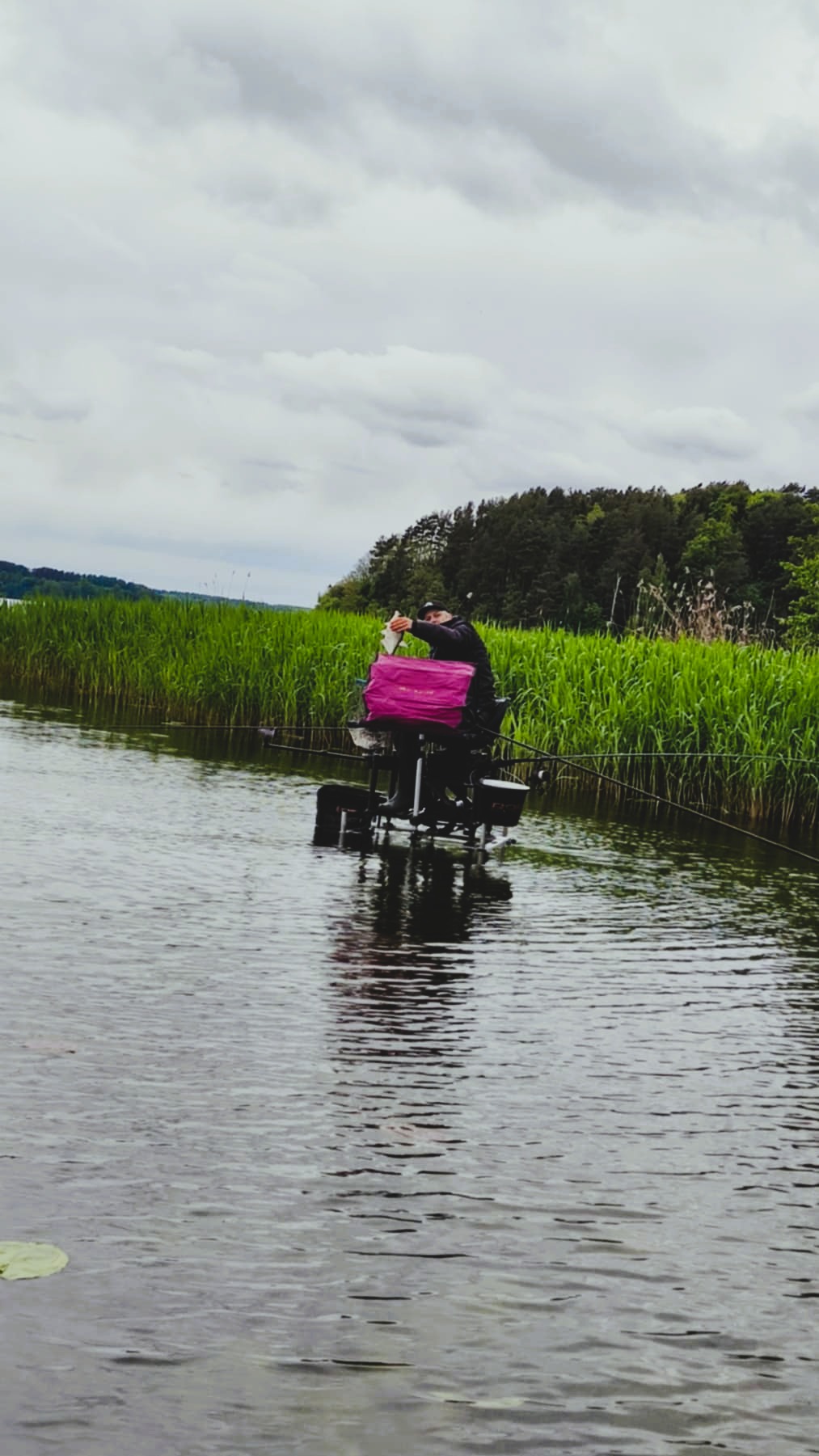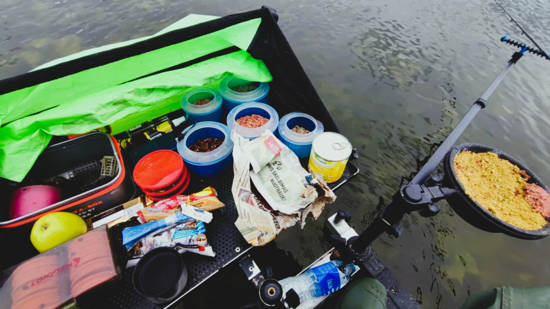 Kadangi Simono buvo mintyta apie karosus, jo jauko receptūra šiandien sukasi aplink marcipaninę tematiką. Aš savo ruožtu lieku prie klasikos ir maišau laiko išbandytus šviesius ir sočius jaukus. Gyvųjų masalų bazė – tradicinė ir niekam nebeįdomi, tad pagrindiniai žūklės akcentai tikrai ne čia. Susirenčiam savo pastolius, pasistatom sostus, susinešam visus rakandus ir pradedam dugno reljefo analizę. Priekrantės liniją okupavęs lelijų ruožas išduoda, kad pirmoji parandė neturėtų būti labai toli. Neįspūdingas gylis (bet ir ne visiškas sėklius) leidžia tikėtis ne tik karšėkų, bet gal ir vieno kito karoso. Be to, apsunkusias mintis prašviesina tai vienur, tai kitur paviršiuje pasirodanti žuvis. Galiausiai aš priskaičiuoju ~47 metrus, susiradęs ruoželį prieš „tarką“ ir parandėlę, o Simonas ta pačia logika mąstydamas stoja kiek arčiau.