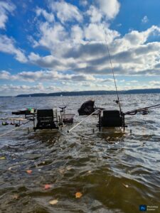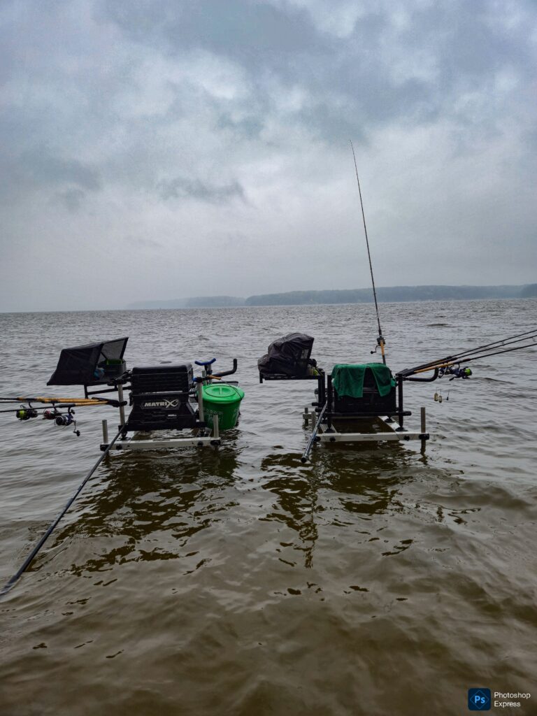 Toks gyvenimas tęsėsi bene visas 5 valandas, nors, tiesa, ir būta trumpų pertraukų. Bėda tik viena – visiškas miręs Lauryno taškas. Atsisuku į jį ir sakau – „Imk sunkesnę artileriją ir eik į 66 metrus.“ Greitas pasijaukinimas ir ką jūs manot? Jau trečiu metimu atsiliepė ponas karšis! Po to antras, trečias, tik va – keli iš jų nusipurto ir vėl viskas aprimsta. Taip nepastebėtos prabėga visos 5 varžybų valandos. Aš dieną užbaigiau su 25 karšiais, Laurynas – su 5. Svarstyklės priskaičiuoja daugiau nei 18 kg žuvies, kurios pakanka, jei neklystu, 6-ai vietai zonoje užimti. Gaila, kad po pirmos dienos nepriėmėme sprendimo atsisakyti artimos distancijos (apie 40+ m), nes, panašu, kad trečią dieną žuvis nuo „presingo“ traukėsi tolyn. Mūsų pastebėjimas – ryte žuvis buvo aktyviausia, tad tikėtina, kad ir kolega, gaudydamas iš toliau, būtų surinkęs daugiau nei 5 karšius. Tuo tarpu draugai, kurie abu nusprendė gaudyti iš toli, išsikapstė ir sekmadienį zonoje liko antri – džiugu už juos!