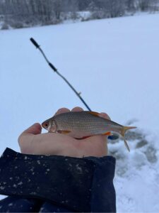Reikalas tas, kad visa mano šiandienos žvejyba vos kelios valandos – kaip sakoma, tik kirminui nuraminti. Kaip ten bebūtų, džiaugiamės ir tuo, ką turim. Nulėkta ant ledo, pasėdėta ir pagauta žuveliokų. Belieka lukterėti, kol rimčiau užtrauks didesnius vandenis – tada, tikiuosi, ir kalbos, ir veiksmo bus daugiau.