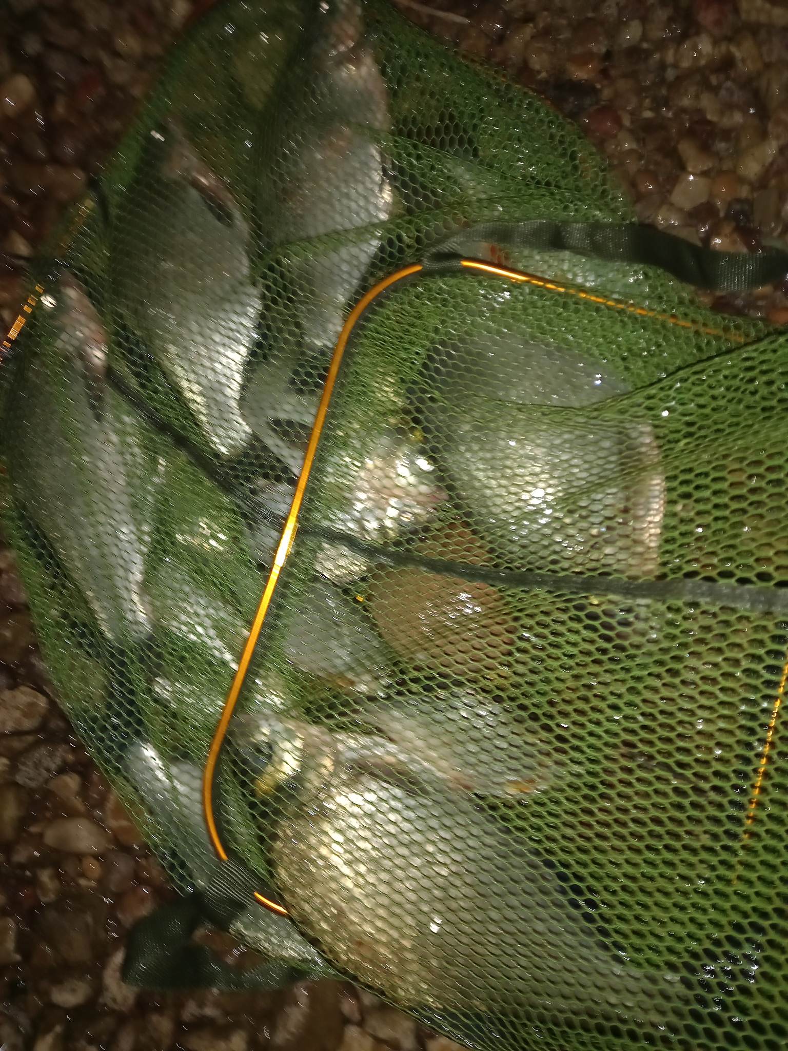 Po sunkios ir nerezultatyvios žvejybos Nemune teko atsiprašyti Kauno marių 🙂 Sutarėme su Giedriumi startuoti vakarinei žūklei, bet, likus keliolikai kilometrų iki sutarto taško, Giedrius informavo, kad jis nebegali prisijungti. Kadangi dar buvau kelyje ir turėjau 2 minutes pamąstyti, greitai nusprendžiau pabandyti varžybų tašką. Atvykęs prie vandens sutinku vieną žvejį, kuris jau buvo pagavęs vieną karšiuką, o man besiruošiant ištraukė dar vieną. Visa tai nuteikė pozityviai. Kadangi vieta žinoma, ilgai neužtrukau, susiradau parandę ir pradėjau jaukintis tašką. Po gerų 10 minučių pasirodė pirmieji kibimai ir netrukus pirmas nedidelis karšiukas atkeliavo į krantą. Kaip Giedrius minėjo paskutiniame savo reportaže, kibimai karšių užėjus didesniam būreliui, kas 1-1,5 valandos. Tarp jų kuojytės ir nedideli karšiukai arba jo didenybė Pūgžlys 🙂 Norint pagauti karšiokus tekdavo padirbėti ieškant tinkamos masalo kombinacijos, pavadėlio ilgio ir storio bei šėryklos dydžio. Vienu metu buvo matyti, kad žuvis yra pakilusi nuo dugno, tad teko mąstyti, kaip ją nuleisti ant dugno. Viskas pavyko neblogai, tik, deja kaip visada, didžiausios žuvys liko neištrauktos. Iš viso pagauta apie 10 karšiukų, iš kurių keletas siekė apie 1 kg, o visi kiti standartiniai jaunesnieji broliai.