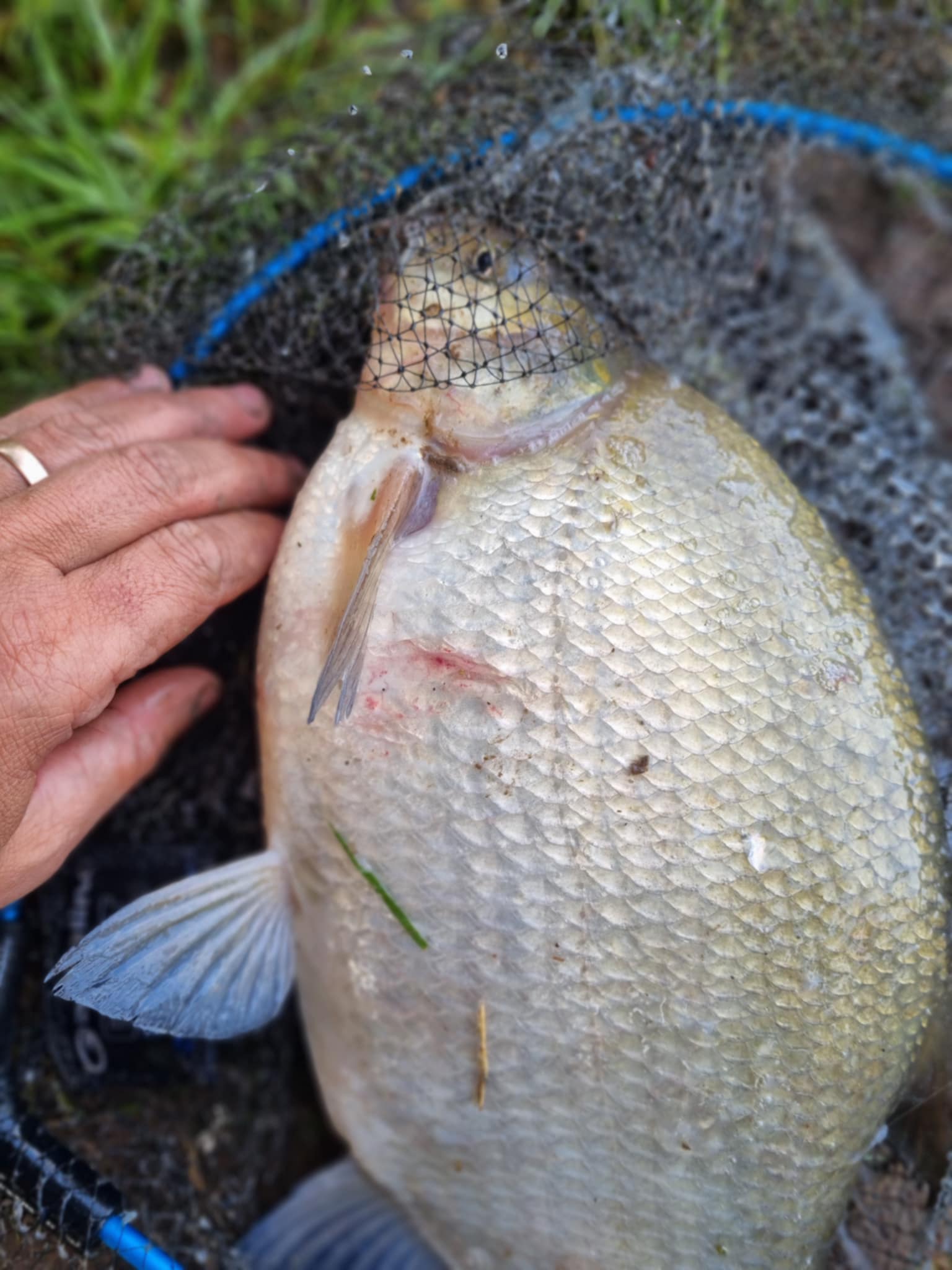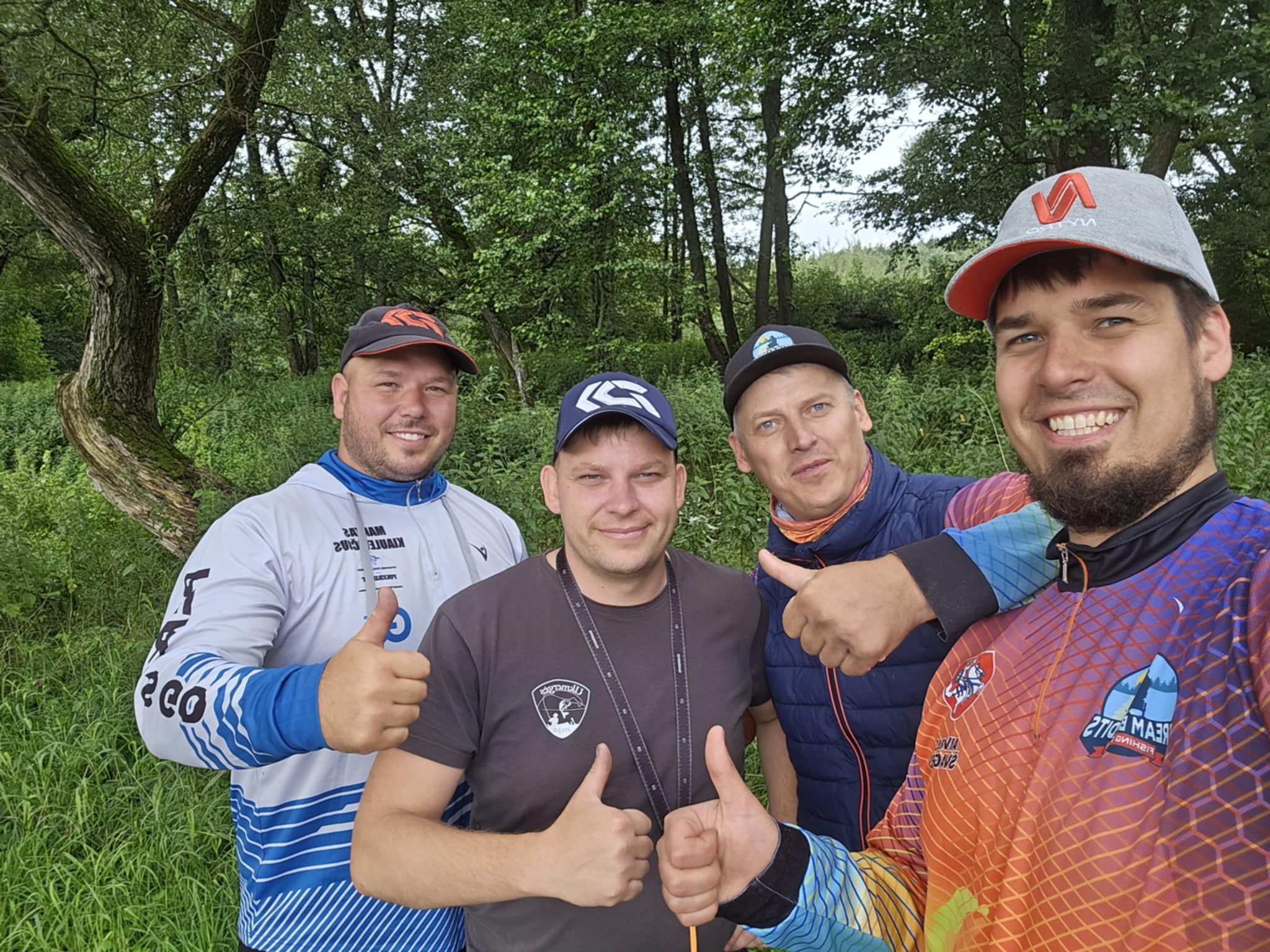 Žūklei jau artėjant prie pabaigos, prie mūsų visai netikėtai atėjo pasilabinti klubo bičiulis Edgaras (kurio greitu metu laukia dvikova su Augustu 1×1 lygoje) su savo kolega Mantu. Pasirodo, jų žvejota kaimynystėje, tačiau ten bendras žuvies kiekis visai kitas. Draugiškai sutariame užleisti savąją karšingesnę vietą, kadangi mums jau laikas namo. Kaip visada, tokius susitikimus palydi draugiškas pašnekesys, smagūs juokeliai ir bendra nuotrauka prisiminimui. Edgaro Birštono karšiams gaudyti naudota šiek tiek kitokia taktika – kitur pasirinkti žvejybiniai taškai, bet gal apie tai jis pats kada papasakos atskiru straipsniu.