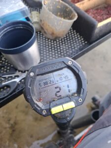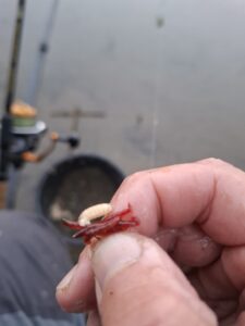 Susitempęs žaislus pastebiu, kad vandens lygis mariose nejuokingai nukritęs – nuo standartinės vietos viską tenka pasinešti iki vandens kokius 4–5 metrus. Greitai ant kuoliukų atsimatuoju 50 metrų atstumą, pora metimų dugnui patikrinti ir klipsas ties 45 metrais. Dugną pasirenku truputį lygesnį ir minkštesnį – prieš kriauklyną. Jaukas, kaip visada, VDE – šį kartą paruoštas iš vakaro (nuotraukoje galėsite pamatyti visus naudotus komponentus).