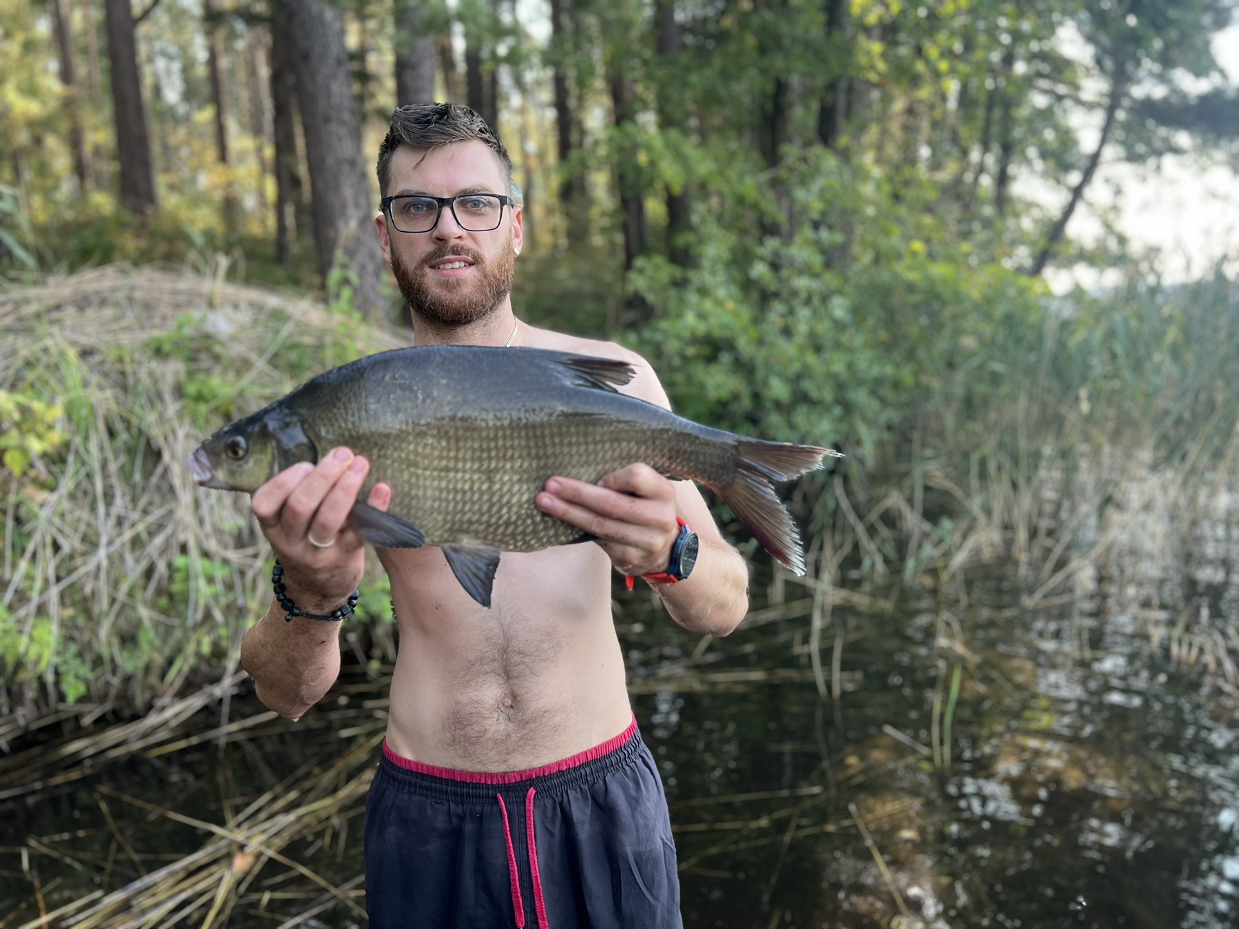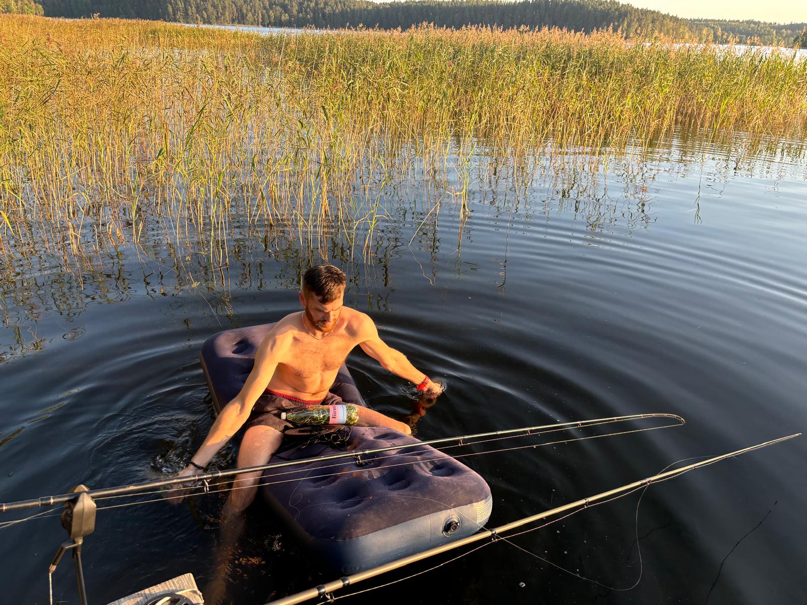Kartą stovyklaudamas su šeima prie Siesarčio ežero surezgiau mintį čia sugrįžti ir imtis plano – kelių parų žvejybos, jaukinant iš augalinės kilmės prievilu – daugiausia žirniais, kviečiais ir kukurūzais. Ta diena netruko ateiti (2024-09-05). Manta sukrauta, o prognozuojami orai iki pat savaitės pabaigos fantastiniai (~26C). Ko ne vasara?! Bus puiki žvejyba ir stovyklavimas – pačios tikriausios vasaros išlydėtuvės (kaip ne kaip, jau ruduo). Pakeliui sustota pasiimti užsakytų 7kg žirnių, 1kg kviečių ir 2kg kukurūzų. Susiruošę ir susikrovę viską, ko gali prireikti trims paroms, su bičiuliais išvykome iš Vilniaus ir jau ~16h buvome vietoje. Kadangi šiuo atveju atvykome visas būrys mūsų (ne tik šeima), įsikūrimo darbus palikau kolegoms, o aš pats iš karto ėmiausi žvejybos reikalų – pasižadėjau gi visiems išvirti žuvienę, o iš kirvio jos padaryti nelabai moku…