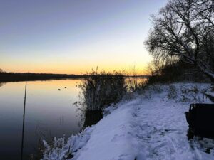 Kadangi meteorologinės sąlygos vis dar leidžia pamojuoti prie vandens dugnine meškere, atsiradus pirmai galimybei išsmunku į žvejybą! Šį kartą iššūkis nejuokingas – gausus sniegas iš vakaro ir įkyrios mintys spjauti į visa tai. Vis dėlto išaušta už vakarą protingesnis rytas ir viduje užverda noras žvejoti. Nepabūgstu sudėtingų eismo sąlygų ir patraukiu keliu Kaunas-Rusnė! Galima sakyti, 200 km sniegu nukloto kelio, bet kai žvejybinis virusas nepagydomas, niekas negali sustabdyti!