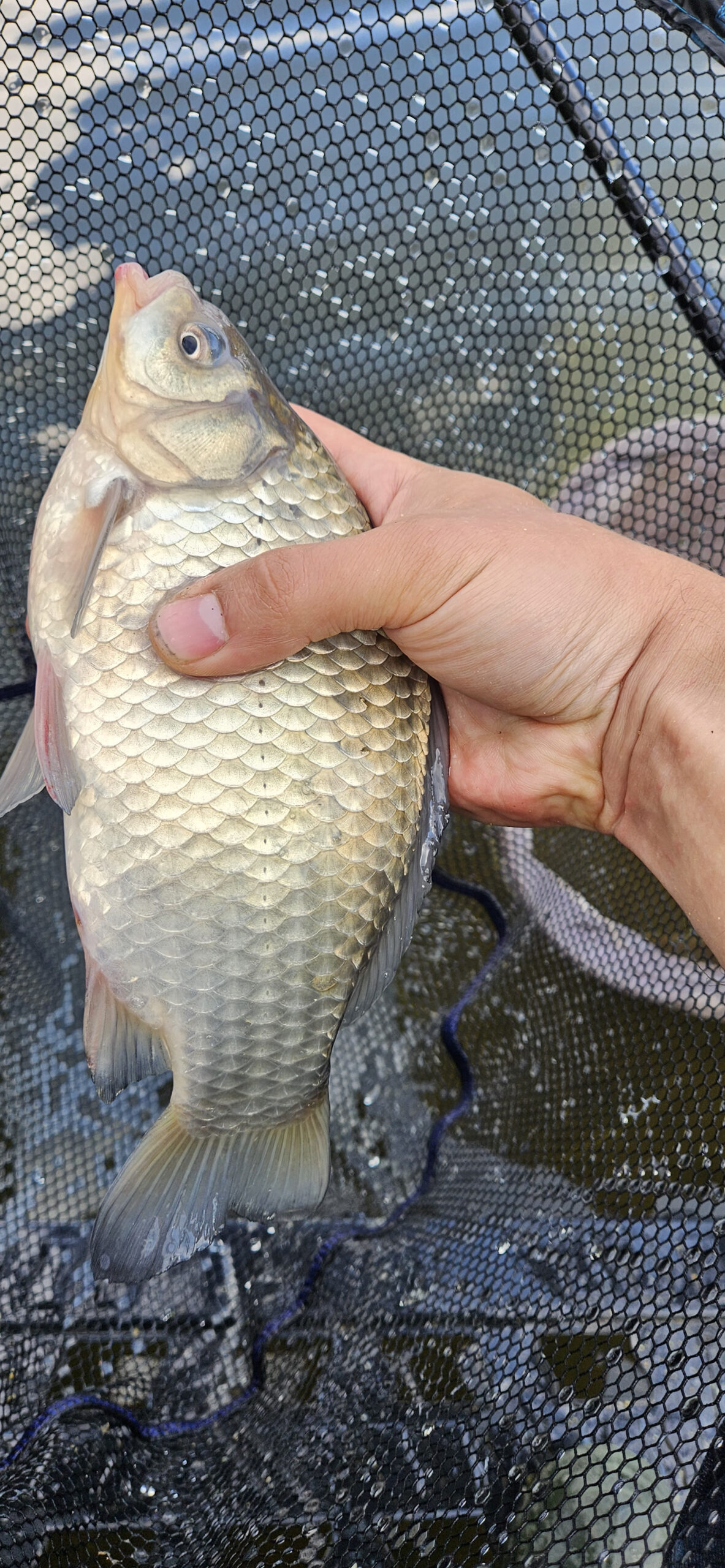 Vis dėlto po pirmos valandos pradėjau įtarinėti save, kad pernelyg nerūpestingai parinkau jauko kombinaciją. Per tą laiką sulaukiau tik poros kibimų, nė iš tolo nepanašių į aštrias karosų atakas. Kadangi startavau su 0,16 mm pavadėliu ir 10 nr. kabliuku, nusprendžiau kiek palengvinti sistemą (0,12 mm pavadėlis, 12 nr. kabliukas). Ir ką jūs manot? Atsako ilgai laukti nereikėjo. Pirmiausia prasidėjo labai įdomūs kibimai. Ant kabliuko dėmesio sulaukė kukurūzai. Buvo tikrinami mano refleksai – atrodė, kad dar akimirka ir reikia kirsti, bet galop viskas nurimdavo. Reikalai pasitaisė pakeitus masalą į nedidelį gabaliuką slieko ir dvi musės lervas – viskas kardinaliai pasikeitė į gerąją pusę. Ta proga po pirmo užmetimo kažkas nusprendė sulaužyti mano meškerykotį. Pakertu ir jaučiu, kad aname gale jis – Skirvytės karosas. Jis išduoda save atkakliu priešinimusi ir valo tempimu pasroviui į šoną. Tai tikrai ne karšis, o mano išsvajotas karosas. Kelios akimirkos ir pirmas šiandienos karosas graibšte! Po ne ilgos valandėlės pirmuoju pasekė ir antras karosas, ir trečias, ir….