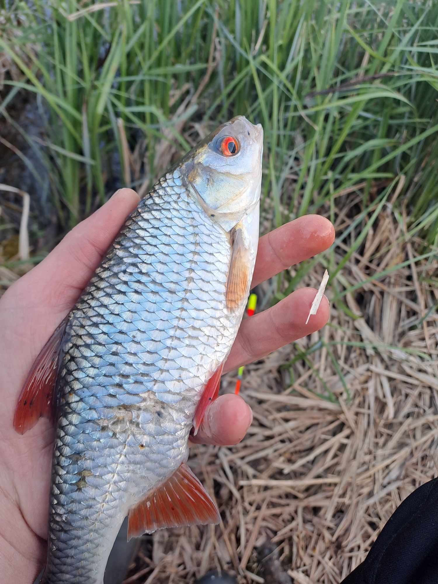 Orams vėl sušilus ir šiek tiek nusistovėjus, išlėkiau į trumpą lynų paiešką. Vietoje atsidūriau apie 18:30. Greitai užsimakalojau jaukus, radau švarų tarpelį tarp žolių ir lelijų, padariau 6 rutulius, į kuriuos įdėjau šiek tiek konservuotų kukurūzų ir viską greitomis sumečiau į taškelį. Po pusvalandžio pasirodė pirmieji šaukliai – visai padorios kuojos. Dar po pusvalandžio ant kabliuko užsivėrė pirmas rimtesnis sportininkas – lynas, po geros kovos atsidūręs graibšte. Atsiranda viltis, kad gal atsiras šio pirmojo šauklio pasekėjų.