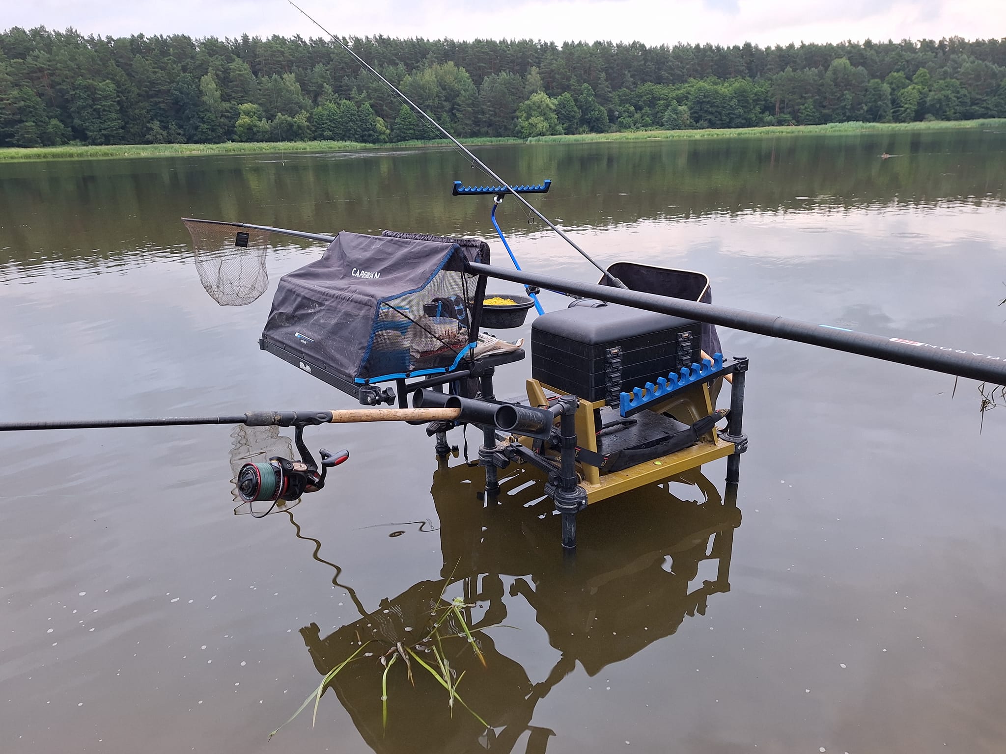 Išsirenkame vietą ir ruošiamės startuoti. Pasirinkau dvi distancijas. Viena, kaip ir visad, rezervinė, kurios žvejybos eigoje ir neprireikė. Pradinis jaukinimas visiškai be gyvų masalų. Praėjus pusvalandžiui, pradėjau po truputį įtraukti į jaukinimo bazę tai vienus tai kitus gyvus masalus. Ši taktika pasiteisino, nes į tašką „atsistojo“ solidūs karšiai. Kibimai galingi, su niekuo nesumaišysi tokių karšinių kibimų – atmetimas ir vėl užlenkimas. Deja, ne visus kibimus pavyko realizuoti, ne visus pavyko ištraukti į krantą. Svarbu, kad treniruotė pavyko, atstumai išsiaiškinti, masalo kombinacijos taip pat. Galima bus drąsiai kitą šeštadienį vykti į šį kurortinį miestelį ir varžytis su kolegomis bendraminčiais.