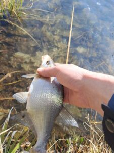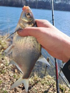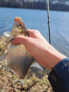 Šeštadienį kilo mintis patikrinti vieną ežeriuką, kurio pavasarį dar niekad neteko aplankyti. Prie vandens atsidūriau 10:00, o meškeres sumečiau 11:00. Pirmajai meškerei pasirinkau 4,5m gylį ir 32m distanciją, o antrajai – šiek tiek toliau ir giliau. Tas šiek tiek tai 6 metrai. Po startinio užjaukinimo sekė gerų 30 minučių tyla ir ramybė. Galvą pradėjo slėgti mintys, kad šiandien galiu likti basas – nejaugi net kuojos nekibs?