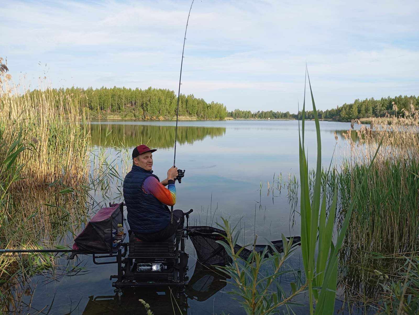 Taip gal visas ryto valandas ir būčiau pragyvenęs, jei ne kažkieno „labas rytas“ už nugaros. Kelias rytinio miego valandas į pliurpalus prie vandens nusprendžia iškeisti Ramūnas. Iškart pastebiu kreivą jo žvilgsnį, kai eilinįsyk švysteliu šėryklėlę užjaukinto taško link. Pasak Ramūno, geriau jau būtų bandyti kitą proskyną – ten rimtesni gyliai arčiau, o ir kažkokio pažįstamo kažkada porinta, kad begaudant karpius yra papuolęs ir vienas kitas dėdulė karšis. Ką gi, negi neklausysi protingesnio patarimų. Juoba Ramūnas pasiūlo ir taksi paslaugas. Maniškė Audi nors ir „quatrinė“, tačiau nedrįstu važiuoti molingu, provėžuotu ir šlapiu keliu. Tačiau yra tokių, kuriems tokie keliai nebaisūs. Sumetam greitomis į Ramūno miniveną visą mano turtą ir pirmyn į šviesų rytojų! Deja, šviesus rytojus turėjo kitokį požiūrį į tokius mūsų planus! Po sėkmingai pravažiuotų 50 metrų dar sėkmingiau įklimpstam į šaltinio užpiltas provėžas. Ką gi, kas mūsų nenugali, padaro mus stipresnius (šiuokart fiziškai). Nusitįsiame likusią kelio atkarpą mantą, greitomis surenčiame platformą ir naujas startas.
