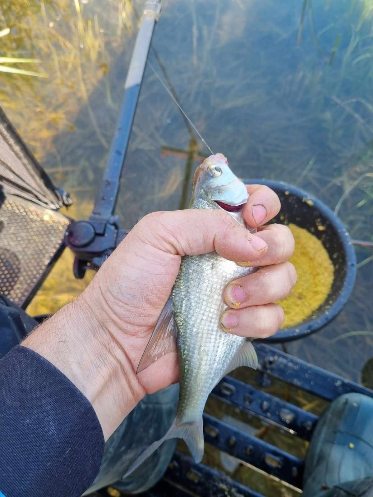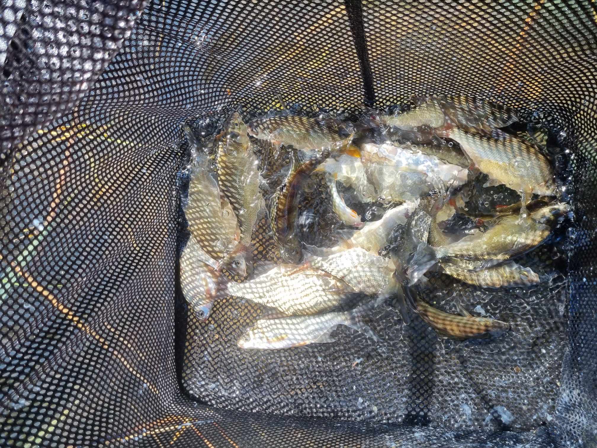 Septynios šėryklos pradiniam pajaukinimui, tada mažytė šėrykla (mat, gylis nedidelis, tad triukšmauti būtų neprotinga), ant kabliuko kelios musės lervos. Jau pirmu metimu atsiliepia vaikų darželis. Visgi reikia prisiderinti prie čionykščių realijų – nuolatinė smulkmės draugija čia kasdienybė, o stambesnės žuvies galima sulaukti nebent labai pasisektų… Aštrios viršūnėlės atakos, į kurias yra prasmės reaguoti tik tuo atveju, jei jos užtrunka kiek ilgiau. Galiausiai pirmąsias vietas siete rezervuoja keletas delninių karšiokėlių, prašoka ir vienas kitas ešeriokas.