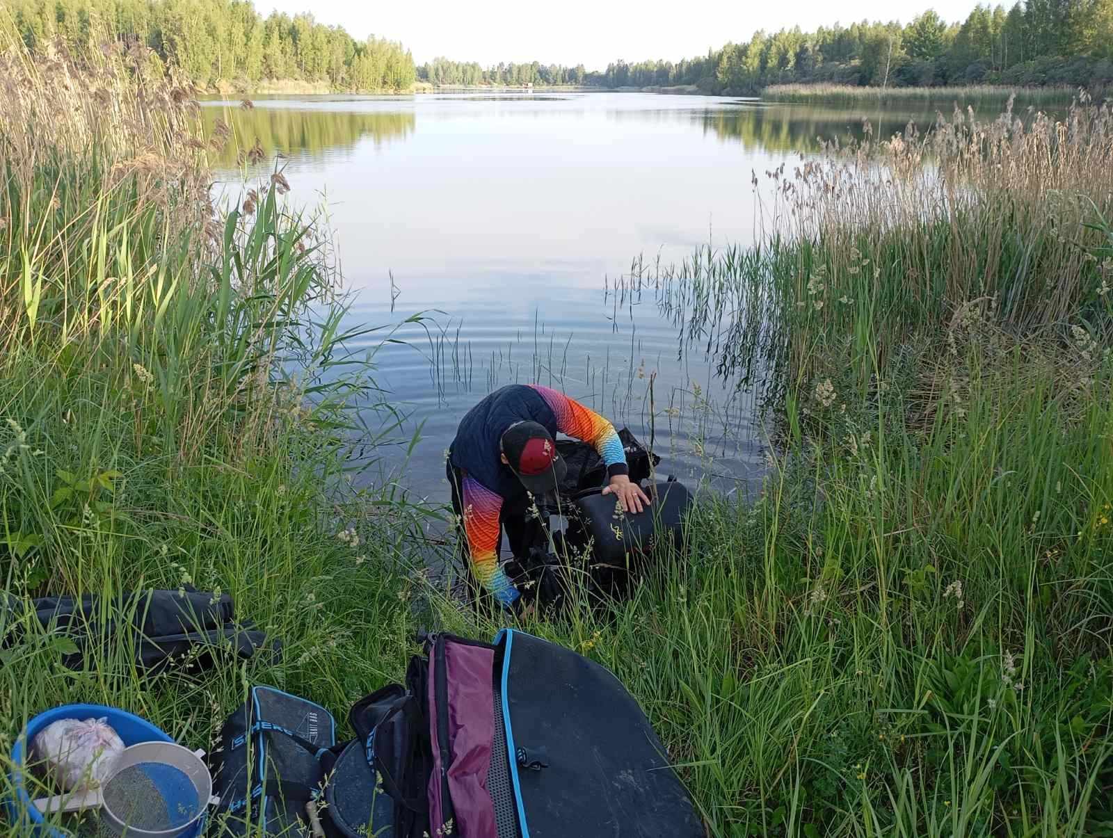 Brūkšteliu dabartiniam šių vietų šeimininkui, mūsų bendraklubiui Ramūnui klausdamas, kur būtų galima prisiglausti su feederiu. Kanjonai platūs, bet proskynų, kur būtų galima jaukiai su meškere įsikurti, ne taip ir daug. Maža to, šį telkinį itin pamėgo karpininkai. Grįždamas iš rytinės žūklės ir šiandien prasilenkiu ne su vienu ir ne su dviem naktinėtojų ekipažais, visą kranto liniją pavertusiais pačiu tikriausiu palapinių miesteliu. Panašu, žuvies čia netrūksta, ypač baltos. Apie tai jau yra rašęs Ramūnas (kaip jis čia žiemą kuojas gaudė). Nors čionykščių vandenų, suprantama, jokiais būdais negali lyginti su Kauno mariomis ar Nemuno žemupiu, tačiau bent jau delninės smulkmės pusvežimį čia tikrai galima prikrauti.