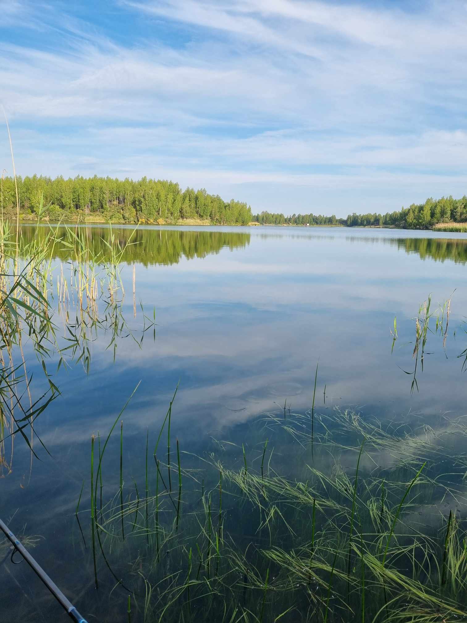 Su ta viltimi prie vandens atsirandu prieš keturias. Tupiu į proskyną, kurią buvau nusižiūrėjęs iš vakaro – tai lengva ir poseklė įlankėlė, kurioje, bent jau vakar sutikto vietinio žvejo teigimu, kartais pasigauna vienas kitas lynas ar net karpiokas (bet taip buvę jau seniai). Tokiomis didelėmis viltimis aš šiandien tikrai negyvenu, būtų smagu neprasėdėti visą rytą bekrapštant nosį ir ką nors surinkti nuotraukai. Metu skanavimo švinelį – gylis, duok Dieve, du metrai. Kadangi tai klinčių karjeras, beveik visur dominuoja „tarka“, tik arčiau žolių linijos galima rasti minkštesnio sudumblėjusio dugno ruoželį (ten ir klipsuojuosi). Švediškam stalui šiandien paruošiau musės lervų, sliekų, šiek tiek trūklių beigi kukurūzų. Jaukas – Champion Feedo asorti.