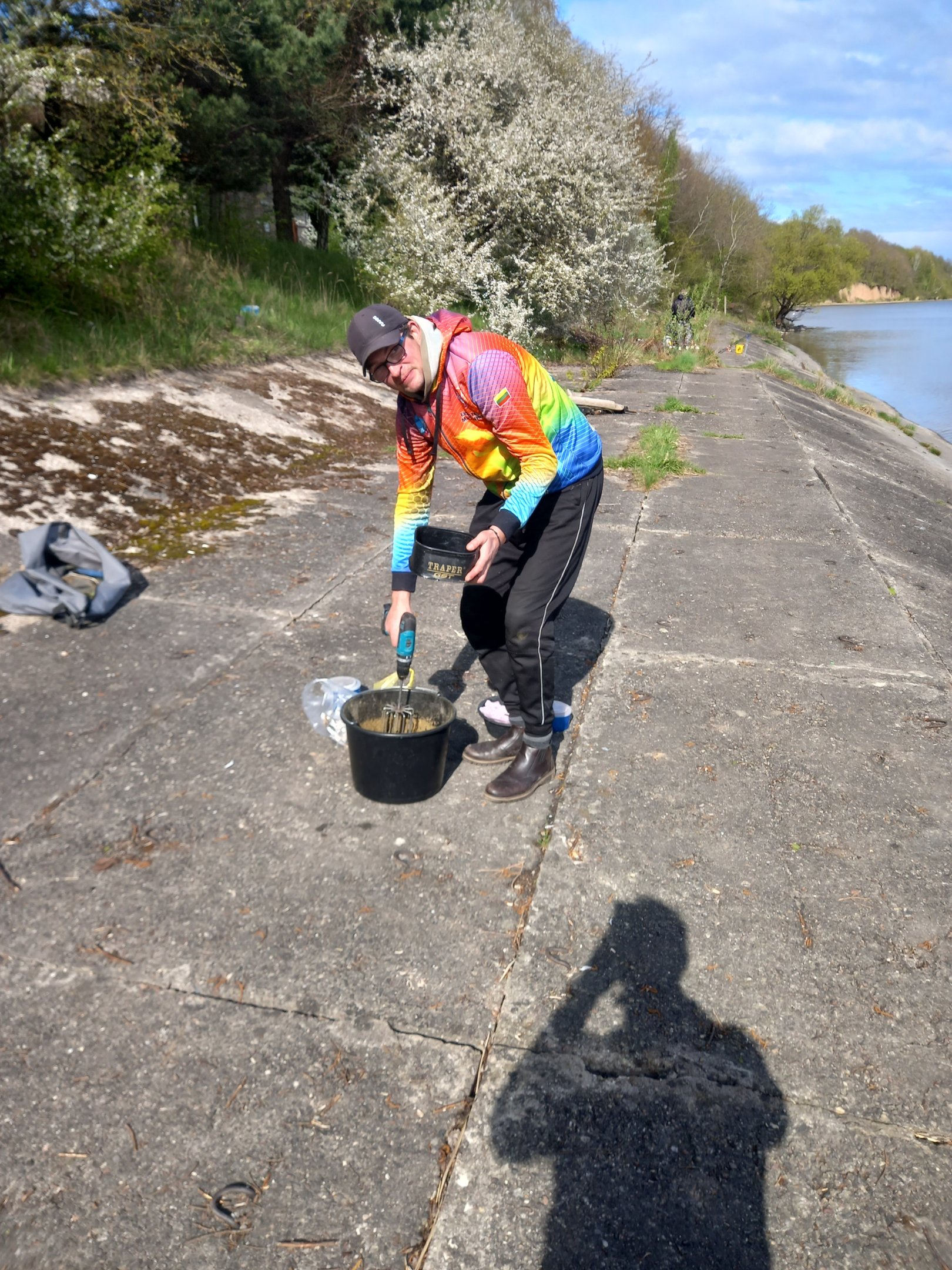 Ryte suplanavome bandyti vieną ruožą, bet pakeliui dėl vėjo ir gan vėsaus oro Ernestas pasiūlė pirminę lokaciją pakeisti. Bendru sutarimu pasirinkome Skuterių įlankos krantinę ir jau apie 16:00 susitikome ant kranto. Keletas smagių replikų ir juokelių susitikimo proga ir iškart kibome į darbus. Ernestas pasirinko 50 m atstumą, o aš, radęs gražų dugno perkritimą, nusprendžiau pasitolinti iki 65 metrų. Šį kartą naudojau jau vasarinį jauko variantą, tik, privengęs ryškiai geltonos jo spalvos, įmečiau žiupsnį dažų. Tai padėjo išgauti praktiškai marcipaninio jauko spalvą.