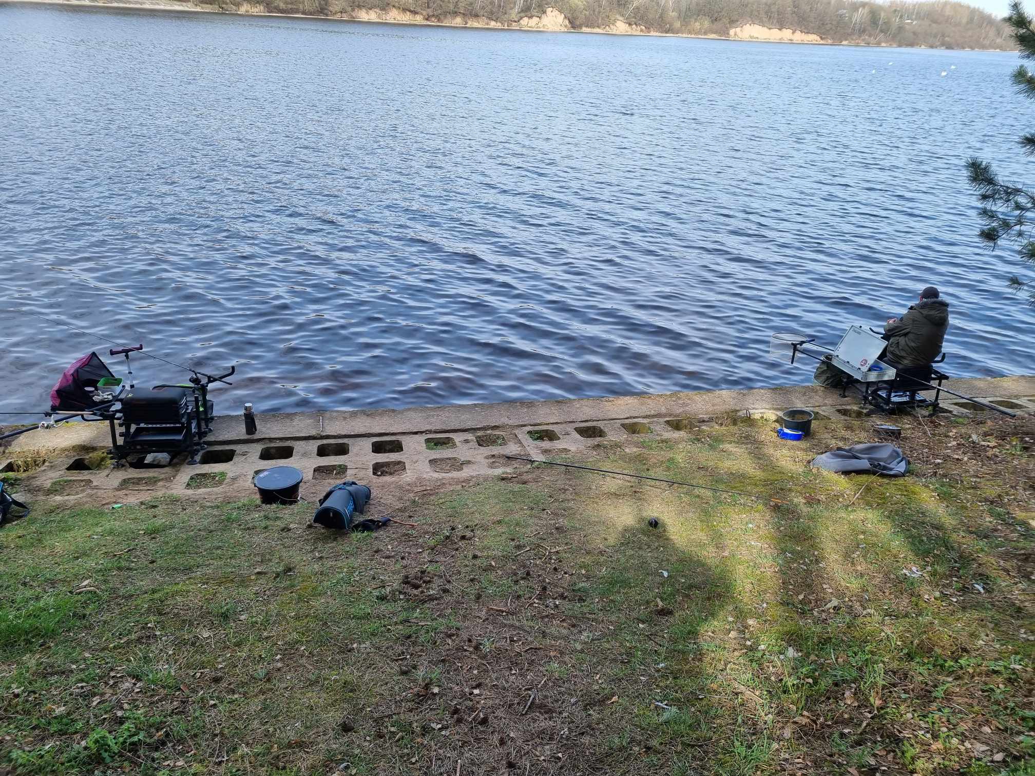 Apie 12:00 veiksmas pradėjo rimti, o išlaukimas ilgėti. Akivaizdžių permainų pastūmėtas iškeliavau lygesnio dugno link už 70 m. Ir ką gi – nesulaukiau jokio kibimo. Bet tolimą distanciją nurašyti nesinorėjo, nes popiet pamačiau, kaip kaimynas ištraukia karšiuką. Informacijos kaip ir yra, kaip ir nėra – daugaiu klausimų nei atsakymų. Po Velykų smarkiai atšąla, vis galvoje kirba, kaip bus su ta žuvimi per varžybas. Jei dings kuojos, tai teks pūgžlį vilioti. Paskutiniai treniruotis atlėkė Ernestas su Evaldu. Jie ketvirtadienį įsitaisė ant ilgosios betoninės krantinės. Planas pradžiai žinomas, iš arti kuojas patikrinti. Ir bam!! Niekas nevyksta! Vangios ir retos kuojytės. Tolimoj didtancijoj vėl ta pati liūdna daina. Klausimų daugėja, o atsakymų mažėja.