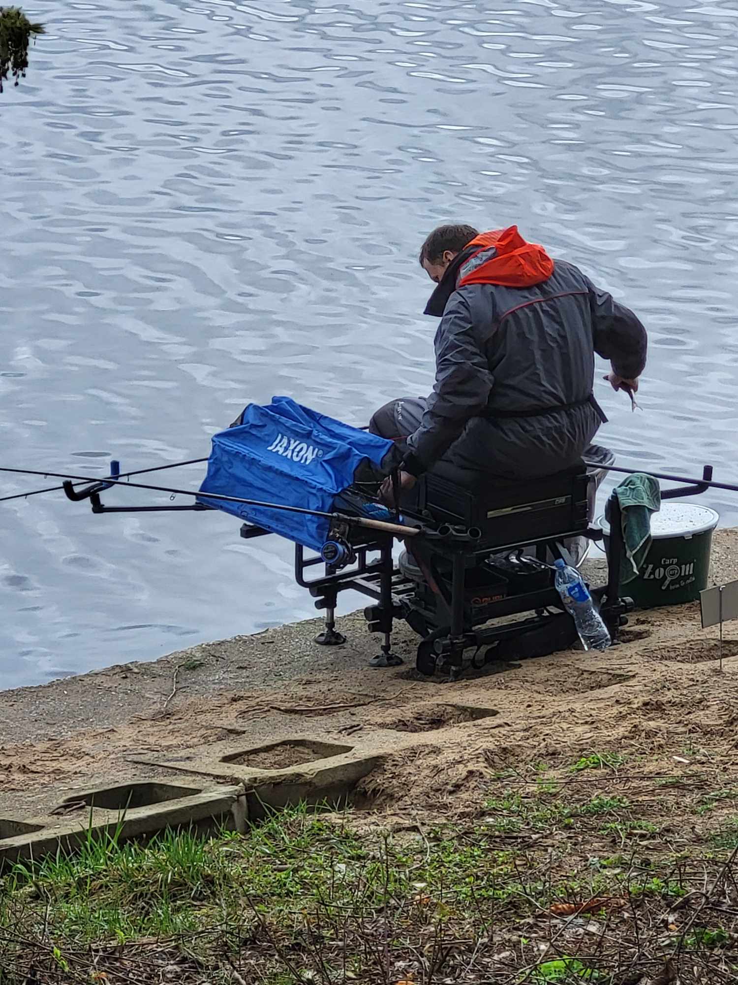 Lietui vis dar nerimstant, įkerėplinam su visa savo manta į sektorius. Daug varžtų varžtelių, graibštų graibštelių ir krūvos smulkmenų galop išvirsta puikiai įrengtomis žvejybinėmis laboratorijomis prie vandens. Dugno patikra svareliu arba „skanavimas“, auksinio ruožo paieškos, trupinėlis ramybės iki pirmojo signalo. Prasideda jaukinimas be pavadėlių, likus 10 minučių iki starto. Netylantis masiškas šėryklėlių pliumpsėjimas į vandenį sustoja laikrodžio rodyklei prisliuogus iki 09:00 valandos. Startas, burtas mestas, kelio atgal nebėra!