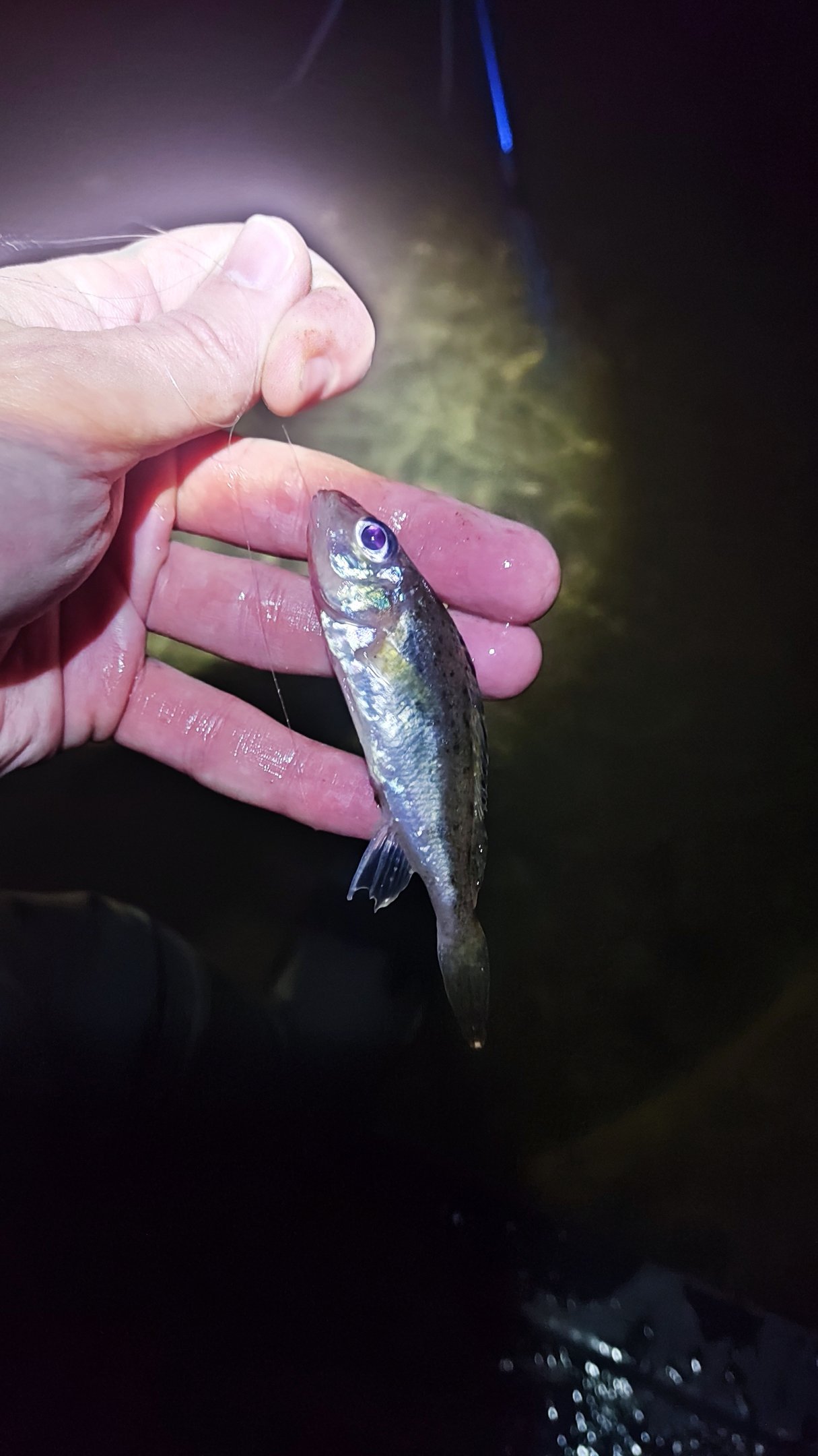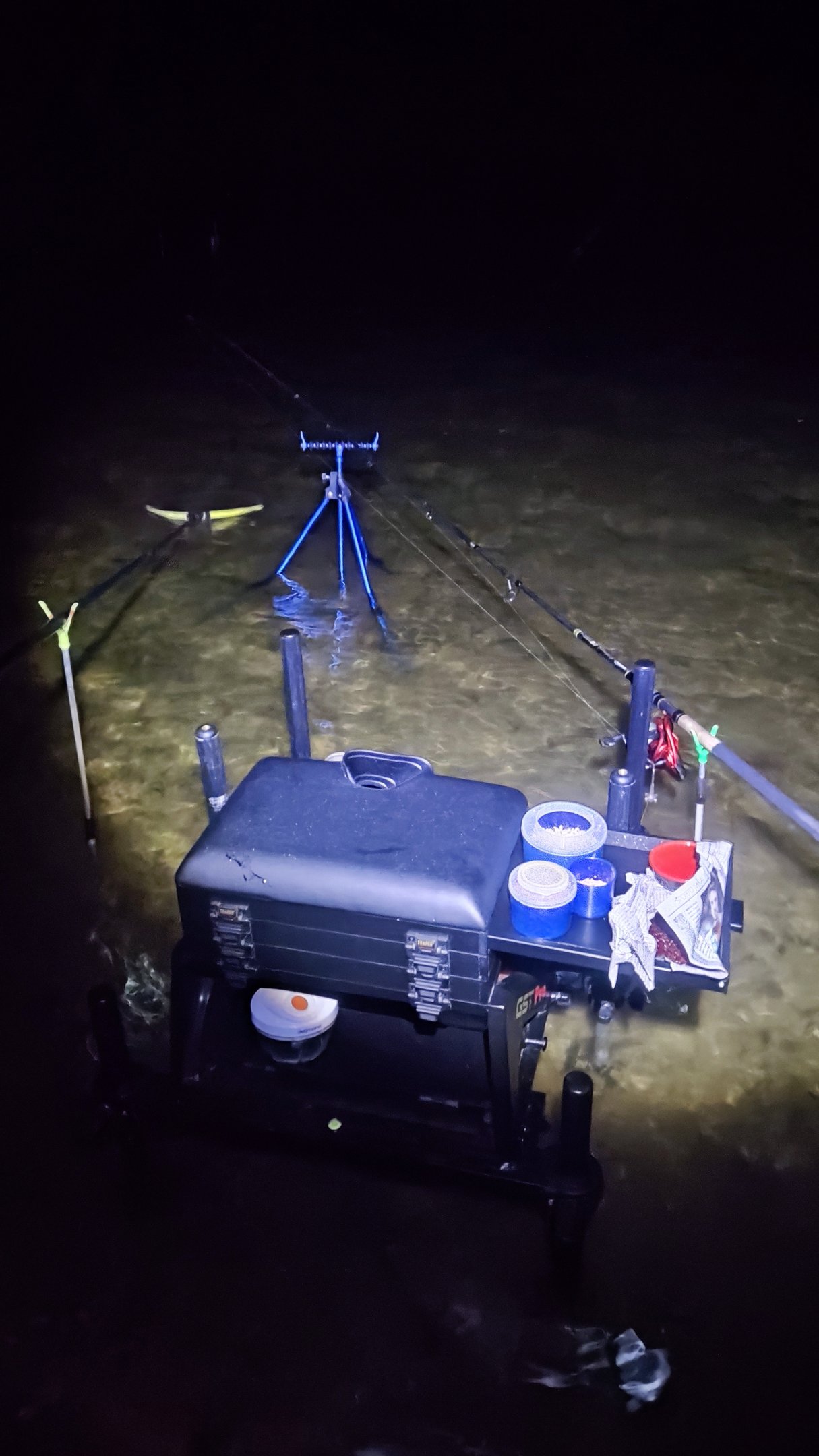 Startuoju su 0,11 pavadėliu ir 18nr kabliuku be startinio jaukinimo. Po truputį padavinėdamas gyvuosius masalus laukiu pasirodančių pirmųjų interesantų. Po gero pusvalandžio pasirodo platformos krikšto žuvis – Jo didenybė pūgžlys. Supratau, kad su trūkliais būsiu persistengęs… Mažinam jų, didinam musės lervų porcijas ir neilgai trukus – delninis karšiukas. Na pagaliau tai, ko ieškom, gaila dydis visai ne tas. Nepaisant to, smagu, kad pagaliau prasidės veiksmas. Praslinkus dar pusvalandžiui, pasigendu to veiksmo, kuris, maniau, prasidės. Imu meškerę eiliniam permetimui, darau „stebuklingą“ švelnų judesį ir gaunu stukt – yra! Žuvis ant kablio ir jaučiu, kad šįsyk tikrai stambesnė, neforsuoju, leidžiu pasireikšti. Parsitraukiu ir sėkmingai įparkuoju į graibštą. Dydis jau keliantis šypseną (na gal pagaliau pasismaginsiu?). Galvok, broli, iš naujo… Pradėjo aušti, užgeso žibintuvėlis ant galvos, užgeso ir kibimai. Tiesą pasakius, vienintelė mintis, kuri sukosi galvoje, kad žuvis baisiai, nu ypač baisiai neaktyvi. Norėdamas pagauti turi praktiškai įmesti masalą žuviai į burną.