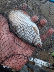Tiesa, prie vandens šiandien būta dviejų banditų. Savo žvejybinę laimę šiandien bandė ir žieminės karšių žūklės Kauno mariose siaubas Aurelijus. Jo taip pat gyventa panašiomis realijomis – tai dažniau, tai rečiau kabaliojosi tai didesni, tai mažesni žuveliokai. Pagyvenę tokios nuotaikomis iki vidudienio, abu tuo pat metu išsiruošėme. Aurelijus minėjo, kad rytoj tą patį ruoželį aplankys dar kartą. Kas ten žino, galbūt pasirodys didieji…