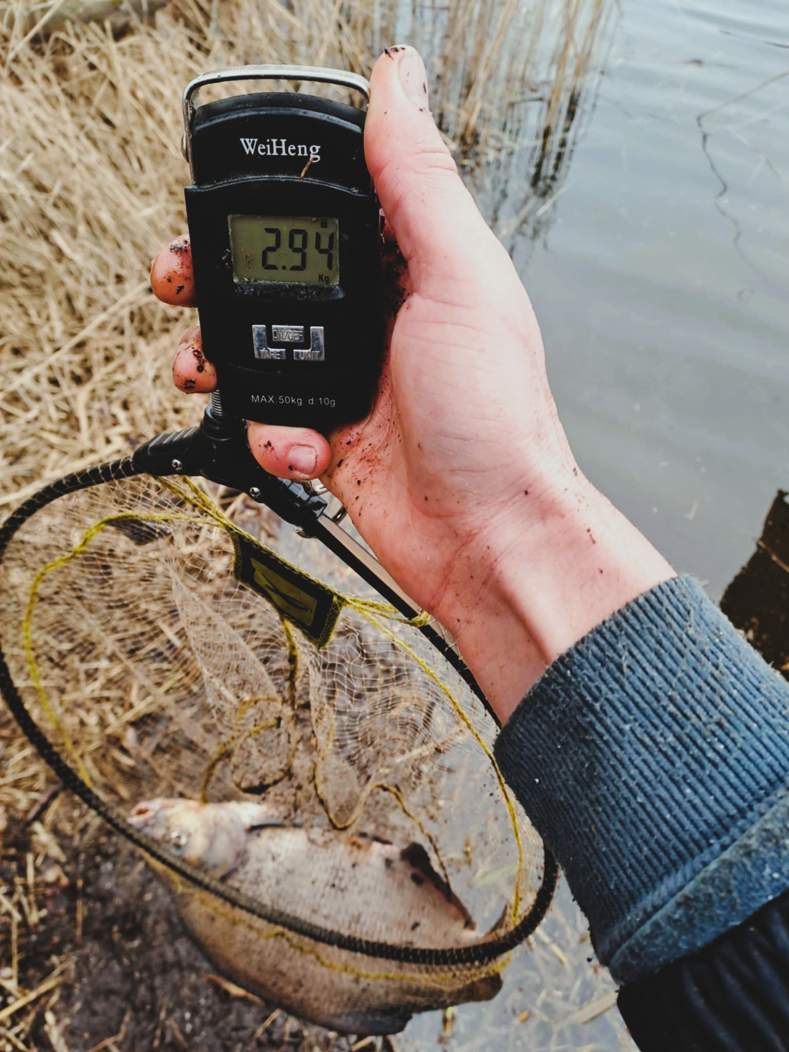Kaip visados į mano atvežtas ir paserviruotas vaišes pirmieji atsiliepė nedideli karšiukai bei plakiai. Šiek tiek kibimui aprimus, sulaukiau gražaus meškerės viršūnėlės atmetimo. Pagaliau kitam gale tikrai rimtas priešininkas! Deja, nepavyko pamatyti, koks galiūnas metė man iššūkį. Galiu tik iš žuvies smūgių spėti, kad turėjau reikalų su neeiliniu karšiu. Atsiradusią širdgėlą ilgai netrukus nutraukė dar vienas gražus atmetimas. Šį kartą viskas kitaip – kabliukas atlaiko visas perkrovas ir karšis sėkmingai pasiekia graibštą. Kol grožėjausi bundančia pavasarine gamta, kažkas įsigudrino nejučiomis nugvelbti meškerę. Vagis kaltininkas – tikrai solidus karšis (užmeskite akį į nuotraukas). Su šia žuvimi ir pabaigiau savo trumpą žvejybą. Kabliukas – 12 nr., pavadėlis – 1 m., 0,11 mm. Jaukai VDE.